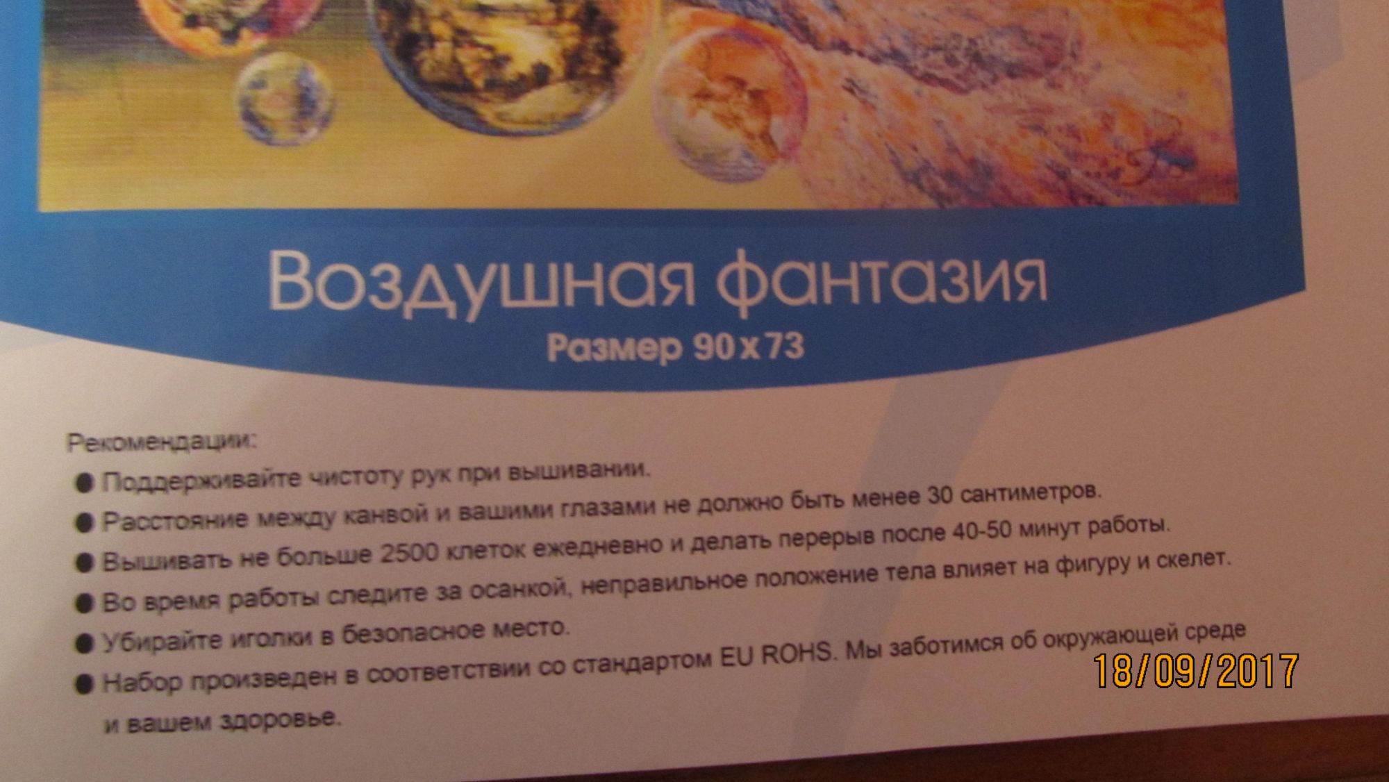 18 сентября 2017 В 20.07.2017 в 12:38, Catopuma сказал: отож... аж страшно требовать отшива! В 20.07.2017 в 12:40, turu сказал: И не говори)) я даже тряпоШку боюсь представить Та ладно, пугливые мои! Есть и пострашнее вещи. Хотите я вам их покажу? Нет, не хотите? А я все равно покажу. Есть у меня одна такая страшная-престрашная вещь. Называется она ... На этом месте всем слабонервным рекомендую взять любого пробегающего мимо зайца и спрятаться в шкаф. Всех остальных попрошу остаться и милости прошу на шоу ужасов. Итак. "Воздушные фантазии" от Белоснежки. Вот Размер в клеточках 450х360 итого имеем равно 162 000 клеточек. Аида 14 каунта. Размер в сантиметрах (ну во всяком случае как заявлено на обложке) - 90х73 см. Бу... Вот сама скромная тряпочка Вот пока фотографировала, обратила внимание на рекомендации по вышиванию. Как же это умилительно. Китайцы - такие энтузиасты . Не вышивать более 2,5 тыс. клеточек в день . Тут хоть бы 200 клеточек в день шить - вот было бы счастье. Ярославовна, Mizeri, ОльгаТольна и 39 других сказали спасибо Поделиться сообщением Ссылка на сообщение