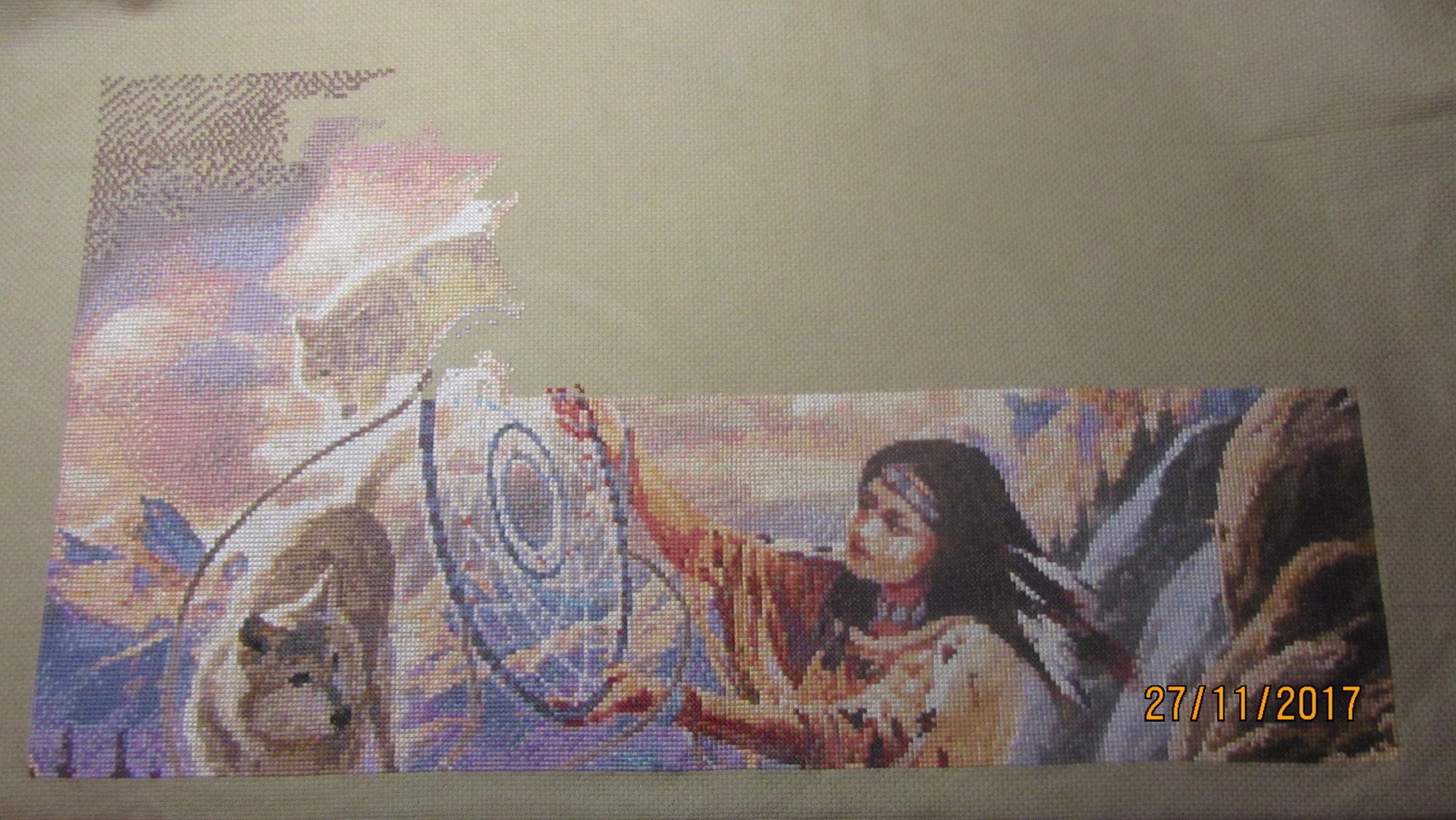 12 декабря 2017 Всем привет ! Сегодня форумная прогульщица пришла с отчетом. Ловец снов. Было Стало Валя, Wian, эти оба фрагмента уже есть в гаечке. Чуть раньше в теме у Гали я показывала кусочек схемы верхнего левого угла. Еще раз покажу у себя. Вот он, этот кусочек коварной наружности . Я его пока разглядывала, сначала была вот такой , потом вот такой , а потом взяла себя в руки, и вот он этот кусочек в отшиве . Прелесть, правда? В общем шился себе спокойно Ловец, и ничто не предвещало беды. Но потом мне приспичило чего-нибудь новогоднего, ну или на крайняк - просто зимнего. Новый процесс - Волшебный фонарь от Овна. Экватор. Овна шью первый раз. Так нравится! Немного мучает цветная схема, но в остальном все здорово. Подарунок. Моя Галюся сделала мне подарок. Первое что я вытащила из пакетика была вот эта прелесть . Варежка, та, которая мне понравилась больше всех остальных из-за рисунка, напомнившего мои детские варежки. Я прям подпрыгивала. Она такая хорошенькая, маленькая, и даже моя ребенка заценила и сказала что тоже себе такую хочет. А вот не отдам. Мое! Следующим вытащился наборчик, подсмотренный Галей в списке желаний . Мне так нравится этот волк. У кого-то из девчат увидела его в процессах и влюбилась. А следующим вытащилась вот эта прелесть . Ее в списке желаний не было, но я периодически на нее заглядывалась, и несколько раз порывалась ее купить. Как Галя угадала, что я хочу эту совульку - ума не приложу, но теперь она у меня есть, и даже есть для нее отдельная тряпочка. Вот все вместе . Галюськин, спасибище тебе огромное! Еще один подарок, сделанный Галей - оформленные парусники. Почти невозможно их нормально сфоткать, ибо со светом сейчас проблема. Его практически нет, и фотки получаются не совсем похожие на то, что есть на самом деле. Пополнения. Приехали вот такие наборчики Еще вот такие сейчас томятся на почте. На днях пойду забирать . И еще там же ждут новые ножнички. Я так хорошо, качественно прибралась у себя на столе, куда-то переложила свои ножнички, и теперь уже почти месяц не могу их найти. Пришлось покупать замену. Звери Зайца сейчас на испытательном сроке. Свободно перемещается по дому (до первого косяка). Разумеется Лизавете это активно не нравится. Мало того что она терпеть не может Зайцу, так еще и очень сильно ревнует, ибо Зайца стала жаждать активного общения с мамой (со мной то есть). Последнее время участились "погони в горячей крови". Зайца убегает, Лиза со страшным ррррррррр догоняет (ну вы представляете какой страшный рррррррр может издавать огромный страшный свирепый шпиц 25 см в холке ). Зайца летит в ту комнату, где нахожусь я - в поисках защиты, ибо просекла - мать обязательно заступиться и отругает собаку. Долго не могла понять что такого страшного делает Зайца, что Элизабет с такой ненавистью пытается ее цапнуть. Все оказалось очень просто. Зайца - пакостница - намеренно провоцирует собаку на боевые действия, чтобы ей потом звездюлей от меня прилетало. Своими глазами наблюдала. Лежит Лиза, никого не трогает, отдыхает. Подходит Зайца и начинает лезть к ней. Лиза отталкивает ее, дает понять - типа, не лезь ко мне, я с тобой не дружу. Противная Зайца выжидает какое-то время, пока собака перестает обращать на нее внимание, тихонько подваливает и усаживается своей толстой пушистой филейной частью прямо собаке на мордаху. Все! Абзац! Погоня! В