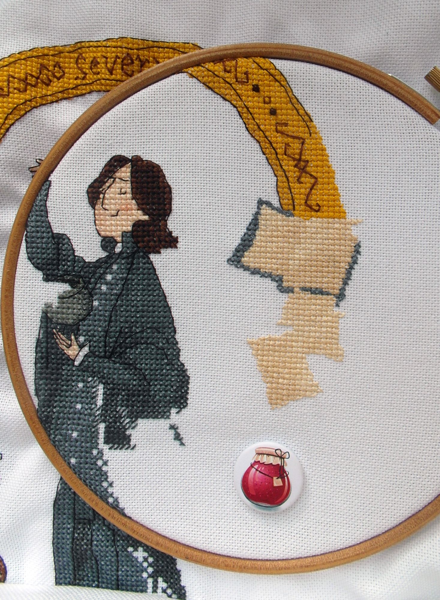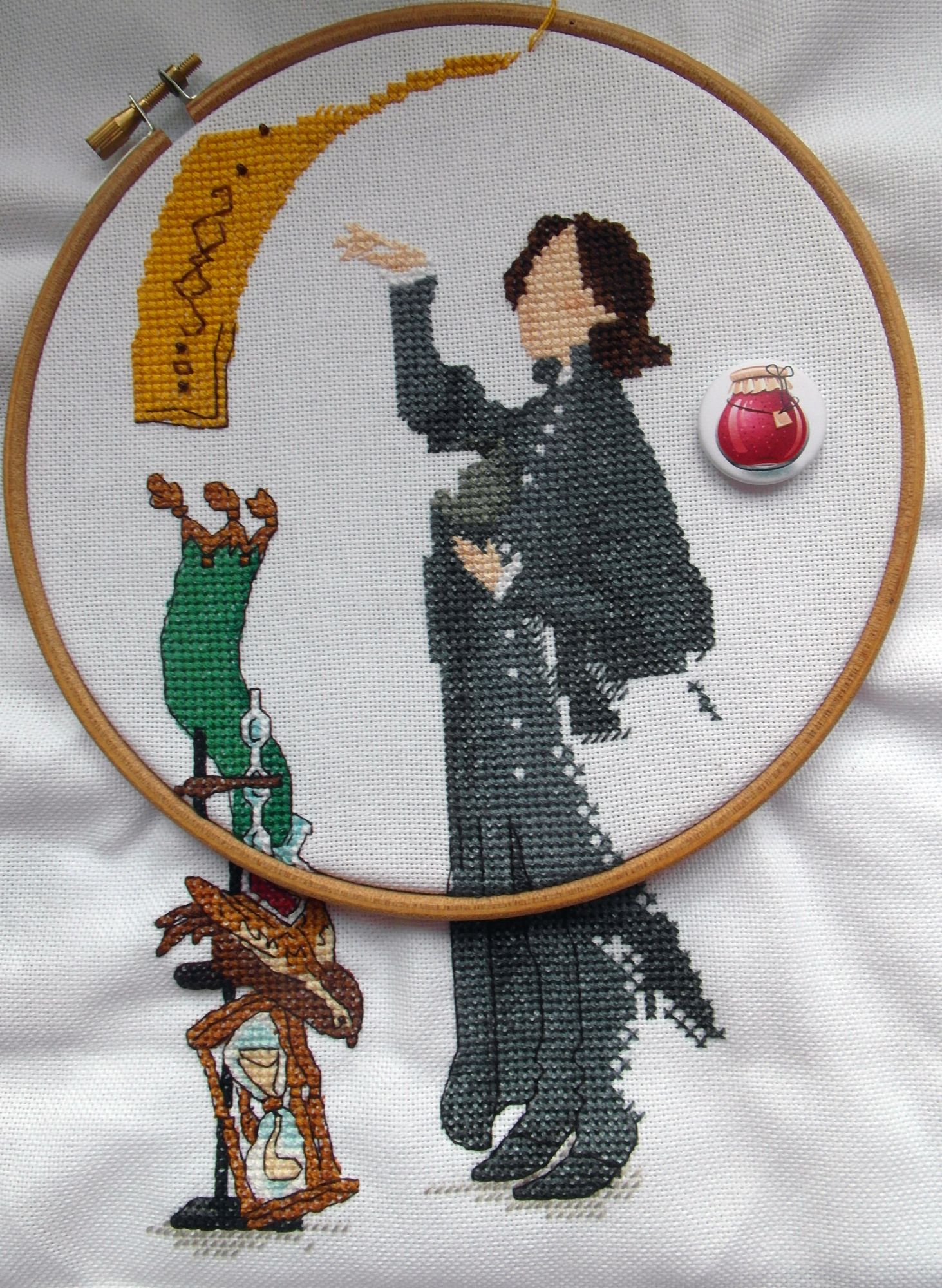 22 июня 2017 Прежде всего традиционно объяснюсь – я должна была как только, так сразу. Так вот сейчас реально «так сразу». Я собиралась красиво уходить в восход на новую работу – вместо этого на текущей мне доверили ещё парочку сверхважных периметров и годовую оценку выставили такую, что я ажно прослезилась… Я даже не успела начать искать, а они уже подготовились. Есть в людях какая-то космическая чуйка. Потому я вся ушла с работуном осваивать новые просторы и моя вышивка превратилась в проект ниточка-по-ниточке. Больше ни на что времени не было. В общем, я как всегда! Профессор зельеварения его обожанство Северус Снейп. Кодовое название «Снупа». Дизайн нумер 5 (пятый уже! ащееее!) по изображению Rosalia Radosti. Основа Zweigart 25 ct. Lugana 3835/100 (под профессора, только белое). Нитки - дикий ква-подбор. Песнь-чудеснь «Танцы под зельем». Не подумайте, что пропаганда наркотических веществ – зелья оне позабористей будут! Наркотикам – НЕТ, зельям – ДА! К Северусу я отношусь с особым пиететом, потому всё, что с ним происходило – это скорее знак глубочайшего почтения и огромной любви, нежели творческий беспредел (хотя не без него, канешн) Началось вся моя истуар д’амур, как я уже и сказывала, с Дракотана. Последний был прекрасен без извилин, Снупа же был так себе. Или даже совсем так себе. Или – чего уж там – настолько никак, что даже не по себе. Но я решила, что либо я его подлечу, либо не вышью, что тоже хорошо – я тогда благотворительница и поддержательница творчества Кати Мешковой выхожу, особенно той его части, которая про ГыПэ. В общем схему я взяла с тем, чтобы не вышить . Уже заканчивая Рональда, я начала прикладывать свой глаз на следующую жертву. Впервые воспользовалась рандомайзером – я же всё хочу, так пусть он мне поможет! Ага. Сейчас. Оказалось, что я хочу всё, но немножко не всё. Моя внутренняя хочуха уверенно указала на Хагрида, который сразу был извлечен и даже начал готовиться. Но подойдя к самому краю обрыва Рыжего, меня обуяла гордыня и самоуверенность. Что мне Хагрид, который, как и Дракотан, прекрасен всеми извилинами?! Я же вон, какая крутая и творческая! Давайте мне сюда, то, чего не может быть. В этом списке профессор был в единственном экземпляре. Что выходило по деталькам Розалии, и что имеет место быть на самом деле у госпожи Роулинг: несчастный одинокий Северус Снейп в пучине саморефлексии на фоне безысходности бытия, детских комплексов и травматических фиксаций, возникших в том же нежном возрасте. Всё это понятно – не всем быть коммуникабельными филантропами с симптомами хронической экстраверсии. Есть ещё и интроверты (белые и пушистые), которые жестоко страдают в этом мире экстравертов. Моя, как наикачественнейший интроверт, весьма понимает. Моя, прошедшая километры пути, чтобы научится здороваться с людьми без инфаркта, весьма сопереживает. Это сейчас я легко заменяю собой табор цыган и полтора медведя, но это результат огромной работы над собой и в себе. Так вот у Розалии Северус фонит несчастьем и весь про внутренние проблемы. А меж тем, он блестящий мастер зелий, умничко, красатолечко и прочая-прочая в степени сверх. Потопали по деталькам : Часы песочные – видимо оне для тщетности и скоротечности бытия. Наверное. Я их прекачественно причесала. По схеме центральная часть вообще коричневое пятно – я насыпала недокерстиков – стало лучше. Н
