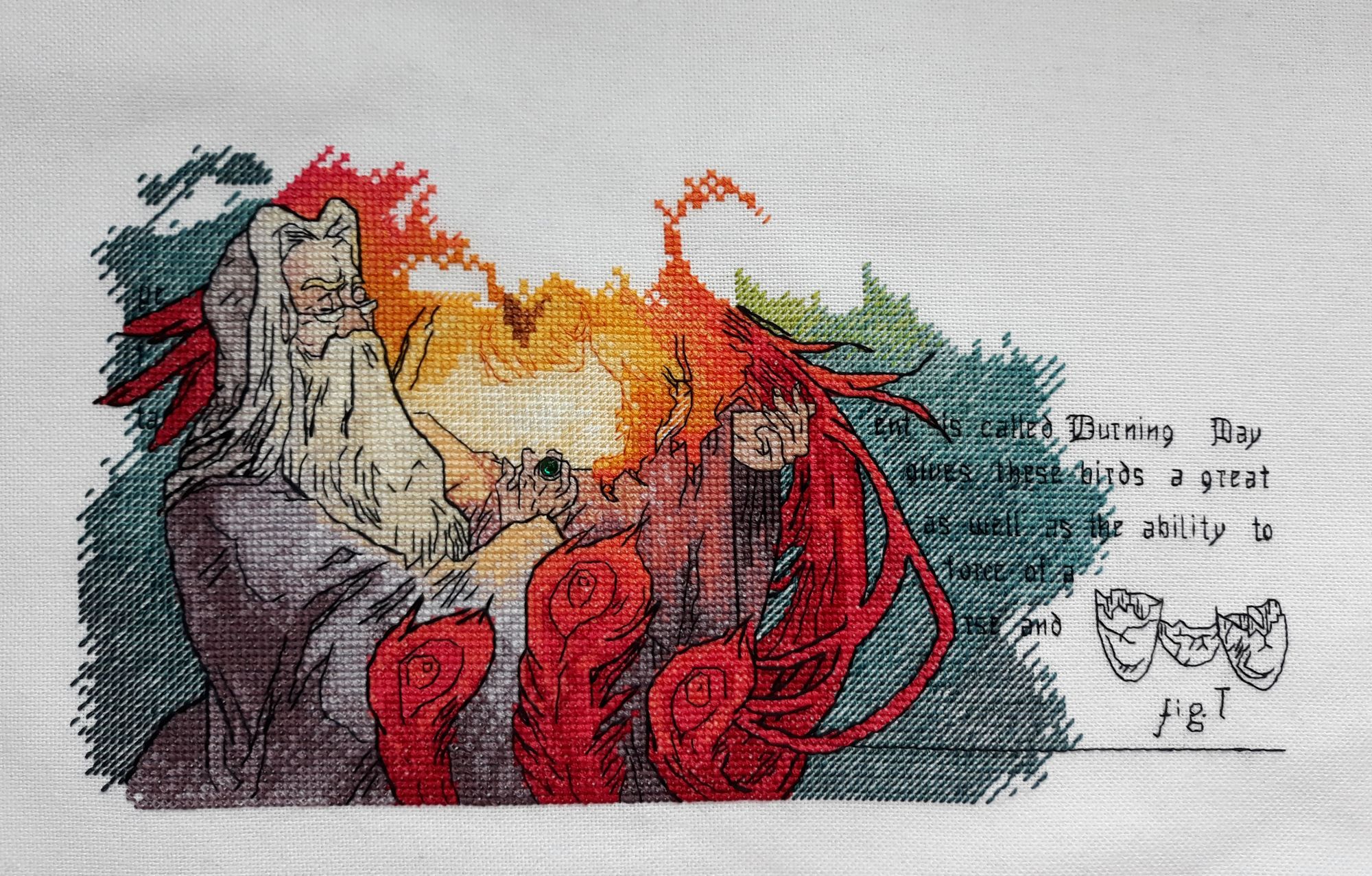 25 января 2018 Феникс от Насти Усовой (уже 4ый из моей Усо-коллекции хохо) Всё традиционное. Основа Zweigart Linda 101. Нитки – DMC, ПНК (современное и лохматое). Picolo-kun -> Настя Усова -> Я Дизайн – любовь с первого взгляда. Сумасшедшие цвета. Дамблдор бесподобный, Феникс – взрыв эмоций. Директор не самый мой любимый персонаж, но почему-то, что у Кати Мешковой, что у Насти Усовой Дамблдор восхитенский. Я уже немного подзабыла какое несравненное удовольствие эти дизайны! Бленды и бэк – хлопнуться в обморок . Особенно текст – ооо! И двухниточный бэк – ааа, как круто. И полукрест – схема в этом плане гадость несусветная, мелко значочки это нечто. Без маркера никуды. Особенно вставляют символы треугольника – один прямоугольный, другой остроугольный – их и на всю клетку перепутать легко, а уж мелкозначковые… Но результат такой очешуенный, что прощаю (я такая милосердная куды девацо). Мой любимый зелененький полукрест – я обслюнявилась . Как всегда «главные» надписи в 3 нити, каждая буква отдельно, каждое слово из описания отдельно. Решила запечатлеть изнанку – тут хорошо видно, что даже всякие «a», «to» отдельно. Протяжкам нет! Заморочилась я всё ж неслабо И очень рекомендую для бэкофеерии черные ПНК использовать. Во-вторых, половина работы легко съела 10метровый моток – ква-ква DMC при таких объемах; во-первых, у ПНК черный глубже, сочнее и краше. Правда ПНК любит пушиться, но специально ставила эксперименты на DMC – они тоже этим грешат, а следовательно да ну и опять возвращаемся к во-первых – черные ПНКашки смотрятся офигенно. Какой перстень я Альбусу раздобыла – «ядра чистый изумруд©» Выбирала между фиолетовым (как на изображении художника) и зеленым (как у Насти). Выбор пал на второй – здорово с полукрестовым фоном гармонирует, первый же был слишком скромен и терялся. Кое-где я не удержалась и разбавила полотно четвертушками и полукерстами (руки, пёрья у птЫца), но не сильно увлекалась, т.к. тушке Феникса очень гладкой и не положено быть. Подытоживая – КРЫШЕСНОСНАЯ КРУТЬ! Те, кто имел счастье (счастьище) видеть результат, все в восторге. Причем даже люди бесконечно далекие от вышивки, которые время от времени говорят, что я ерундой маюсь… Всё же эта серия по ГП от Насти Усовой она ВЕСЬМА впечатляющая. В гаечку пжалста-пжалста Что дальше не знаю - посмотрим, что скажет провидение Путешественница, Ан4оус, Веселинка и 19 других сказали спасибо Поделиться сообщением Ссылка на сообщение
