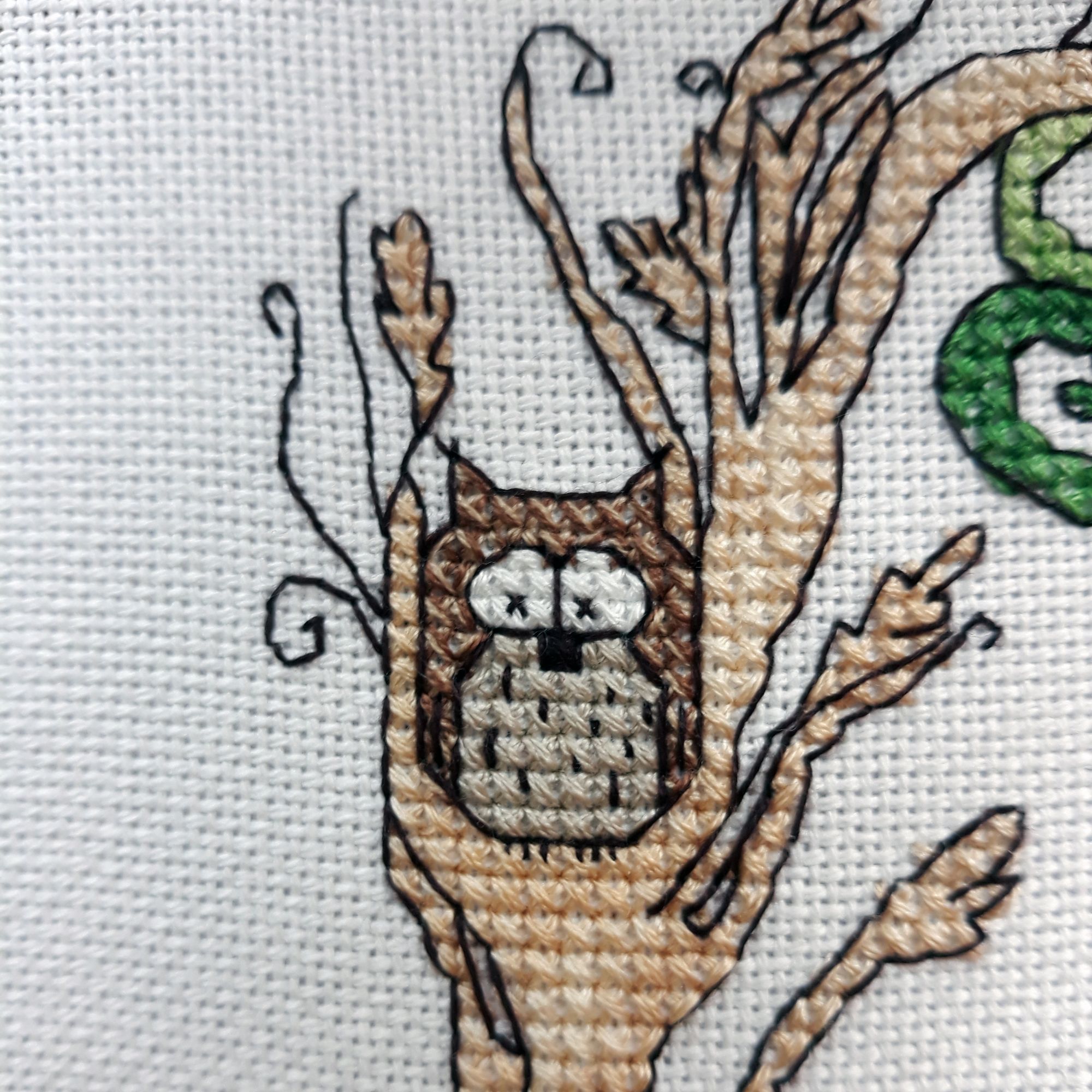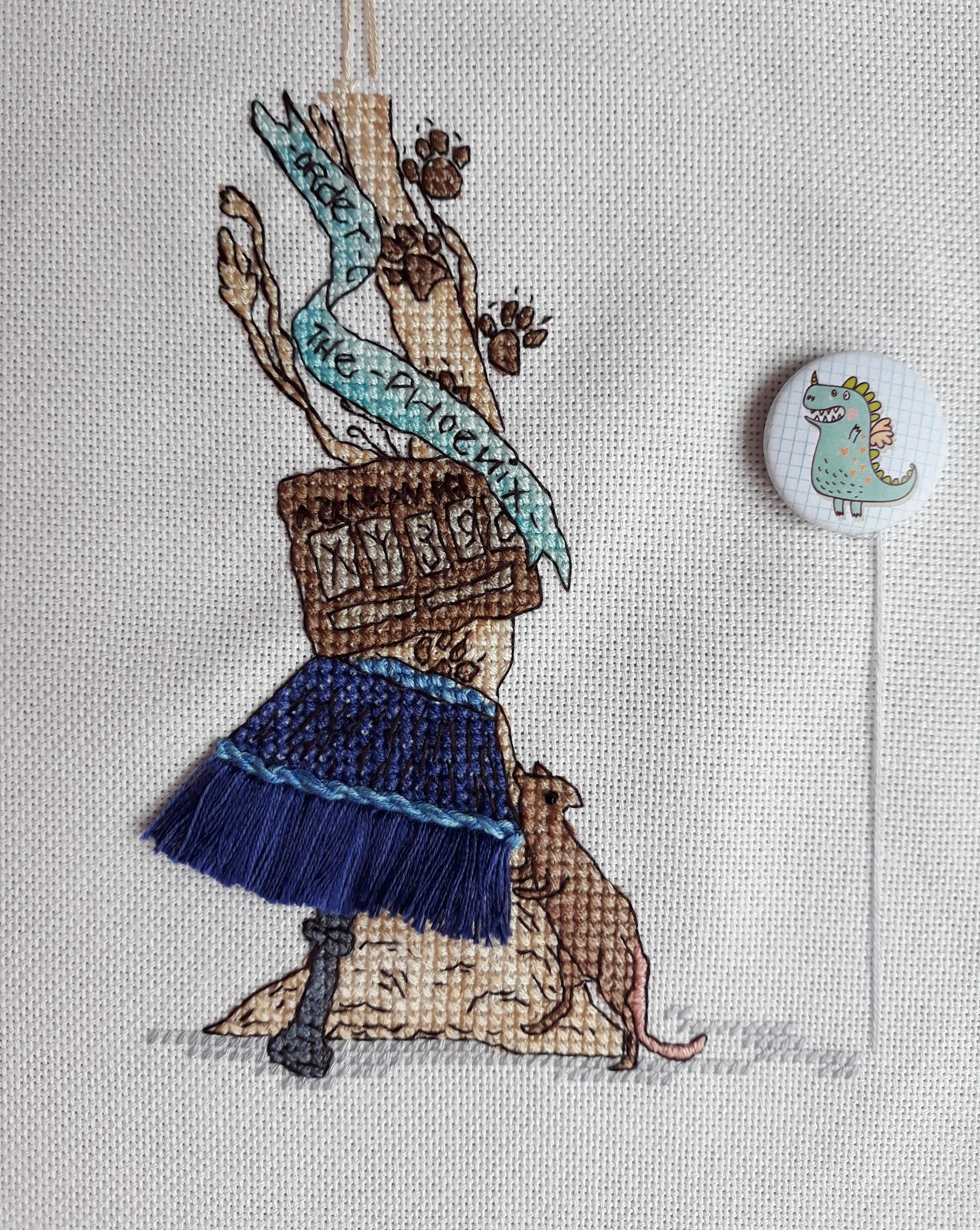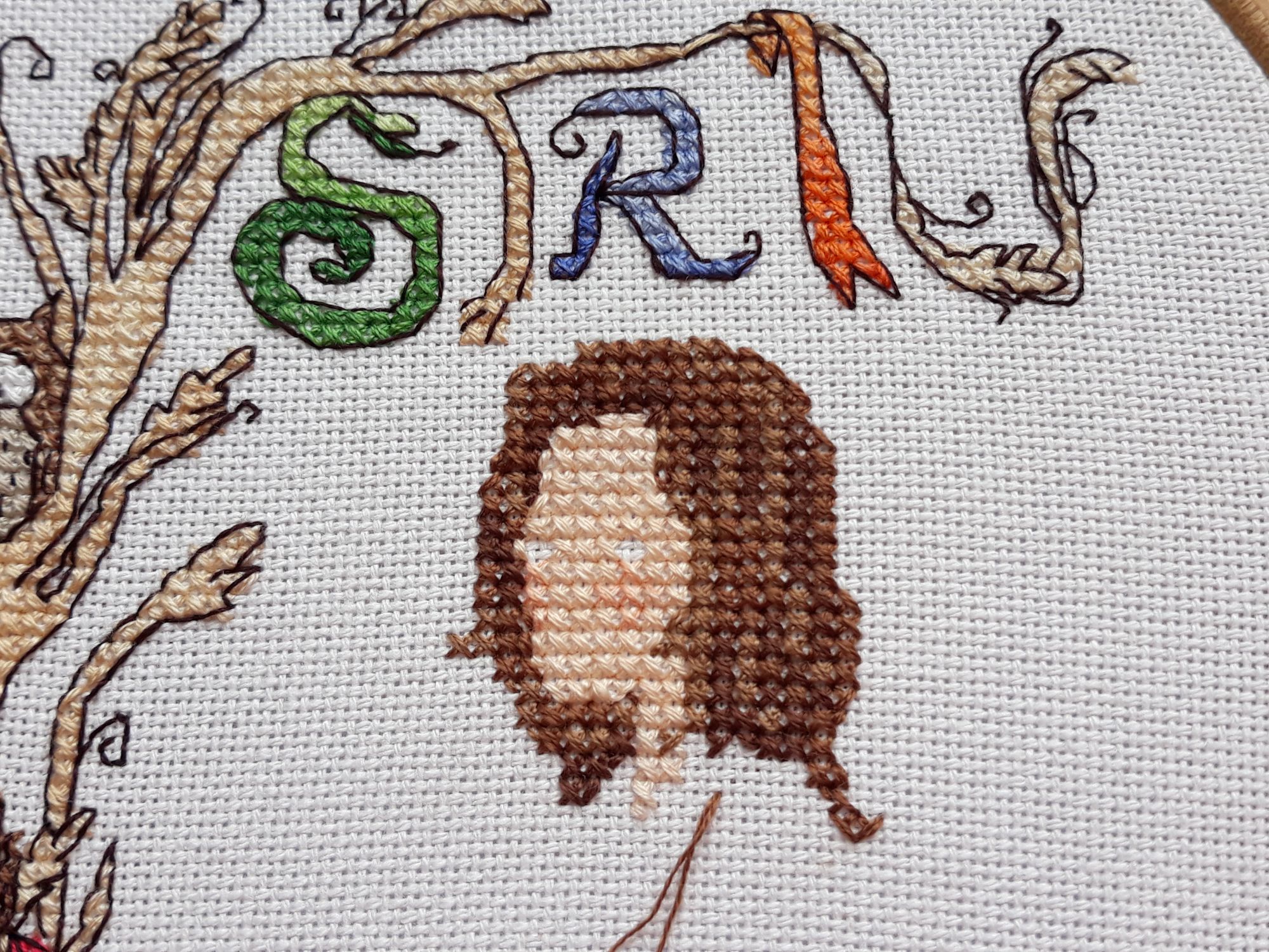 21 июля 2018 Лисичка-Шатт Шовчики вроде круто. Тут оба слова главные – и вроде, и круто. С одного бока кропотливая и скучная работа по укладыванию стежков по схеме. Не знаю, как оно на более мелком каунте, но даже на 25м весьма непросто! Виноградины-кругали – ойой, мои бедные очи. С другого бока – если уложил стежки как полагается, то прям восторг! Особенно прикольный эффект даёт меланж – если меланж хороший. Я взяла Гамму по ключу 013 – вот гадость. Долго-долго-долго желтый, переходящий в практически белый, потом внезапно это всё вваливается в насыщенно зеленый, который через небольшой отрезок обрывается в желтый и далее по кругу. Для конкретной лисички это означало, что одной ниткой можно было отшить, только 2 загогулины, потом – дабы не сваливаться в ноль пожухшую желтую траву нить надо было отрезать (виноградник у нас всё же с нормальным сухотравным балансом). Но меня стало ковырять меланжем – прям хочется везде понавтыкать! Теперь я пинаю себя, чтоб оформить. Страсти по ГыПэ Бесплатная схема Анастасии Имановой Harry Potter Взять можно тут https://vk.com/anim_cross_stitch?z=photo-163405903_456239135%2Falbum-163405903_254326575 Неожиданный дизайн. Случайно наткнулась, прибрала к рукам, неожиданно для самой себя вышила. Оформила почти сразу как отшила по МК https://www.youtube.com/watch?v=Afu1opJnvdM Пока хранит незабобиненные тушки ниток. Прелесть несусветная Сириус Блэк Дизайн нумер 8 по изображению Rosalia Radosti. Его не должно было быть, как и Флёр + Близнецы, потому как ничегошеньки во мне не откликалось. Но оно было по 50% скидке закуплено и вроде как что-то всё же ж надо было с этим чо-то делать (открытый гештальт!). + я скотина эмоциональная, отличающаяся припадками влюбчивости в отдельные элементы, из которых потом вырастает ВСЁ! Тут я заканчивала оленя и как ни в чем себе не бывало фантазировала за что б такое взяться… Хотелось бы ГП, но что конкретно – тут можно же разгуляться! Мысль перескочила на дизайны, которые мне непонятно зачем… Потом подумалось, что надо хоть что-то хорошее на будущее в Сириусе, например, найти… А что, если рожки-как-у-козы-ножки?!! Вот Кричер хороший… И занавески… и тут ТА-ДАМ! Л-А-М-П-А! И мне подумалось отличная лампа, такая с абажуром с висюлькомахрушками. Всё! Меня проняло – хочунемогу эту лампу потоптать! Всё бросила, никакой подготовки и вуаля – Лё лампА авек абажур а-ля натюрель + Крыс-Ларис + шнурок по краю – ой, я вспотела его крутить, а уж пришивать… + махрушки по краю. Я собой горжусь безгранично. Они даже из ниток двух оттенков – на фото этого скорее не поймешь, но в жизни дает определенный эффект. Крыс по схеме был того же цвета, что и корень дерева. Я даже не сразу заметила – думала кривая корневая система такое. Ан нет – это Питер Петтигрю в анимагической форме ака Крыс-Ларис (в честь крысы Шапокляк). Но всё незаметное – это не наш формат. Потому Питер-крыс стал коричневый (3 оттенка, из них 1 бленд – йоу), глазик ему бисерный пришпандорила как полагается. А хвост ему вышила гладью пыльно-розовым цветом. Дале изменила «этикетку» Беллатрис – у меня такая красная – цвет кровищи йооооу! Перекрасила её – по ключу шевелюрка была такая пыльно-коричневая, у меня пристойный шоколадовый шатен. Черепок выкинут в пропасть, замест него филин – ууу! как я крут! Буквы S, R и I в имени вышиты меланжем – дя, я им приболел после Лисички. Ооочень удобно. Одной ниткой весь элемент, а не ста цветами. К