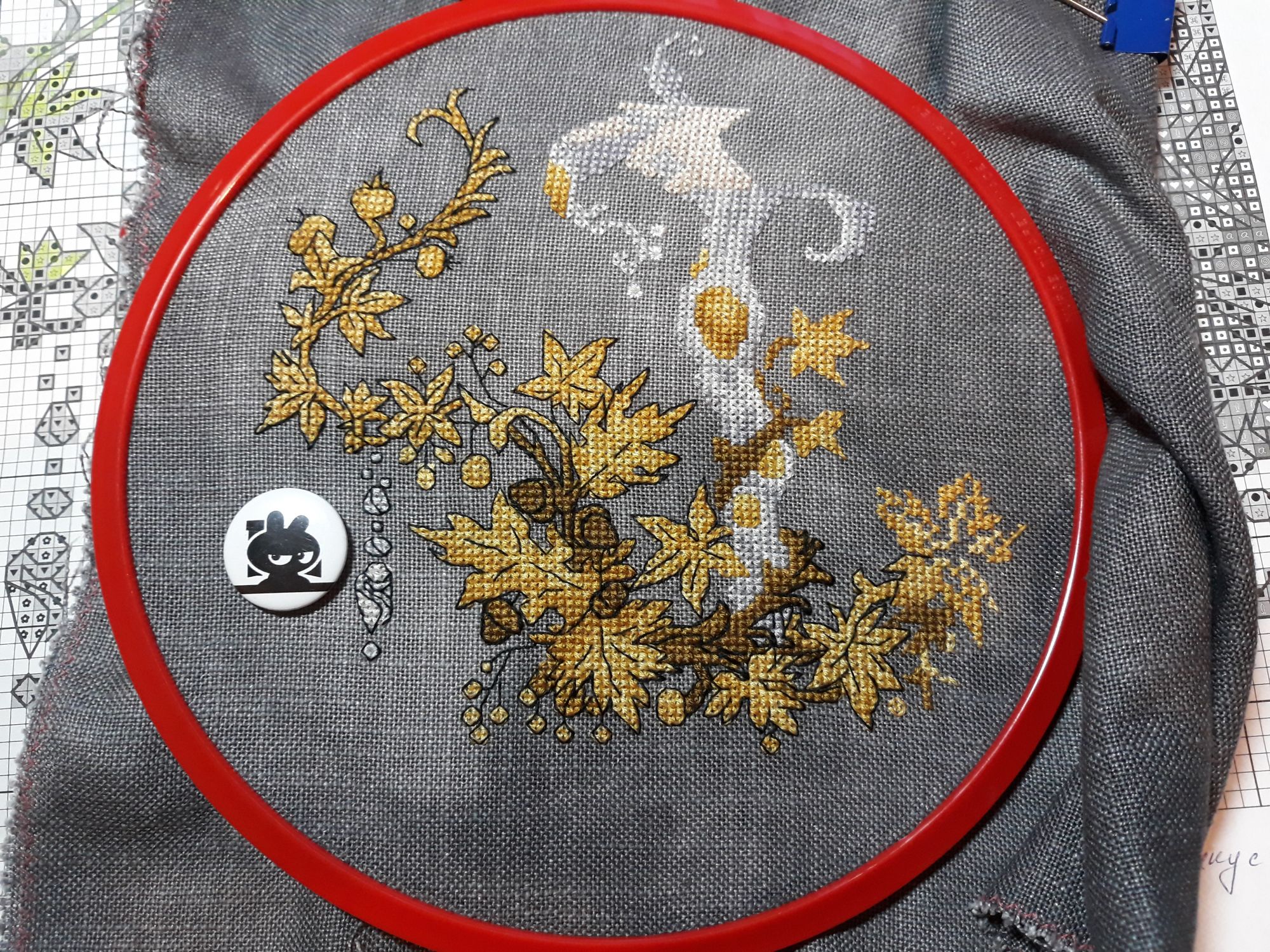 12 июня 2018 ТрандуилОнятина До сих пор в шоке, что мне им прилетело. Но уж раз прилетело, то... На самом деле непонятно что! По сути он никуды у меня невпихуем и невешаем. Была идея изначально с панно, но такая площадь с мноха бисера супротив российской элитной пылищи... Будем ещё подумать Кажись с бисером я всё ж переборщила, но это уж как водится - не остановить сумасшедшего бизона И кстати Трандуил был падок на блестяшки всякие - так что тут как раз я скромненько Картинко в тему (мозг окончательно доеден) МОЙ Мы дошли до края снапов, и мы красивыеойойдержитеменясемеро Не для гаечки, а для демонстрации масштаба - МОЙ по сравнению с моей лапой Лисичка с виноградом Аффторская схема от Елены Душкиной-Шатт (во крутое фамилиё !!!) Давно недоумеваю на шовчики. Ах, это всегда дурно для меня заканчивается Мне надо вводить внутри себя строгий мораторий на не-понимаю / недоумеваю / не-люблю и тьфу-не-могу. Оно всё валится на меня с силой терпящей бедствие слегка опознанной летающей тарелки! Основа Lugana 25ct. 3835/7025 гранитный. Оооо! Как меня протаскивает от этого совершенно неочевидного выбора. Такая вся сясь-масясь лисичка и такой цвет брутальный. Но он классно сочетается с тканюшками, а моя хочет чё-нить такое прикладное вытворить с этим дизайном. В общем, даже если и не вытворится - я всё равно чрезвычайно выбором довольна. Еще больше писков 25му каунту канвы - я так оказалось по нему соскучившись!!! Нитки - DMC и ПНК. А ключ в Гамме... Я даже не знаю как квалифицировать это. Не покупать копеечные нитки, потому что лениво за ними тащиться в магазин и захламлять свои закрома (Крыс на баланс ставить отказался категорически), и прокипятить себе мозги подбором интернет+карта DMC+око Саурона меня. Цветов, конечно, немножко, но тут всё равно надо было их подружить. Это особенная фигня, когда не знаешь, какой это цвет изначально... Но склалось Каори, Galagenka, Хозяйка смешных зверей и 20 других сказали спасибо Поделиться сообщением Ссылка на сообщение
