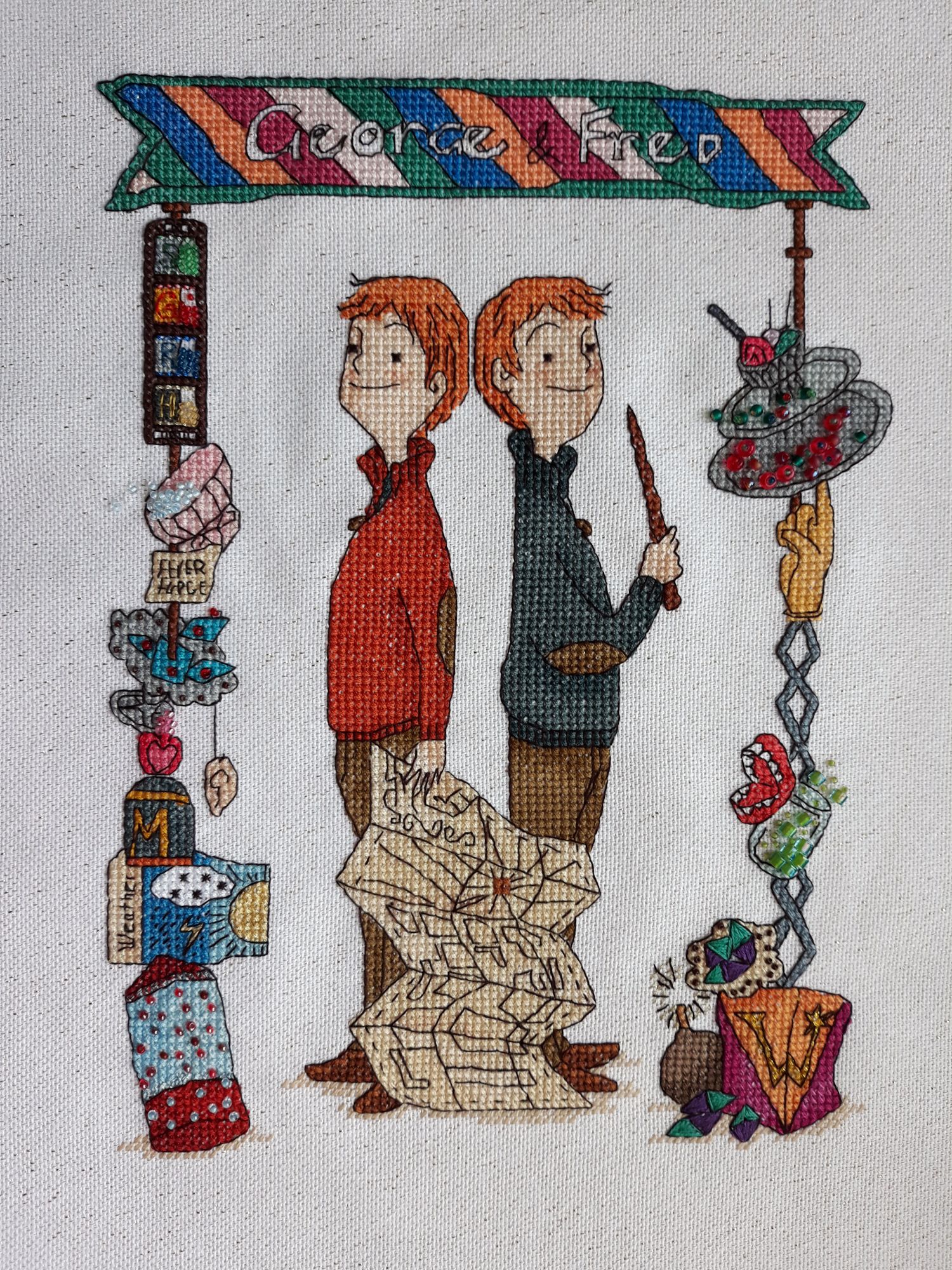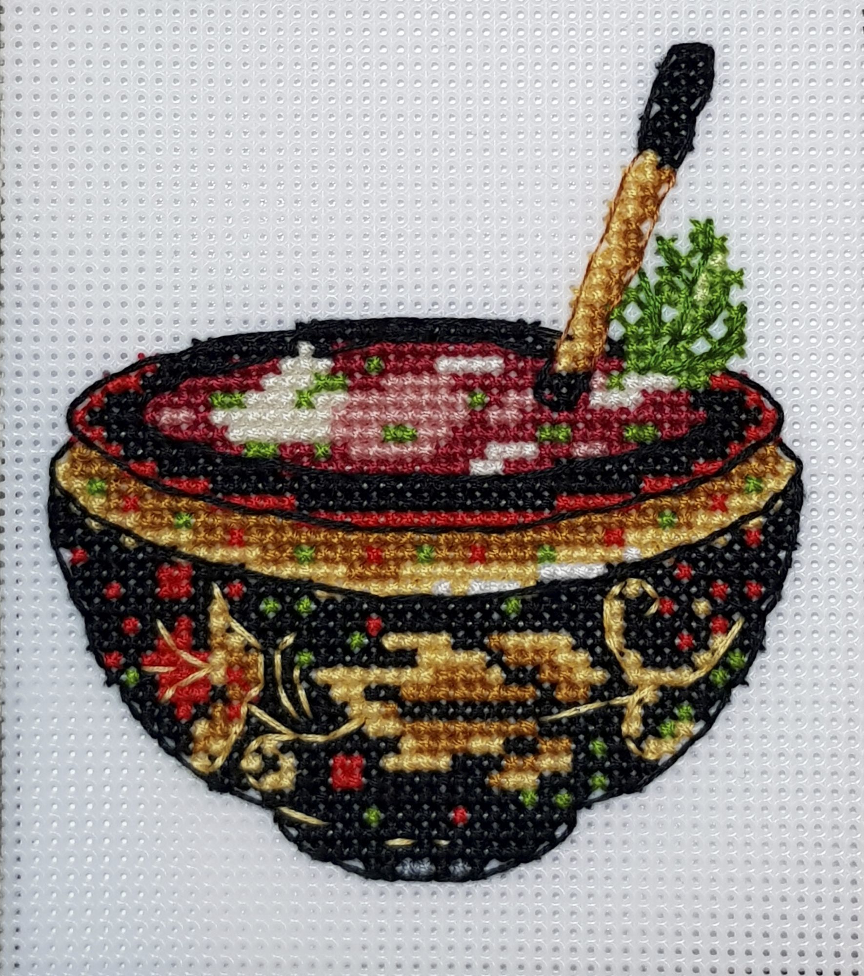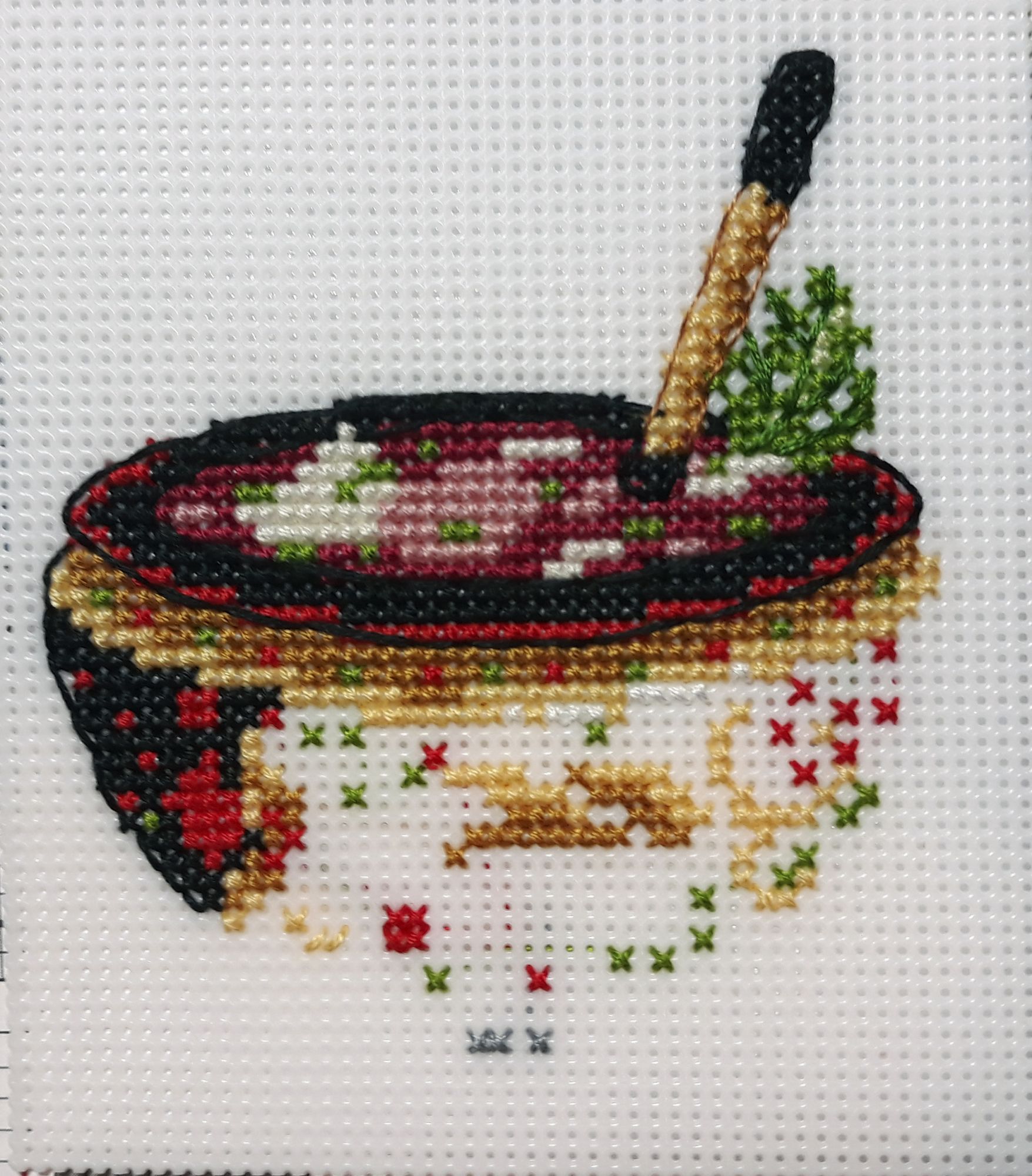1 января 2019 Давно меня не обреталось, потому не кратко (впрочем оно так всегда, но сейчас будет ещё более, чем более). Будем итожить. Тут основной фактор – Работун. Точнее даже не Работун, он-то моя личная страсть, тут же к концу года меня решили проверить на огнеупорность. Испытывали пламенем ада. То ли ещё будет в 2019!!! Однако всё ж я умудрилась чего-то навышивать, и даже провести с Крысом полный аудит закромов. Мы всё посчитали, переписали покрестикно, отложили в дальний угол схемы не хочу-не буду, отдали 3 набора тем, кому они доставят радость… Итого мне мой схрон встает в 37 лет при расчете 100Х/день. Сначала-то он встал помене, но тоже под 30, потому я уже спокойно подзакупилась, чем хотелось. На фоне того, как я впахиваю, мне можно всё. Хоть на 100, хоть на тыщу. Что не отошью, то облюнявю. Далее то, что удалось накрестить ещё до того, как пламя ада начало лизать мои стопы. Riolis. Bistrot 1217 А вот умничко я невероятное, что полукрестом всё отшарашила. Про эту работу могу сказать одно – УДОВОЛЬСТВИЕ. Я её отшила в 2 раза быстрее, чем Bierhaus, несмотря на то, что времени было куда меньше! Разница крест – полукрест есть. Крестом аккуратнее, но УДОВОЛЬСТВИЕ не переплюнуть. В гаечку, пожалста Мы с Тамарой красотули. 2 из 5 готоффченко! Опосля ко мне стремительно подкатило пламя… Что бы взять, чтобы окончательно коньки не двинуть?… Страстно любимое нельзя – настрой не тот. А не страстно, то и зачем… Я протянула лапу к толстый папкен со схемкен, меланхолично стала копошиться и тут !ба-бац! ОНО! Й-ожик от Яны Минасян Основа: Lugana Zweigart 3835/323 (летний хаки) Нитки: ассорти В Михайле у меня была блестючая йель, в Й-ожике подарок отвечает за настроение. Металликом вышита зеленая лента. Сам металлик куплен на алибаба-экспресс и искрит офигенно! Его даже рассматривать не нужно под лампой ильича по углом в 23,4 градуса!!! Сразу видно – дорохо-бохато! Приятный бонус – вполне нормален в работе. Лучше, чем DMC! Отличный Й-ож совершенно реанимировал меня от кризиса. В этом необъяснимая магия серийных работ – берешь и сразу вспоминаешь, что было с предшественниками! И магнитик такой же берешь, и такая ностальжи… Ажно хлюп. С Михайло были сопли-слюни, и с текущим животином туда же. Ровно год прошел с Михайлы. Мне кажется прекрасная традиция – вышивать мЭх в ноябре. Татьяна Листарова -> Яна Минасян -> Я В гаечку, пожалста Мы с Тамарой красотули. 2 из 4 готоффченко! Русская кухня. Овен. 1081. Это мамин запрос. Но мне и самой было любопытно, как там оно на пластике. + Еда-я-люблю-тебя! + + Русский дух и Русью пахнет!! + + + Хохлома-хаха! Моя самая любимая форма русского народного промысла. Черное с красным – ммм! Обожаю! Мой первый набор от Овна и первая работа на пластиковой основе. Я в восторге от всего. Овну аплодирую стоя. И разработка, и схема, и нитки… Впрочем, задержусь на каждом пункте. Проработка дизайна – каждое блюдо примерно 500х400 Х. Просто и понятно, результат же просто !УХ! Я первый борщ весь обслюнявила – безупречно и всё тут. Схема – не глянцевая, достаточно крупная, цвето-символьная ака Риолис (мой любимый вариант))). Нитки – ПНК нового образца. Я их и так люблю, но мне показалось, что эти даже лучше, чем те, что мной закуплены в масштабах палитры. Такие гладенькие, толстенькие красавчики. Длина пасмы около метра – я и сам себе такие всегда чекрыжу. Органайзер – обычный картон с напечатанными цифрами. Без вс