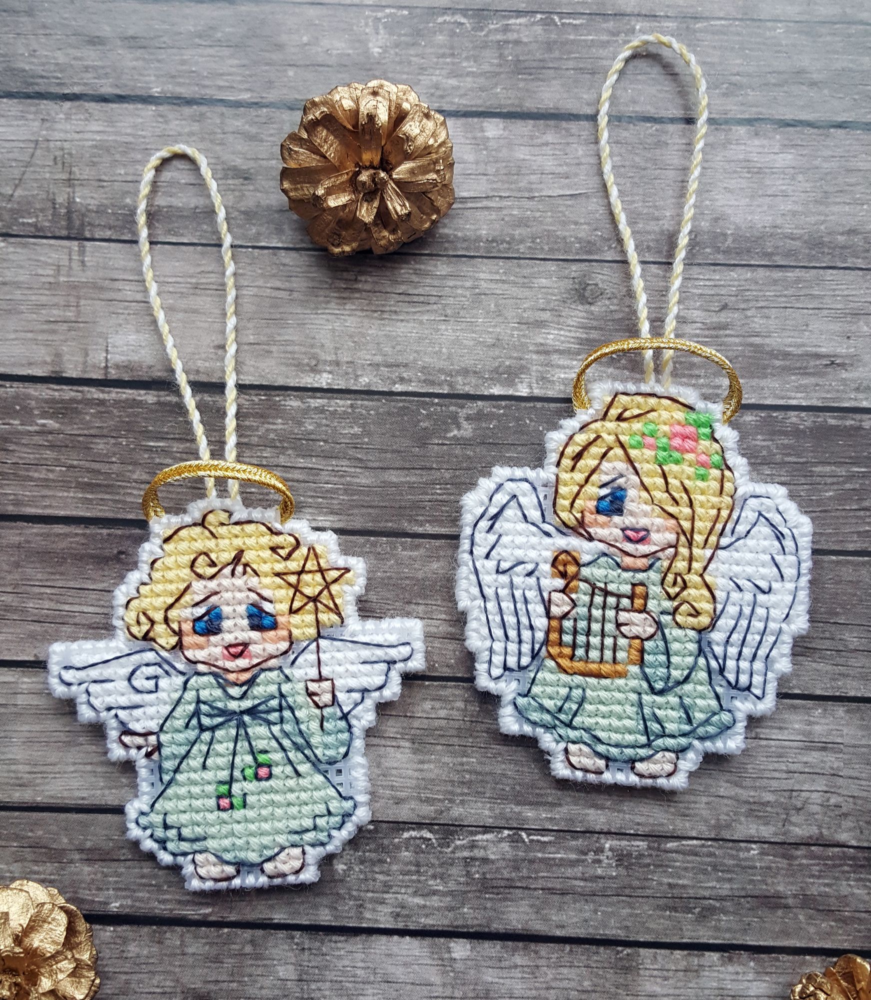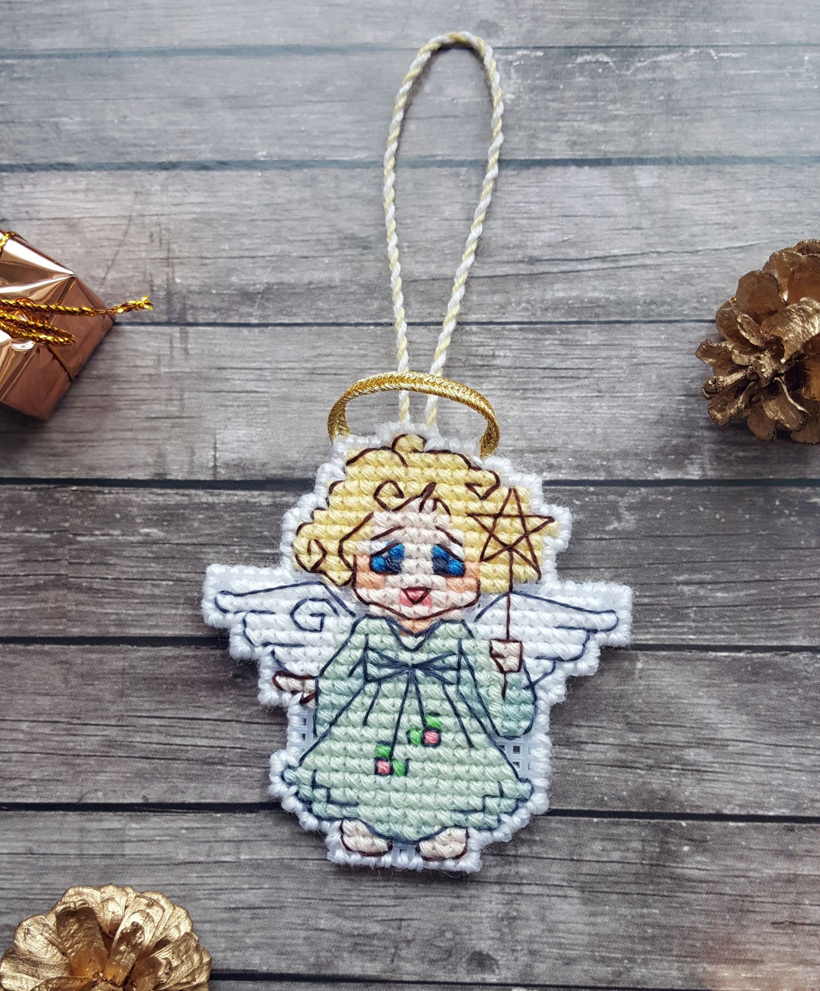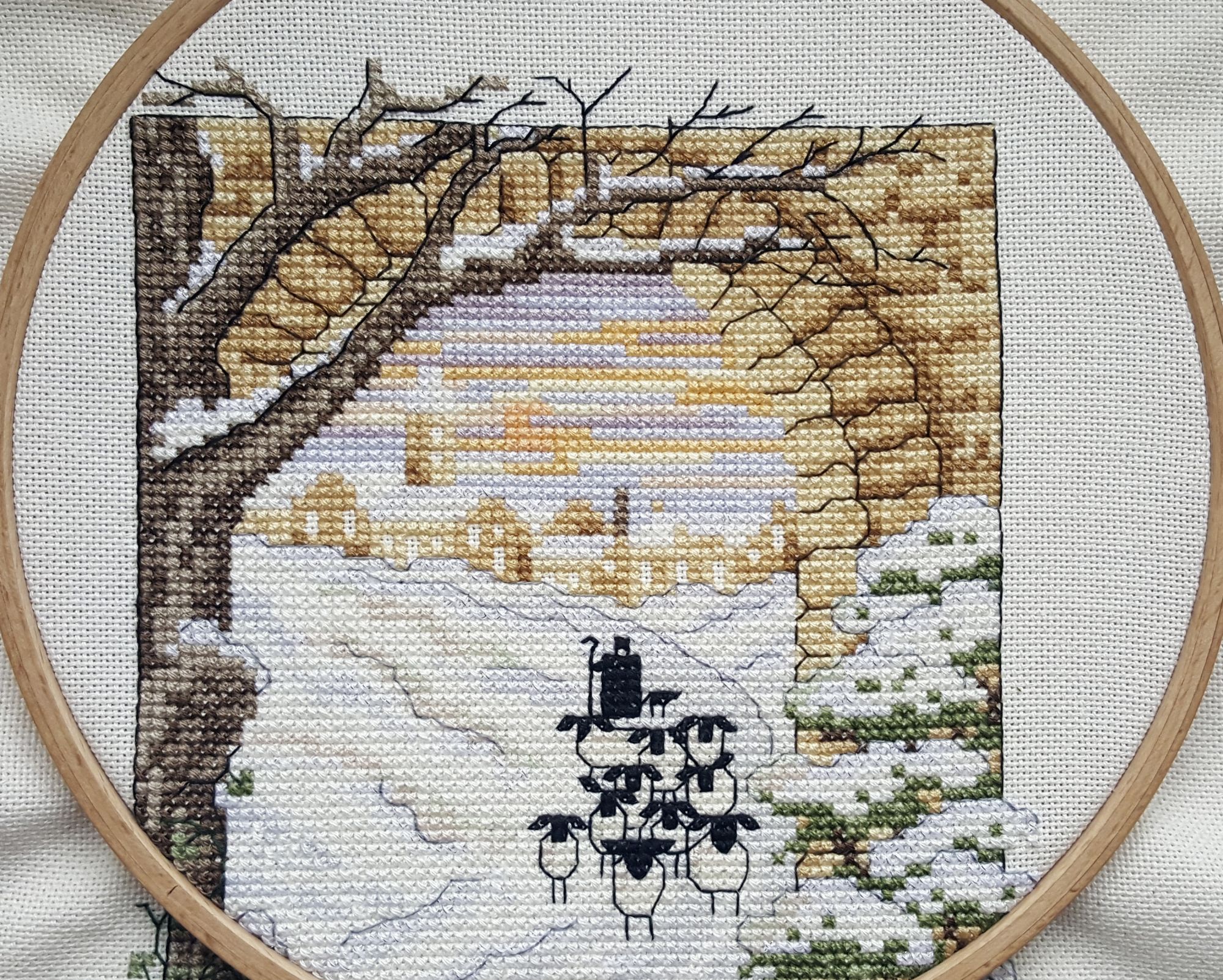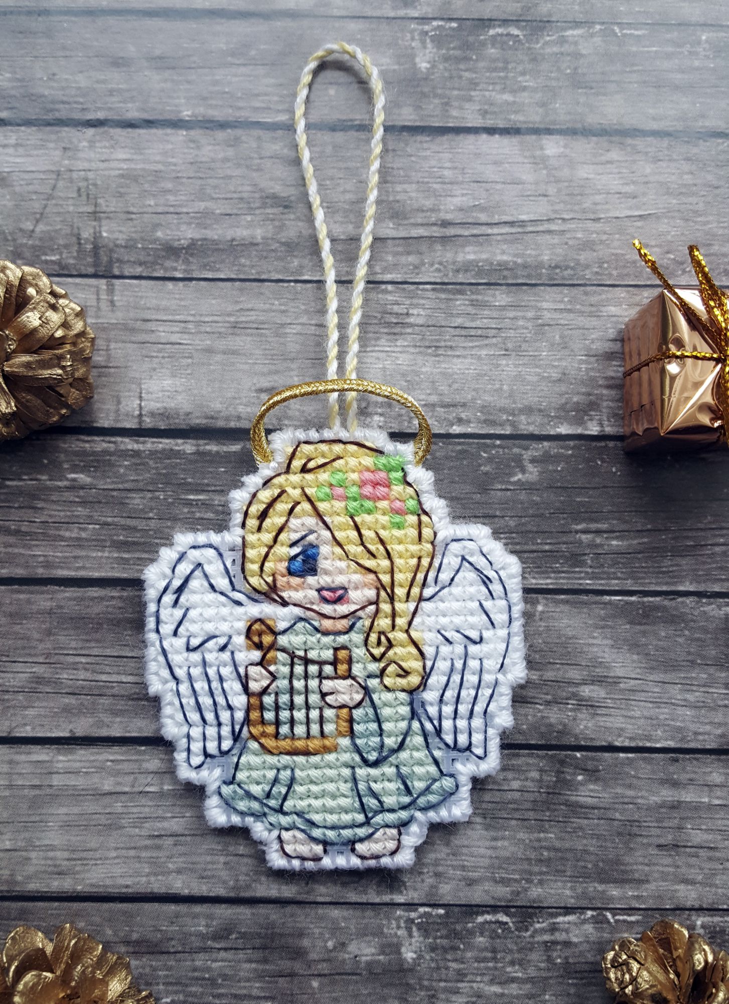 8 марта 2019 Ммм… Ну, чо пламя ада бла-бла лобызало бла-бла, и никак я не могла бла-бла Всё. Сопли с пола подымаем. Понеслась. Значицо, во-первЫх, закрываем открытые гайки Ангелочки Носы-бисеринки не стала делать - им не нать. + у одного, который с арфой, ошиблась с ножками на крестик, поэтому получился он у меня длинноногий в коротком платьишке. У меня все мальчики! Всё прекрасно, если найти того, кто это всё к готовому виду приведёт. Тут нужны бабки-няньки, чтобы собираться и к утру 30 шелковых ковров прикладнушек, чтобы были готовы. Но там, если кого надо наказать, кому отомстить, кого порадовать, то несомненно этим следует пользоваться. Ремус Оборотень – это бэк уровня Бог! А я его всего за 2 дня!! Всё было классно и оч быстро. Дизайны Насти они лучшие и всё тут. Фрузелы заенила на бисер. А кто у нас тут?!! А это черный котик, который у Picolo-kun почти везде)) Я протащившись! Picolo-kun -> Настя Усова -> Я В гаечку пжалста-пжалста Мой Усово-пантеон Вах-овцы Я заменила непонятного хрена с горы на аутентичного чабана. Ооо! Какой он у меня красавец-мужчина в бурке барашковой четырехниточной толстости, с посохом… Волкодаву немного морду подправила – а то казалось, что собакен без головы. Овечки, чабан раскрасавец, снежок сверкает, закатное солнышко небо в разные цвета раскрашивает, лоза виноградная по стене ползет… Прелесть несусветная. Вах-вах-вах!!! Во-вторых, новая и сразу зеленая гайка. Тропинка. Риолис 1604 Это по маминому запросу. По задумке производителя тропинка должна была родиться на 10м каунте с габаритами 30*24 см. Но такие масштабы меня смутили, и я взялась ваять на 14м. В целом был получен очень хороший щелчок по носу – не зазанавайся! Я так себе представляла, что это будет мега-просто. Чо там вышивать-то?! Дизайн для детишек. Ну, да. Ага. Оказалось, что оно отшивается в разное сложение нитей, есть бленды, которые тоже в разное сложение… Это даже хорошо, НО забор из травы! НО берОза, которая будет мне сниться… И это 12 тыщ крестов, Карл! Я, конечно, творчески уменьшила сложение нитей, где в две, где в одну, где полукрестом. Это помогло совсем не кирдыкнуться – бурлить я люблю. Но трава… Но берОза (травма-травма). Я опасалась неба, но оно было суперическим – на нём я отдыхала в полном объеме. Несомненно добавила моя нелюбовь к летним дизайнам. Я о ней и не знала, но она у меня оказалось есть. Лето – это не моё. И как-то за окном снег, а тут эта зелень… Ещё и шерстяная. Когнитивный диссонанс... В принципе после того, как я прорубилась через четверть работы, я заценила прелесть. Не в плане процесса, а в плане результата. Мама довольна. Большего и не надо. Медаль беру себе за выполнение... Или даже орден во всю грудь! А у меня ещё осень… Боюса-боюса. Ню и из-за полукреста (я так предполагаю) нас перекособочило слегконца, но я из тех, кого это аще не заботит. Это проблема багетчика В-третьих, новые красные гайки. Трандуилкин с паучком Сие есть индивидуальная разработка (мне сделали, я не сам, конечно) по изображению Kagalin. Я заболела, как увидела. Шедевран настроение – рюмочка вина в лапе, паучок жиренький, вишенка на верёвочке, выражение бесконечной экзистенциональной скуки на круглой мордахе… Этот Трандуил совершенство от носочков до блондинистой макушки. Ворох восторгов. Тут мой первый опыт на кошках Monica Ubelhor 30 ct. Она такая… такая… слабенькая. Я её натурально боюсь. Мне кажется, что если 