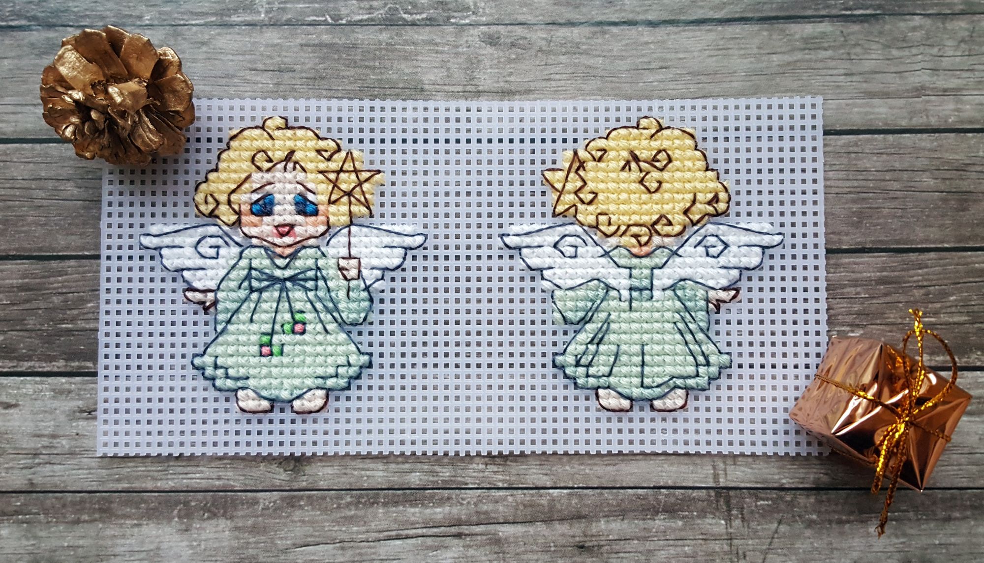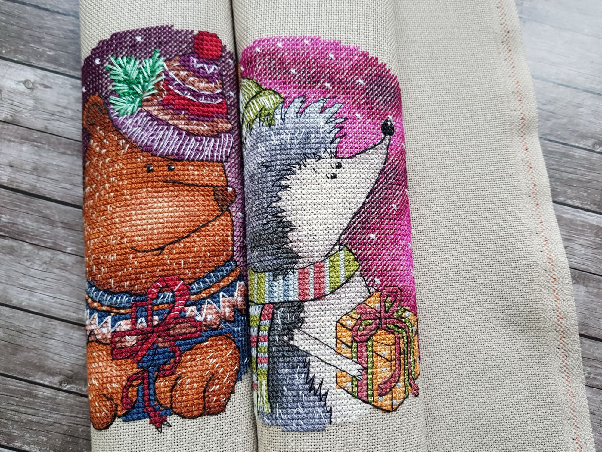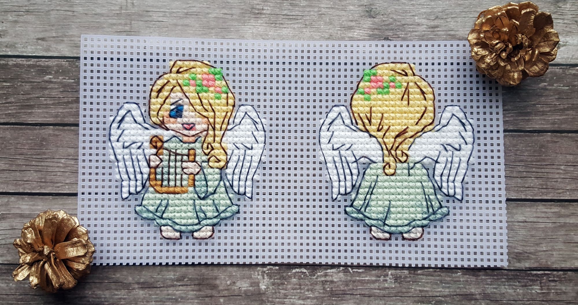 8 марта 2019 Ммм… Ну, чо пламя ада бла-бла лобызало бла-бла, и никак я не могла бла-бла Всё. Сопли с пола подымаем. Понеслась. Значицо, во-первЫх, закрываем открытые гайки Ангелочки Носы-бисеринки не стала делать - им не нать. + у одного, который с арфой, ошиблась с ножками на крестик, поэтому получился он у меня длинноногий в коротком платьишке. У меня все мальчики! Всё прекрасно, если найти того, кто это всё к готовому виду приведёт. Тут нужны бабки-няньки, чтобы собираться и к утру 30 шелковых ковров прикладнушек, чтобы были готовы. Но там, если кого надо наказать, кому отомстить, кого порадовать, то несомненно этим следует пользоваться. Ремус Оборотень – это бэк уровня Бог! А я его всего за 2 дня!! Всё было классно и оч быстро. Дизайны Насти они лучшие и всё тут. Фрузелы заенила на бисер. А кто у нас тут?!! А это черный котик, который у Picolo-kun почти везде)) Я протащившись! Picolo-kun -> Настя Усова -> Я В гаечку пжалста-пжалста Мой Усово-пантеон Вах-овцы Я заменила непонятного хрена с горы на аутентичного чабана. Ооо! Какой он у меня красавец-мужчина в бурке барашковой четырехниточной толстости, с посохом… Волкодаву немного морду подправила – а то казалось, что собакен без головы. Овечки, чабан раскрасавец, снежок сверкает, закатное солнышко небо в разные цвета раскрашивает, лоза виноградная по стене ползет… Прелесть несусветная. Вах-вах-вах!!! Во-вторых, новая и сразу зеленая гайка. Тропинка. Риолис 1604 Это по маминому запросу. По задумке производителя тропинка должна была родиться на 10м каунте с габаритами 30*24 см. Но такие масштабы меня смутили, и я взялась ваять на 14м. В целом был получен очень хороший щелчок по носу – не зазанавайся! Я так себе представляла, что это будет мега-просто. Чо там вышивать-то?! Дизайн для детишек. Ну, да. Ага. Оказалось, что оно отшивается в разное сложение нитей, есть бленды, которые тоже в разное сложение… Это даже хорошо, НО забор из травы! НО берОза, которая будет мне сниться… И это 12 тыщ крестов, Карл! Я, конечно, творчески уменьшила сложение нитей, где в две, где в одну, где полукрестом. Это помогло совсем не кирдыкнуться – бурлить я люблю. Но трава… Но берОза (травма-травма). Я опасалась неба, но оно было суперическим – на нём я отдыхала в полном объеме. Несомненно добавила моя нелюбовь к летним дизайнам. Я о ней и не знала, но она у меня оказалось есть. Лето – это не моё. И как-то за окном снег, а тут эта зелень… Ещё и шерстяная. Когнитивный диссонанс... В принципе после того, как я прорубилась через четверть работы, я заценила прелесть. Не в плане процесса, а в плане результата. Мама довольна. Большего и не надо. Медаль беру себе за выполнение... Или даже орден во всю грудь! А у меня ещё осень… Боюса-боюса. Ню и из-за полукреста (я так предполагаю) нас перекособочило слегконца, но я из тех, кого это аще не заботит. Это проблема багетчика В-третьих, новые красные гайки. Трандуилкин с паучком Сие есть индивидуальная разработка (мне сделали, я не сам, конечно) по изображению Kagalin. Я заболела, как увидела. Шедевран настроение – рюмочка вина в лапе, паучок жиренький, вишенка на верёвочке, выражение бесконечной экзистенциональной скуки на круглой мордахе… Этот Трандуил совершенство от носочков до блондинистой макушки. Ворох восторгов. Тут мой первый опыт на кошках Monica Ubelhor 30 ct. Она такая… такая… слабенькая. Я её натурально боюсь. Мне кажется, что если 