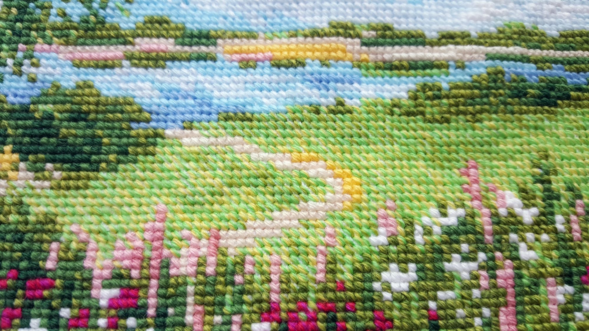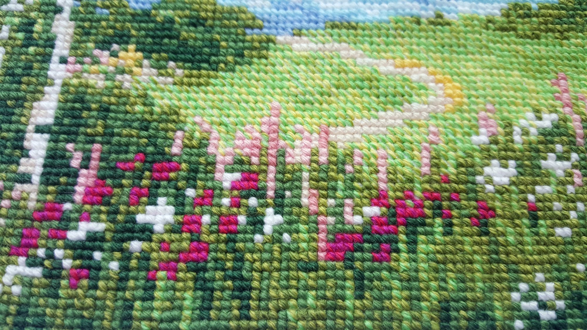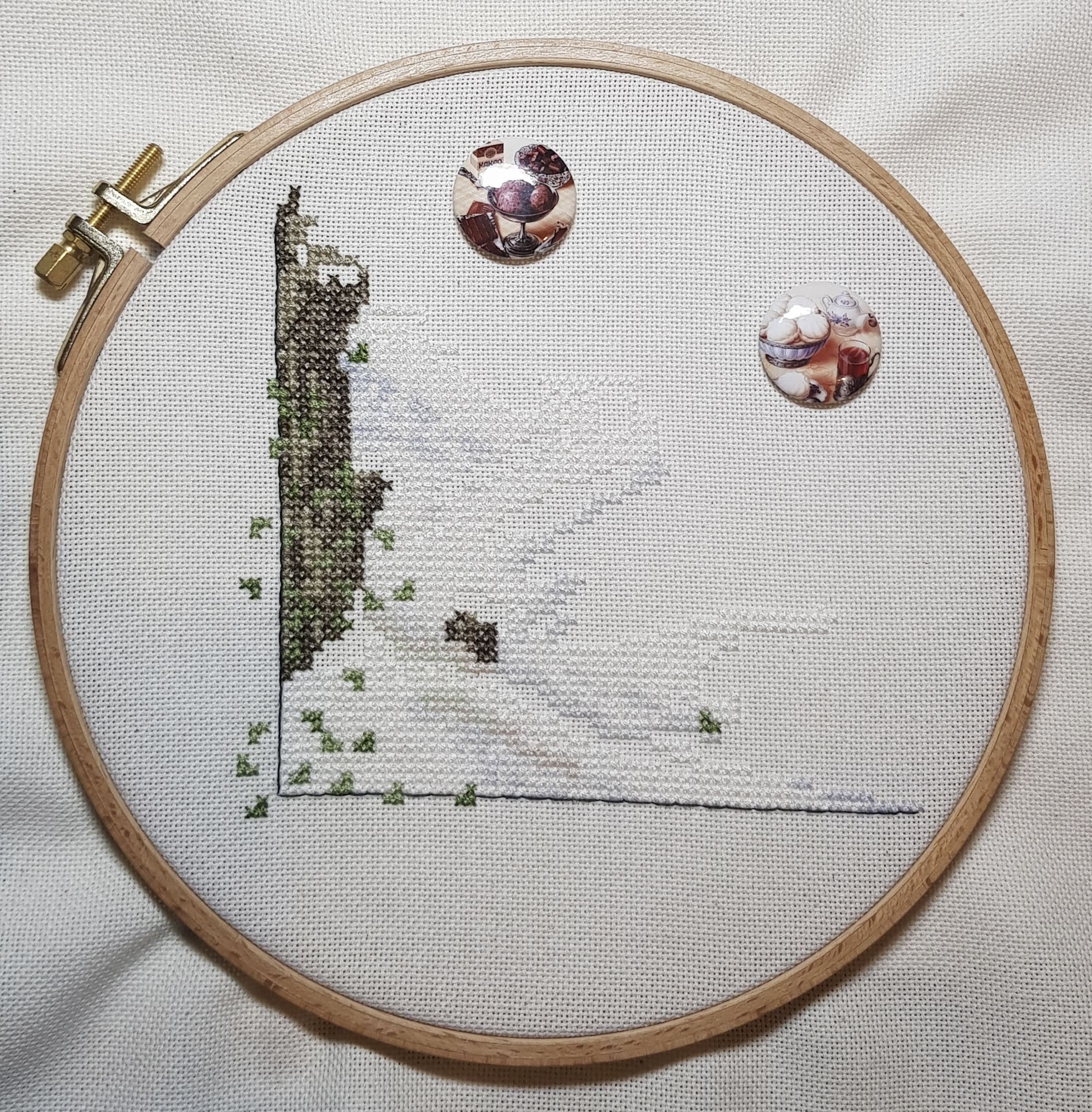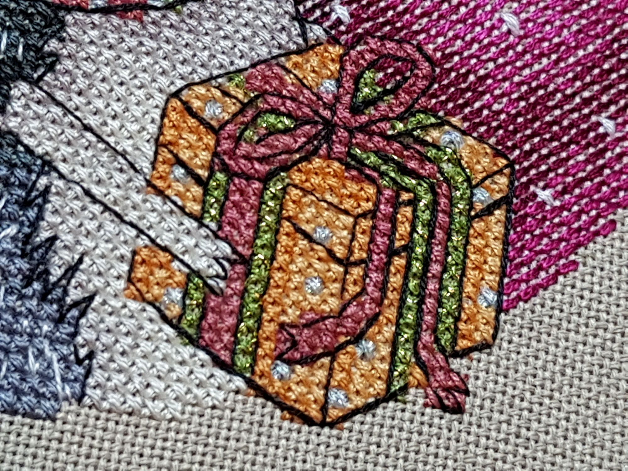 8 марта 2019 Ммм… Ну, чо пламя ада бла-бла лобызало бла-бла, и никак я не могла бла-бла Всё. Сопли с пола подымаем. Понеслась. Значицо, во-первЫх, закрываем открытые гайки Ангелочки Носы-бисеринки не стала делать - им не нать. + у одного, который с арфой, ошиблась с ножками на крестик, поэтому получился он у меня длинноногий в коротком платьишке. У меня все мальчики! Всё прекрасно, если найти того, кто это всё к готовому виду приведёт. Тут нужны бабки-няньки, чтобы собираться и к утру 30 шелковых ковров прикладнушек, чтобы были готовы. Но там, если кого надо наказать, кому отомстить, кого порадовать, то несомненно этим следует пользоваться. Ремус Оборотень – это бэк уровня Бог! А я его всего за 2 дня!! Всё было классно и оч быстро. Дизайны Насти они лучшие и всё тут. Фрузелы заенила на бисер. А кто у нас тут?!! А это черный котик, который у Picolo-kun почти везде)) Я протащившись! Picolo-kun -> Настя Усова -> Я В гаечку пжалста-пжалста Мой Усово-пантеон Вах-овцы Я заменила непонятного хрена с горы на аутентичного чабана. Ооо! Какой он у меня красавец-мужчина в бурке барашковой четырехниточной толстости, с посохом… Волкодаву немного морду подправила – а то казалось, что собакен без головы. Овечки, чабан раскрасавец, снежок сверкает, закатное солнышко небо в разные цвета раскрашивает, лоза виноградная по стене ползет… Прелесть несусветная. Вах-вах-вах!!! Во-вторых, новая и сразу зеленая гайка. Тропинка. Риолис 1604 Это по маминому запросу. По задумке производителя тропинка должна была родиться на 10м каунте с габаритами 30*24 см. Но такие масштабы меня смутили, и я взялась ваять на 14м. В целом был получен очень хороший щелчок по носу – не зазанавайся! Я так себе представляла, что это будет мега-просто. Чо там вышивать-то?! Дизайн для детишек. Ну, да. Ага. Оказалось, что оно отшивается в разное сложение нитей, есть бленды, которые тоже в разное сложение… Это даже хорошо, НО забор из травы! НО берОза, которая будет мне сниться… И это 12 тыщ крестов, Карл! Я, конечно, творчески уменьшила сложение нитей, где в две, где в одну, где полукрестом. Это помогло совсем не кирдыкнуться – бурлить я люблю. Но трава… Но берОза (травма-травма). Я опасалась неба, но оно было суперическим – на нём я отдыхала в полном объеме. Несомненно добавила моя нелюбовь к летним дизайнам. Я о ней и не знала, но она у меня оказалось есть. Лето – это не моё. И как-то за окном снег, а тут эта зелень… Ещё и шерстяная. Когнитивный диссонанс... В принципе после того, как я прорубилась через четверть работы, я заценила прелесть. Не в плане процесса, а в плане результата. Мама довольна. Большего и не надо. Медаль беру себе за выполнение... Или даже орден во всю грудь! А у меня ещё осень… Боюса-боюса. Ню и из-за полукреста (я так предполагаю) нас перекособочило слегконца, но я из тех, кого это аще не заботит. Это проблема багетчика В-третьих, новые красные гайки. Трандуилкин с паучком Сие есть индивидуальная разработка (мне сделали, я не сам, конечно) по изображению Kagalin. Я заболела, как увидела. Шедевран настроение – рюмочка вина в лапе, паучок жиренький, вишенка на верёвочке, выражение бесконечной экзистенциональной скуки на круглой мордахе… Этот Трандуил совершенство от носочков до блондинистой макушки. Ворох восторгов. Тут мой первый опыт на кошках Monica Ubelhor 30 ct. Она такая… такая… слабенькая. Я её натурально боюсь. Мне кажется, что если 