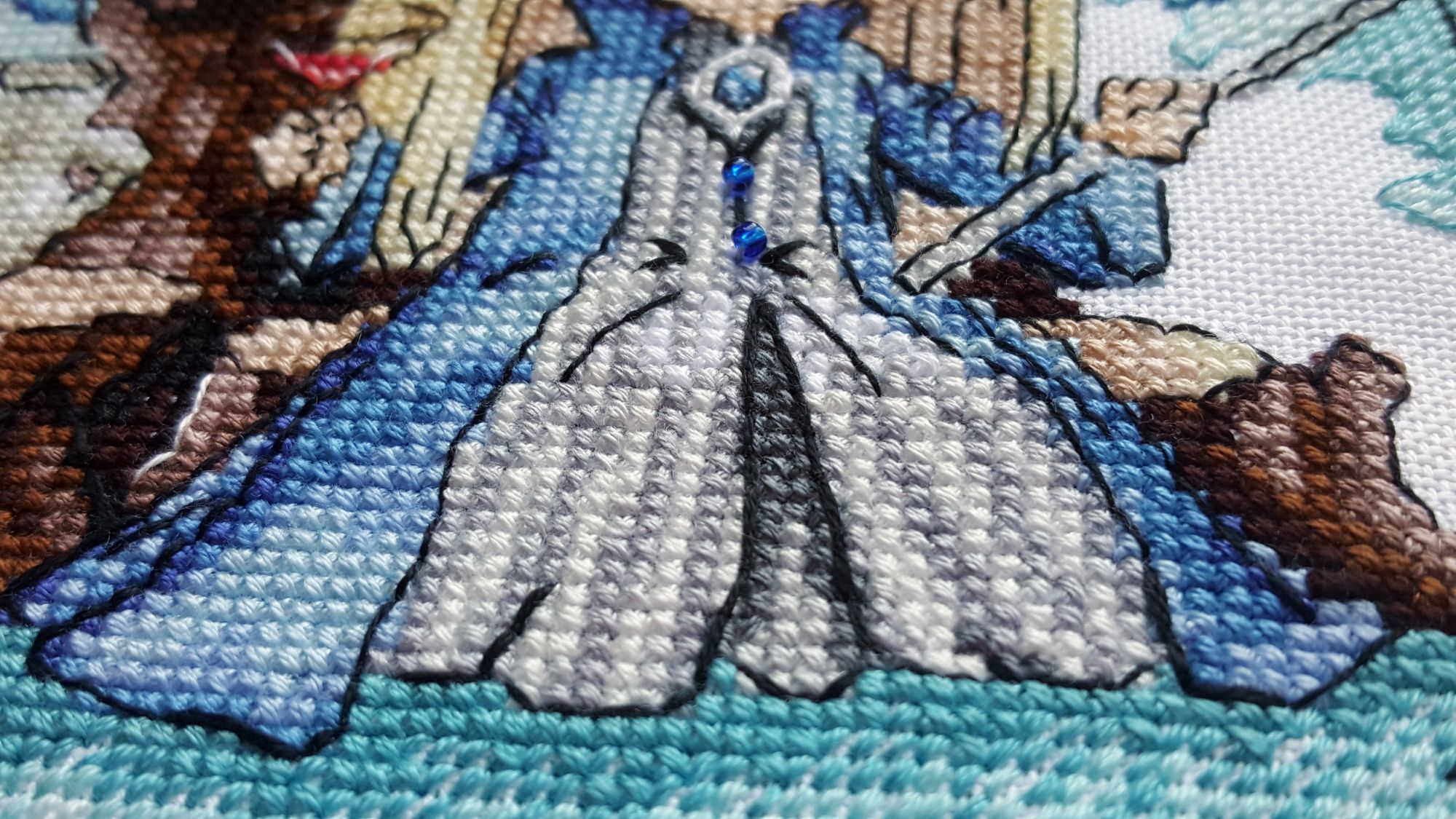24 мая 2019 Кто у мамы сладкая конфета?!!! Мы с Трандуилом были на краю пропасти и вечный неотшив тянул к нам свои лохматые лапы. Моника была противна, я была слаба, зима была близко. Трандуилкин был брошен, страдал и через это получил внутри меня новое звание Трандуилий. Вина моя, така вина… Много вина В общем, спасибую всем начинанцам, благобобря вам во мне забурлило невиданное вдохновение, которое до той степени меня долбануло, что я даже почувствовала в себе силы монику побороть. К монике без спец-средств я всё же подходить не решилась, поэтом вооружилась колготами, натянутыми до подбородка и одним СП. Эх, никогда не было во мне склонности к СП, чего меня пинать или воодушевлять, если я сама по себе мега-ватты энтузиазма генерю… Но Трандуилий и так уже брошен-страдал – уже война и все средства. В общем, колготы с СП сработали! Это поразительно, но до перерыва я вынимала из себя внутренности, чтобы хоть как-то, а после – даже умудрилась от поедания кактуса удовольствие получить. + негативный момент – меня чрезвычайно смущало цветовое решение дизайнера. Я брала нитки и… как-то не понимала, как это может между собой дружить. Если это синие цвета, то это даже не скачок в оттенке темнее/светлее, это кардинально разные синие. Один уходит в индиго, другой - в лиловый, третий – в цвет морской волны. Как из этого может сложиться платьишко?... А эти коричневые на пенек и дерево… Был у меня порыв всё переделать... Как обычно… Но, черт побери, я за это заплатила. Надо посмотреть, зачем это придумано вот так. В процессе меня смущало сильно. Постоянно. Всё. С продвижением начались скачки восприятия. Состояния было 2 – «фигня» и «гениально». Оба в крайней степени. Утром меня накрывала черным покрывалом «фигня», вечером пробивало на «гениально». И наоборот. По результату могу сказать, что все цвета встали, как надо. Я не знаю, какое надо иметь чувство цвета, чтобы скомбинировать разные синие так, чтобы они друг-с-дружкой песни пели. Итого мне не хватает только размера – мне бы хотелось, чтобы крестики были побольше... 30 каунт не моё. Записываю себе, что все мелкие каунты уходят в соседский сад. Мне не нравится процесс, мне не нравится результат. Крестики какие-то недокормленные, я вся обпыхтелась, чтобы они были пристойные – так и норовят перекособочиться от нехватки жизненного пространства. Я не знаю КАК такие красивые работы выходят у форумских мастериц на белфасте (Ася-Каори - я о тебе!), про 40й каунт молчу – это просто физически невозможно. Второй Трандуил. И опять проблемсы с канвой. Я думала третьего на Бриттни Лугане отшивать… Я её ещё не пробовала, но, видя тенденцию, чую мне не зайдет Самое главное, конечно, что эльфийский конфет у меня теперь готов! Хе-хей!! Такой весь сладкий – ууу! Такие хваталочки у нас милые. Одна с бокалом особенно хороша. Вторая – даже не похожа на хваталку, она скорее цветочек. Но как я её не крутила – ну, не выходит. Пусть буит так – она смешная. Винишко. Паучок. Вишенка. Пуговички-бисеринки – это моя отдельная ыыы. Дохну. И соболиные бровушки – спасибо Питеру Джексону и команде, отбиравшей актеров, за Ли Пейса. Спасибо Kagalin, что она вдохновлялась именно им. Толстые мохнатые черные гусенички Vereena, irchick2308, Маняша и 21 других сказали спасибо Поделиться сообщением Ссылка на сообщение
