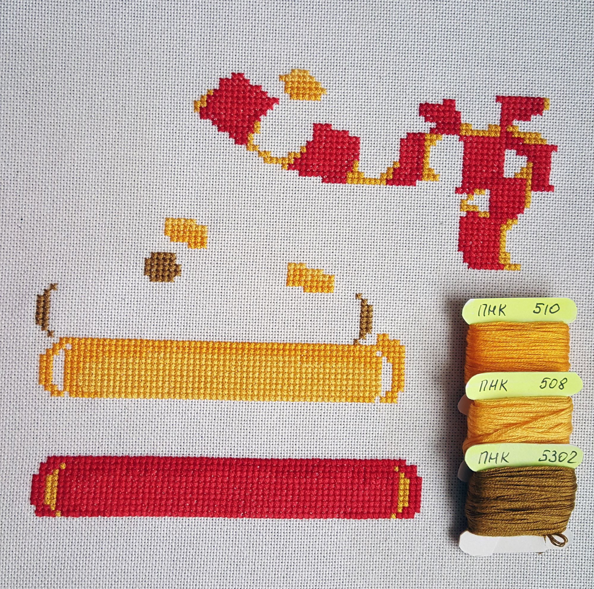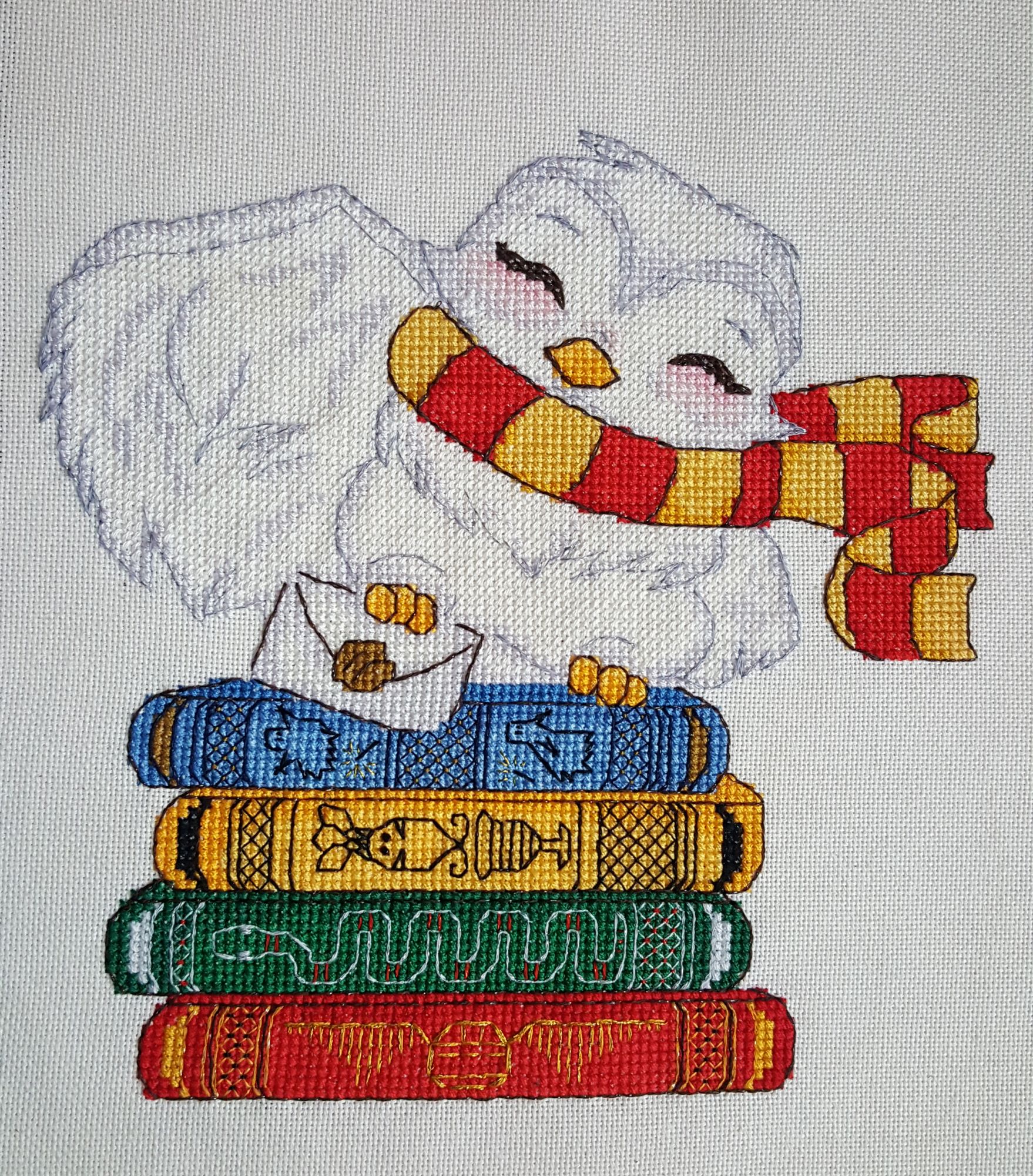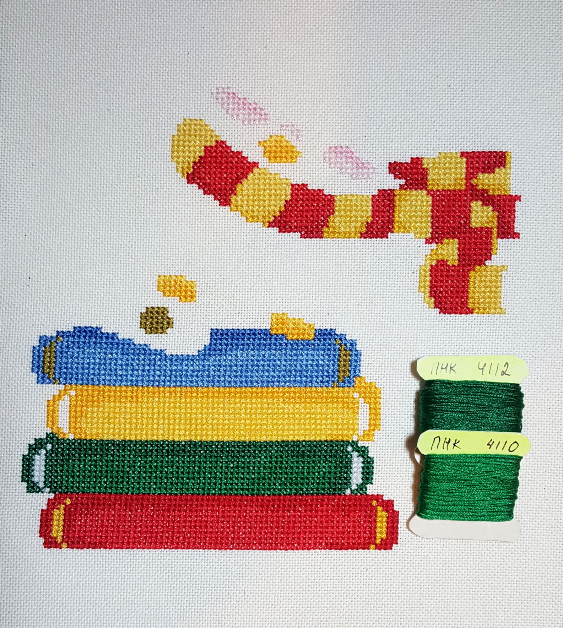 31 декабря 2019 Авантюра по ГП в картели дизайнеров в ВК Разработка Дарьи Бузыной Меня замело в минуту душевной слабости, хотя я зарекалась участвовать в авантюрах… Но эта оказалась интересной. В ключе только 3 номера цвета, остальное в формате средний/светлый/темный Х цвет. Несмотря на то, что по набору красный, желтый, синий и зеленый было сразу понятно, что будет чо-то по факультетам, всё равно было любопытно что-ж-именно-то. Продекларировано, что берите любые цвета по своему усмотрению – всё будет тип-топно при любом раскладе. По факту это не совсем так или совсем не так. Я - с высоту своего куды-девацо опыта – считаю, что следовало сообщить, что цвета должны быть из одной цветовой растяжки с интервалом в 2 оттенка. Это звучит может не очень понятно, но действительно было важно для отшива. По инструкции ты мог взять, например, любой средний и любой темный зеленый, чтобы смастерить из этого книгу. Это по инструкции, а по жизни зелёных от цвета мха сушеного до неонового салатного. А гулять тебе можно только в колорах, например, мха. Более того шаги в оттенках должны были быть одинаковые. Итого я б озвучила, что к участию допускаются владельцы полных палитр. Сова полным крестом бесценным DMC 3865 – щаз, я полукрестом отшарашила. Даже это мне встало почти в полный моток. По результату должна была быть сова, обшитая черным бэком, на книгах названия факультетов. Ну, это ж не мой метод!? Во-первых, всё отбэкано этуалями – блестиииит. Оч клёво. Книги, лапы, шарф – это не черный, а темно-коричневый этуаль. Лайв-хак! Если отбэкать этуалем, то возникает оптический эффект, который дает полное ощущение того, что весь элемент, которым он обведен, искрит. Во-вторых, меня накрыло идеей сделать книги из библиотеки Хогвартса. По различной тематике. Пыхтела, перерисовывала… И вот, что получилось! Снизу вверх: Что: Квиддич сквозь века. Выдается действительным членам квидичных команд по запросу декана факультета. Остальные ученики закупают самостоятельно. Особые отметки: отсутствуют Украшен снитчем крылатым. Золотой металлик DMC + этуаль Что: Яды, отравы и приправы. Факультативное чтение для первокурсника Слизерина. Выдается ученикам первого курса после церемонии распределения. Особые отметки: змея кусается и шипит на учеников других факультетов Как-я-это-сделал: Змея упитанная в красную полоску + этуаль Что: Учебник травологии. 5 курс Выдается рассеянным ученикам факультета Хафлпафф Особые отметки: отсутствуют Приписка: остальным факультетам не выдавать! Гриффиндор - делают бумажных драконов из страниц по драконьему корню Слизерин - используют в варке зелий зачарованную мандрагору с корешка Рейвенкло – не обращаются! При поступлении запроса задержать ученика и вызвать декана Слизерина Украшен чашей для зелий и мандрагорой. Этуаль С310 Что: Учебник по защите от темных искусств. 7 курс Выдается ученикам 7 года обучения, принятыми на продвинутый курс обучения по Защите. Особые отметки: не допускать попадания прямых солнечных лучей. Хранить в темном прохладном месте. Дементоры очень любознательны и любят читать другие книги. Рекомендованы книги из запретной секции и маггловские любовные романы. Не давать читать Донцову! Украшен дементорами (2 шт.) и волшебными палочками (2 шт.) Результатом даже немножко горжусь Не могу показать превью, т.к. оно только в виде чужих работ.