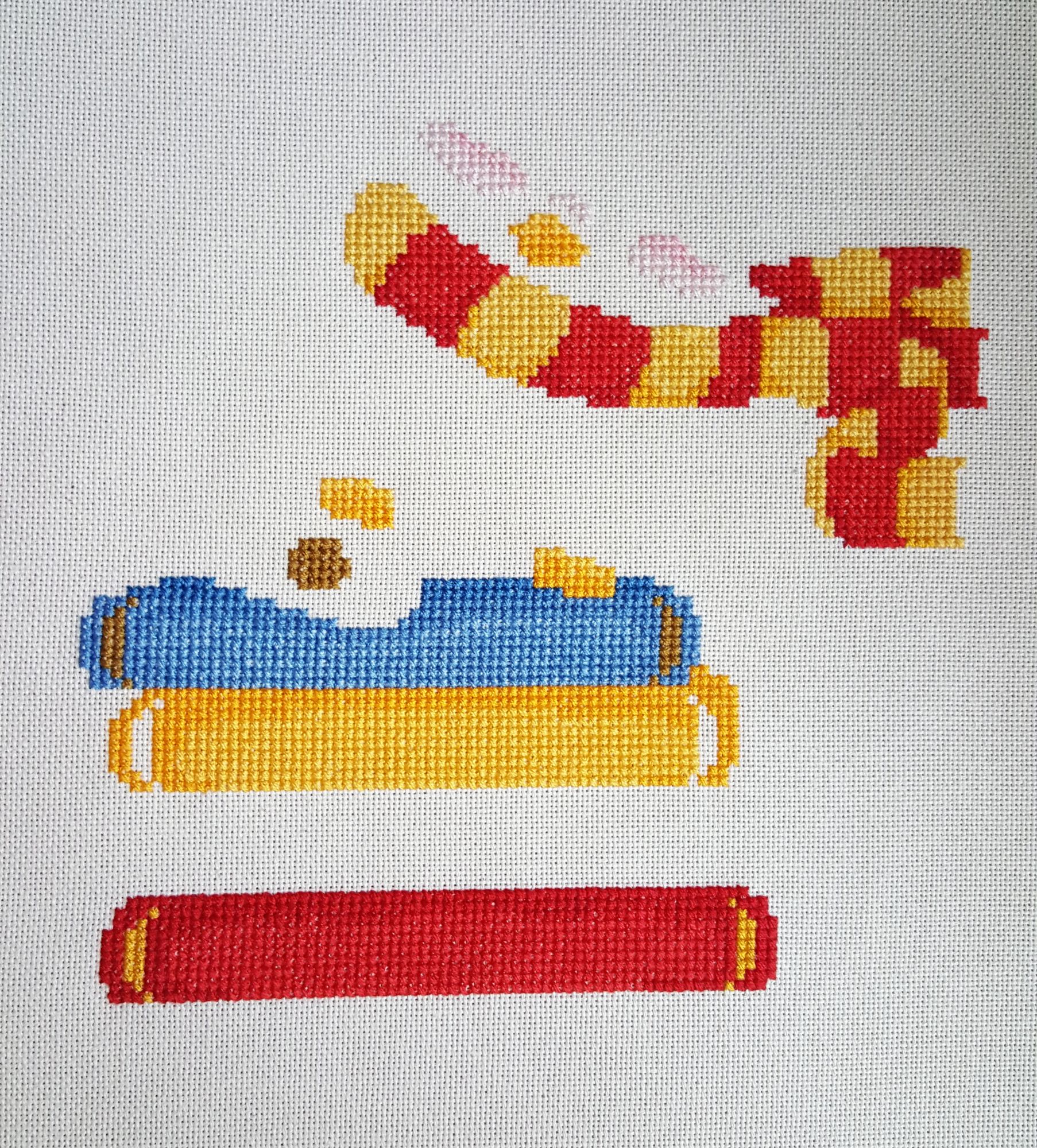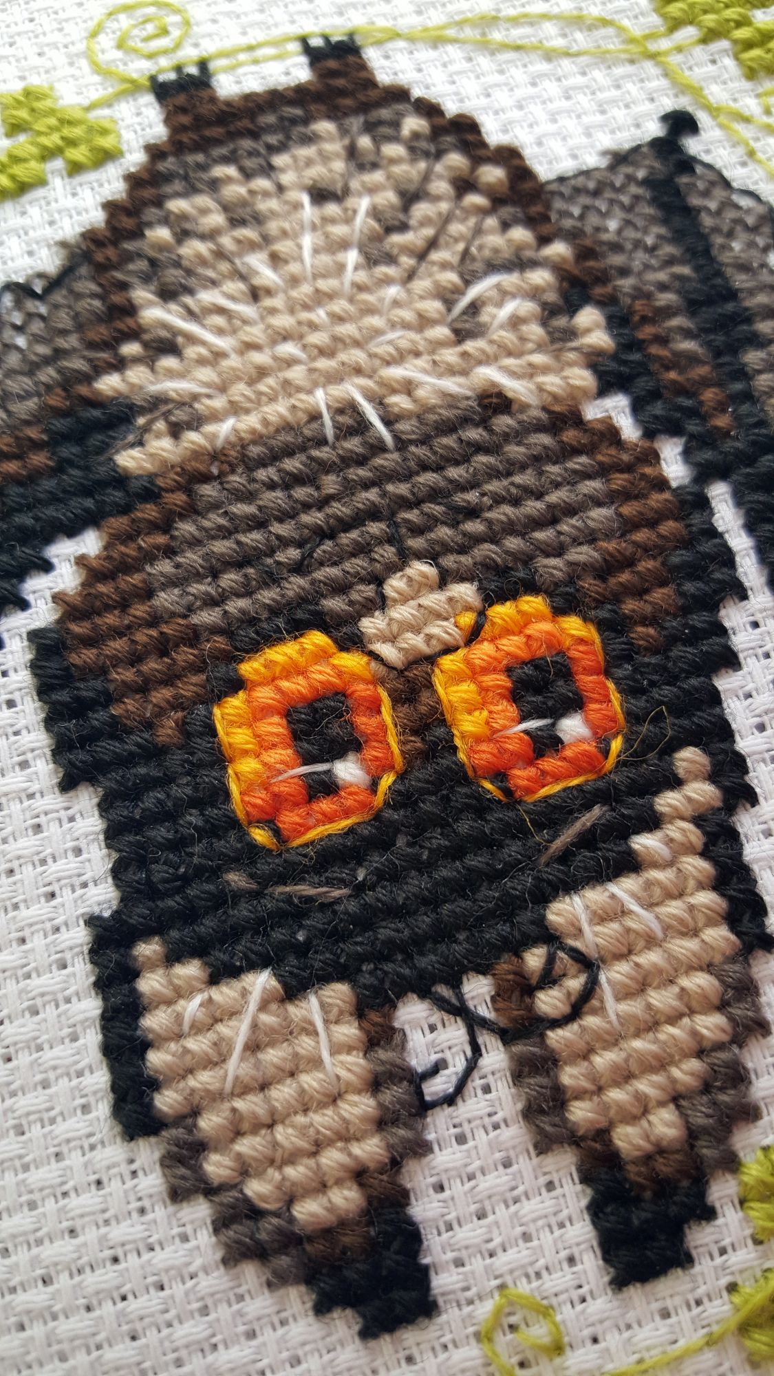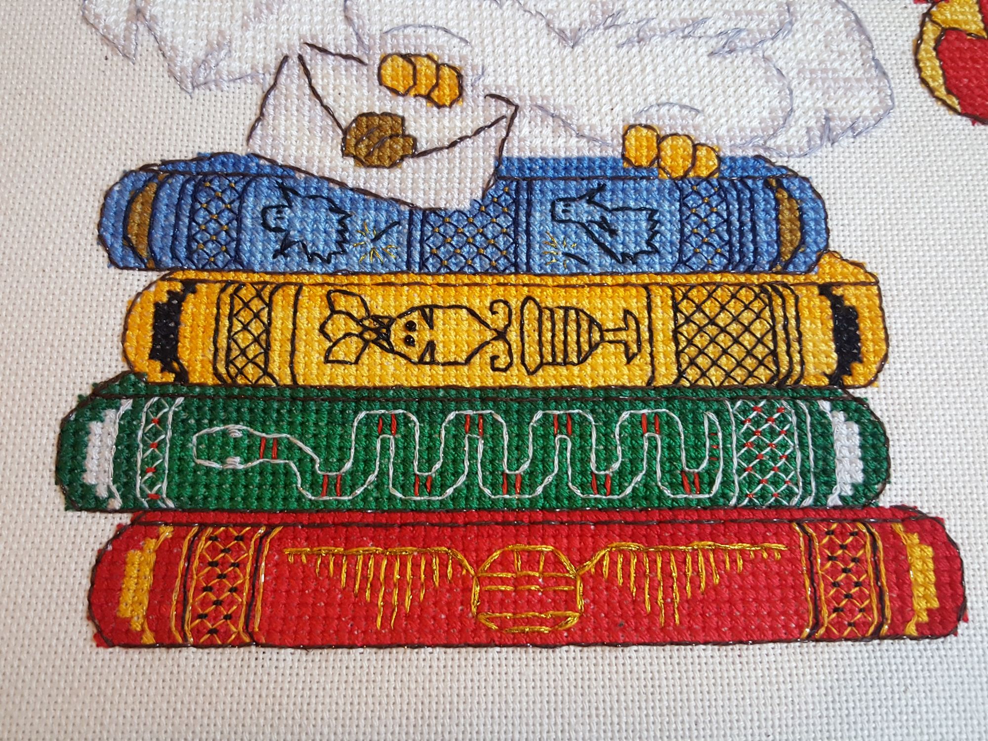 31 декабря 2019 Авантюра по ГП в картели дизайнеров в ВК Разработка Дарьи Бузыной Меня замело в минуту душевной слабости, хотя я зарекалась участвовать в авантюрах… Но эта оказалась интересной. В ключе только 3 номера цвета, остальное в формате средний/светлый/темный Х цвет. Несмотря на то, что по набору красный, желтый, синий и зеленый было сразу понятно, что будет чо-то по факультетам, всё равно было любопытно что-ж-именно-то. Продекларировано, что берите любые цвета по своему усмотрению – всё будет тип-топно при любом раскладе. По факту это не совсем так или совсем не так. Я - с высоту своего куды-девацо опыта – считаю, что следовало сообщить, что цвета должны быть из одной цветовой растяжки с интервалом в 2 оттенка. Это звучит может не очень понятно, но действительно было важно для отшива. По инструкции ты мог взять, например, любой средний и любой темный зеленый, чтобы смастерить из этого книгу. Это по инструкции, а по жизни зелёных от цвета мха сушеного до неонового салатного. А гулять тебе можно только в колорах, например, мха. Более того шаги в оттенках должны были быть одинаковые. Итого я б озвучила, что к участию допускаются владельцы полных палитр. Сова полным крестом бесценным DMC 3865 – щаз, я полукрестом отшарашила. Даже это мне встало почти в полный моток. По результату должна была быть сова, обшитая черным бэком, на книгах названия факультетов. Ну, это ж не мой метод!? Во-первых, всё отбэкано этуалями – блестиииит. Оч клёво. Книги, лапы, шарф – это не черный, а темно-коричневый этуаль. Лайв-хак! Если отбэкать этуалем, то возникает оптический эффект, который дает полное ощущение того, что весь элемент, которым он обведен, искрит. Во-вторых, меня накрыло идеей сделать книги из библиотеки Хогвартса. По различной тематике. Пыхтела, перерисовывала… И вот, что получилось! Снизу вверх: Что: Квиддич сквозь века. Выдается действительным членам квидичных команд по запросу декана факультета. Остальные ученики закупают самостоятельно. Особые отметки: отсутствуют Украшен снитчем крылатым. Золотой металлик DMC + этуаль Что: Яды, отравы и приправы. Факультативное чтение для первокурсника Слизерина. Выдается ученикам первого курса после церемонии распределения. Особые отметки: змея кусается и шипит на учеников других факультетов Как-я-это-сделал: Змея упитанная в красную полоску + этуаль Что: Учебник травологии. 5 курс Выдается рассеянным ученикам факультета Хафлпафф Особые отметки: отсутствуют Приписка: остальным факультетам не выдавать! Гриффиндор - делают бумажных драконов из страниц по драконьему корню Слизерин - используют в варке зелий зачарованную мандрагору с корешка Рейвенкло – не обращаются! При поступлении запроса задержать ученика и вызвать декана Слизерина Украшен чашей для зелий и мандрагорой. Этуаль С310 Что: Учебник по защите от темных искусств. 7 курс Выдается ученикам 7 года обучения, принятыми на продвинутый курс обучения по Защите. Особые отметки: не допускать попадания прямых солнечных лучей. Хранить в темном прохладном месте. Дементоры очень любознательны и любят читать другие книги. Рекомендованы книги из запретной секции и маггловские любовные романы. Не давать читать Донцову! Украшен дементорами (2 шт.) и волшебными палочками (2 шт.) Результатом даже немножко горжусь Не могу показать превью, т.к. оно только в виде чужих работ.