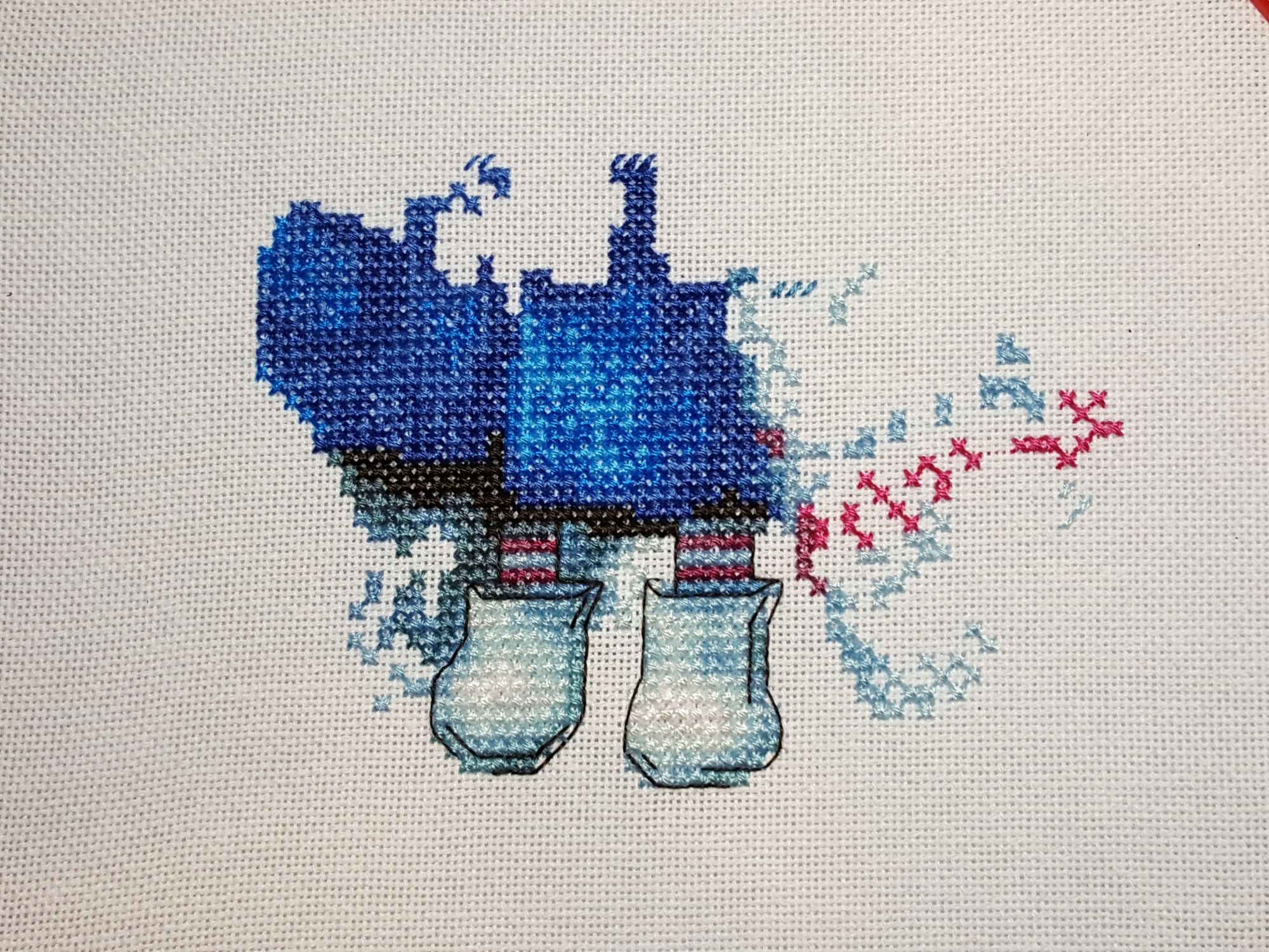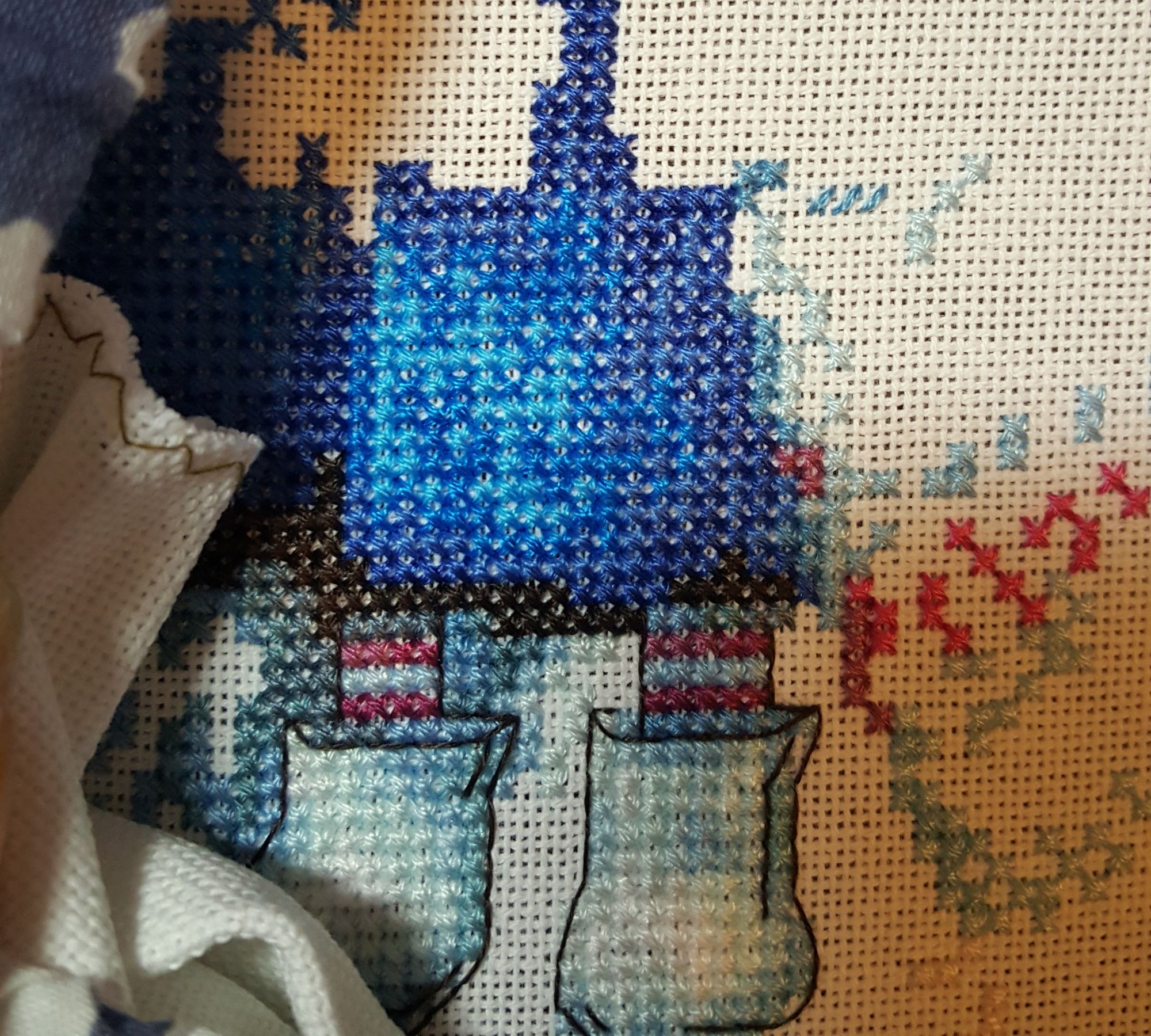 31 января 2020 Пока свежо покажу, чо натворила Пальто !Ниже кошмарные сцены склонения слова пальто по падежам – аффтор осознает ужас сего деяния и берёт на себя ответственность! В продолжение ситуёвины с непонятными пятнами меня призадумало, как жить на Марсе в чумазом пальтЕ. На последнем фото не столь остры ощущения - а по факту оно вот так было Абстрагируясь от того факта, что продавали мне одёжу цвета индиго, а на выходе это не оно, и оно получается обман, главное - Мышь принципиально другую историю приобретает. Предполагалось, что Мышь стоит в умопомрачительном индигном индюговом индюжьем пальтЕ цвета индиго (дорого-бохато). Пальто новое и прекрасное. Что же творит Luca’s??? Порядком изношенное пальто цвета индиго (не поспорю) досталось в формате соц поддержки Мышу из неблагополучной семьи. На пальто пролили голубую краску, но родителям до лампочки. Это же на глазах разворачивается трагедь – Шарик земной, куда несёшься ты?! + Остановите - Пете надо выйти. Имею привычку доверять производителям наборов на 100% больше, чем свободным дизайнерам. Мне подумалось, что производитель проводил контрольный отшив, и ему виднее. Он же проводил отшив? Контрольный?? Ошибки исправлял, цвета пересматривал, да… Ведь не мог не провести! Я так от себя, не имея никаких фактов, кроме собственных ощущений, заявлю, что дизайн не отшивался вообще. Ни разу. Дизайн создан в программе с использованием цветовой палитры по умолчанию, без поправки на искажение цвета. Обложка вводит в заблуждение потребителя, итоговый продукт не отвечает заявленным характеристикам = недобросовестный продавец. Вношу Luca’s в черный список производителей. Точнее завожу список и вношу. Будет у меня первым. Это я отвлеклась. По факту разница в цвете, настолько сильная, что её нельзя принять ни за отлив, ни за «фактурность». Это цвета индиго, которые внезапно обрываются (не вливаются!) в ярко лазурный. Я честно приняла решение оценить готовую работу, по итогам анализа решить, как жить дальше. Приняла решение и сразу отшила полу пальто справа, протянув цвета блендами – взяла ближний оттенок индиго и последовательно зацепила друг за друга «нисходящие» цвета. И прям отлично встало! Это не индиго-пальто, но уже весьма достойное лазурное. Выпорола безобразие спереди и перешила блендами. Топаем дале Мышь был симпатичного цвета, но непохожего на меня... (я сравниваю цвет себя и мыши и это не лечится) Не повторять – выполнено отчаянным потоптанцем! Переформатировать схему и переподбирать цвета под более темный мех – это сумашествие. И я не собиралась, осознавая, что шерсть животных мне не одолеть, но после пальто меня обуяло… Меня всегда несёт в пропасть, если я делаю крохотный шажок в сторону... По-хорошему, надо брать цвета исходного дизайна и подбирать под каждый тот же оттенок, но другого цвета, не нарушая предложенной логики. Это по-хорошему, а мне же было (и есть) лень + ниток анкор у меня нет, ДМС далеко не вся палитра, с ПНК их мешать не вариант… Итого мех сделан из того, что было предложено по схеме, но у меня путь вниз (в осветление) начался с черного, а не с темно-коричневого, далее где-то были замешаны бленды, через 2 цвета я перескочила, 1 ДМС в бленд докинула, 2 значка отшила одним цветом, а по результату ещё сверху слегка причесала кое-где... Я сама уже не скажу, КАК я дошла до результата, потому что это