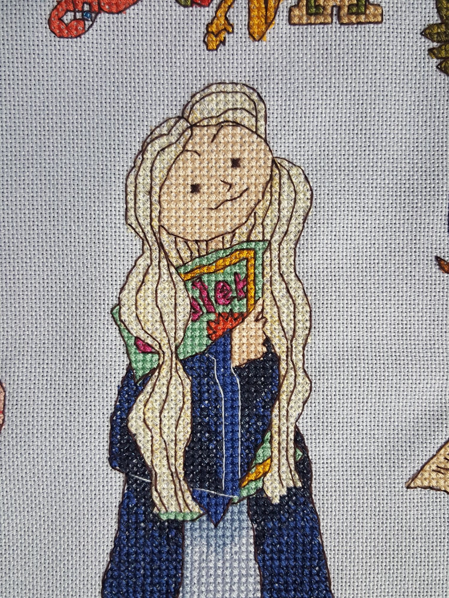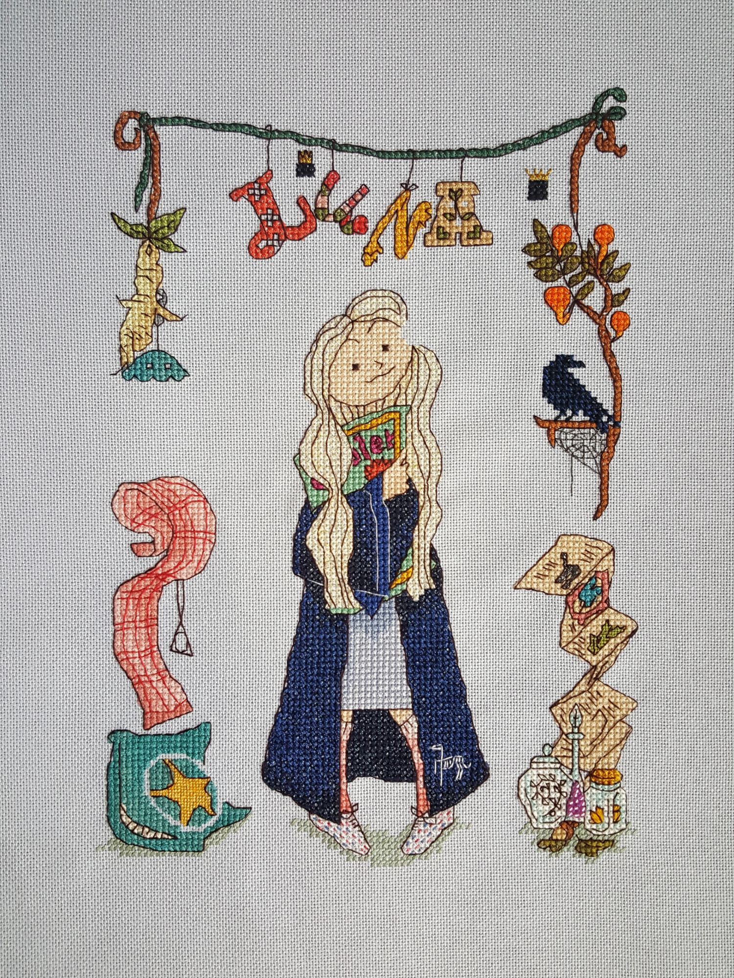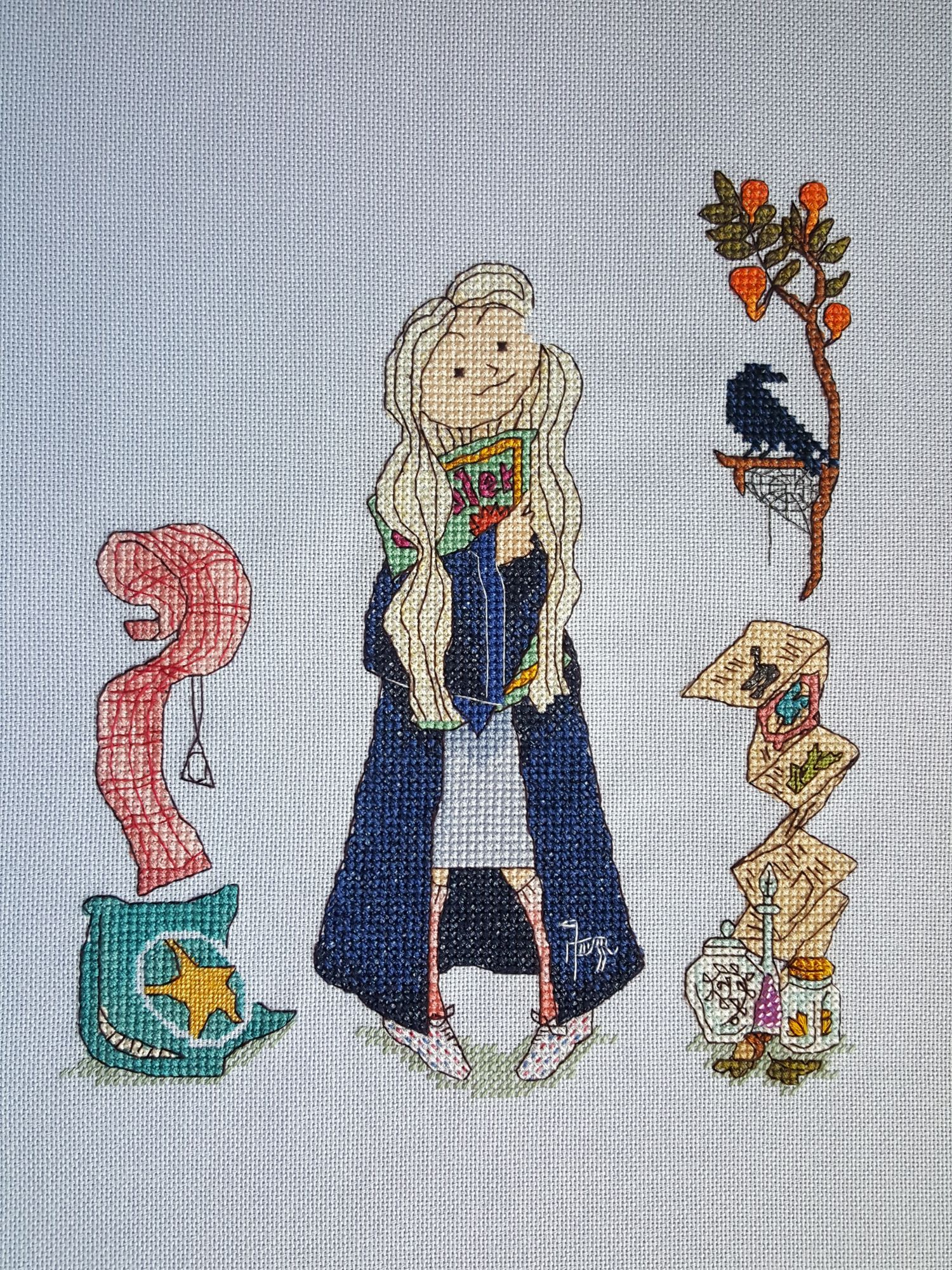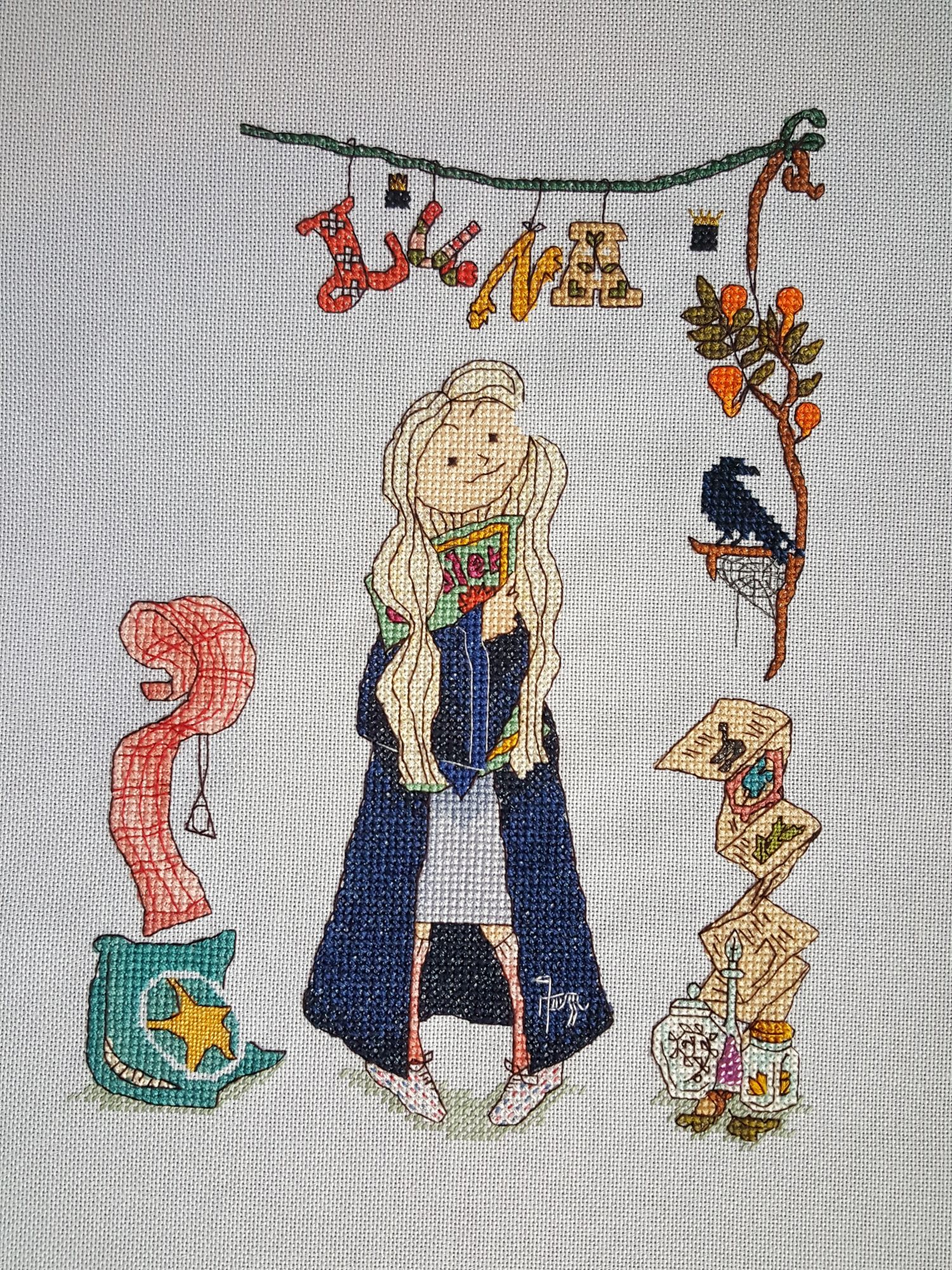 31 марта 2020 Луна от Кати Мешковой от меня 10 из 15 - АЩЕЕЕЕ Rosalia Radosti -> Катя Мешкова -> Я Итак, перво-наперво, Луна, а не простигосподиктожтакпридумал Полумна. Меня это знатно покоробило при прочтении книги. В те зеленые времена мне был доступен только русский вариант… И не было никакой возможности моей нежной психике избежать травмы. До сих пор не могу понять и простить эту практику перевода имен в произведениях в этом не нуждающихся. Вот «Полумна» это к «Злодиусу Злею», «Снеггу», «Долгопупсу», «Букле» и прочая-прочая. Это видимо, чтоб дети сразу понимали, кто-есть-кто. Правда, Буклю взяли с потолка… Ну, да ладно. Букля – это мило. Человеки, они когда маленькие, они все поголовно умственно отсталые – без конкретного указания никуды. Я вот думаю надо было Сириуса обозвать Звездиусом Чернособаком, Ремуса – Волкусом, Гарри – Горшоттером или Генри Морганом (а чо?! Я так вижу), Рона – Нищлизем и прочая-прочая. А как без этого мне понять, что за персонаж?!!! Итого я считаю, что в переводе не имя, а оскорбление. Это унизительное прозвище. Л-У-Н-А! И с головой у неё многим лучше, чем у большинства. Как я провёл это! Ахтунг! Буйство потоптанства и многабукофф. Поэтому всё убираю - берегите психику, сестра таланта мне не знакома. Скрытый текст Как отшивалось – против часовой стрелки НЕ В ГАЕЧКУ! В гаечку всё будет в конце Подушка Хвостики и внутренний круг – бисер золотистый 15 и 10 Звезда – петитом, бленд из золотистого и этуаля. Шарф С офигенными помпонами. Бисерины-бусины сумашедшего эээ… розово-малиново-незнаюкакого цвета. Я не оч сильна в оттенках. Ботинки Были по дизайну справа, но возвращены владелице. Очередная моя моральная травма в книге. Меня ужаснула эта сцена, где у неё утащили обувь… При мне никакого насилия! Особенно морального!! Ботинки – этуаль белый, крапинки этуали тож. Были остроносы, но я им носы укоротила. Гольфы Долго меня мотало идеей сделать разные носки, даже хотела сделать их разными по длине… Но здесь встал чисто технический фактор: они шириной в 1 крест справа, в 2 – слева. Здесь при смене длины будет просто ломаться картинка на уровне восприятия, но понять сразу, что не так будет невозможно. Оно плохо. Идея с разными по цвету – туда же к технике, но ещё мне вспомнилась Пеппи Длинный чулок… Да ну. Тоже не очень позитивные у меня ощущения от этого персонажа, поэтому просто меланж. Точнее не просто – тут надо каждую «полоску» отдельно вышивать и активно «протягивать» нитку до следующего цветового сегмента. Итого на изнанке не ковёр, а шкура мамонта. Гольфы такие вкусно-розово-полосатые и с шарфом слева по цвету перекликаются. Мантия из коричневой в темно-синию. Под цвет факультета Рейвенкло или Когтевран, кому как больше нравится. Мне всё больше нравится в английской транскрипции – ну, это я уже расписала. Она отшита темно-синим этуалем (С823) и блендом из него же с обычным синим. Итого вся мантия искрит. Мантии было много, поэтому мне захотелось на неё чего-нибудь накидать. Итого по ней гуляет фестрал. Блок справа снизу. Зелье – бисер, кристаллы гладью из этуаля (плохо видно, но немного блестит), растение в банке собиралась дополнить бисером, но оно получилось таким засушенным и симпатичным, что не стала добавлять (да! Я могу не только втыкать бисер, но и не втыкать!!)) Растение на пергаменте – петит этуаль. Блестит. Неизвестное животное на перг