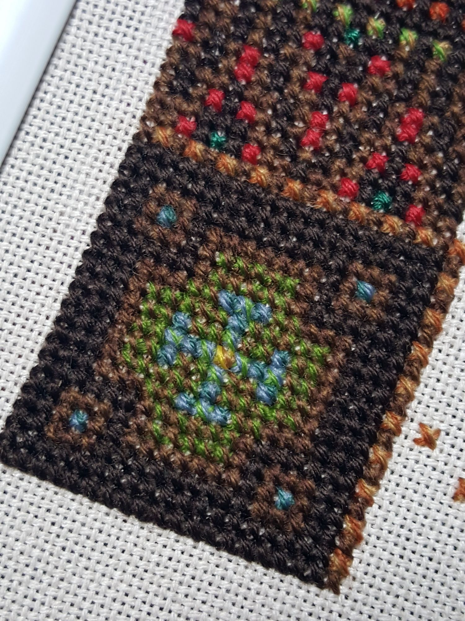 4 мая 2020 Пока раскопалось немного сил и времени, немного попишу. СТРАСТИ ПО КОВРИЛЕ Коврила был капризным мужем, Коврила Юлю истязал. Точнее с Коврилой всё в порядке, но ему досталась я в слезах-соплях любви. Ему-то понятно ничего для бытия не нужно, но я ему уже: · пошила чудесные труселя · купила Зею · купила лампу Viking VKG01 · пошила крутую накидушку Напишу по пунктам – могёт быть кому полезно Зея - внезапно и незапланированно на ФР, продавец тут https://vk.com/yavyshivayushop Ощущения меня, кто только пяльцы и случалось давно и недолго на раме (не зашло): - Ух, крутая штуковина! - металлическая, очень респектабельно выглядит. Это не промышленные тиски, которые страшно видеть в приличном доме (у меня не оно, но всё равно страшно) - крути как хошь – раскорячится по твоему желанию - крепится к столешнице, а моё привычное место на кухне к красотке не цепляемо, поэтому мы с Коврилой переехали в комнату к столу компьютерному, куда цепляемо. Из этого факта вылезла покупка лампы Viking VKG01. У меня уже 6 лет настольная лампа с лупой Daylight, арт D23020. На правах неоплачиваемой мне рекламы! Я без неё никуда. И ночью, и днём, и без дождя за окном – всё с ней. Одна из самых ценных покупок и обязательный инструмент. Она незаменимая и массивная – её не потаскаешь. А совсем переезжать из-за Коврилы я не собиралась. Но и без светы никуда. Качество моих очей таково, что без доп.света я не могу даже, когда солнце в зените – здесь я слаб. И всем говорю в вышивке первым делом ПОКУПКА ЛАМПЫ, дальше опционально. Даже не думайте экономить! Итого я пошукала и заказала Викинг. Он бестеневой. Оооо! Он огромный и крутой!!! Стоит, кстати, дешевле Daylight. Я, когда его распаковала, оторопела. А когда взграмоздила на стол аще офигела. Накидушка Я узрела бесплатный дизайн Посиделки от Анны Петуновой. Через минуту я метнулась копать ткань, через 15 минут ткань была накопана, через 20 – уже крестю… Сижу, язык на плечо, подвывая от восторга, колуплю… И тут здравая мысль – оно мне куда? Ответ – никуда. По правде сказать, мне вся вышивка никуда, но здесь меня напрягло. И тут пришло на помощь моё прекрасное Коврило. Трусы у нас есть, а защиты от шуму-пыли нет. Накидушка! Да! Вот, чо пошил, на волне энтузазизма. P.S. И я нигде не фотограф - увы((( P.P.S. Цвета в посиделках заменила, чтобы они чуть лучше монтировались с цветом ткани и тесёмок Рост Коврилы на текущий момент. С ним всё хорошо, со мной сложно. Я с ним могу только в минуты душевного равновесия, но не тот период (не только корона). Меня дико пропирает от орнамента. И он рос-рос и дорос до столба. Тотемного столба племени пушистых Ковриличей. Ковриличи – племя высокой культуры быта, поэтому ТОЛЬКО ЧЕЛОВЕЧЕСКИЕ ЖЕРТВЫ! Жертва меня уже там валяется у подножия. У меня даже была идея столб сверху закрыть и черепков-бошек-скелетов ему снизу накидать и на этом завершить. Осподя! Что мне в голову лезет! Это ж натюрморт с цветами. Столб прекрасен. В ём всего 2 чистых цвета: красный и темно-коричневый. Остальные бленды. И это нереально круто. У меня была идея отшить рамку Ковриле бисером, но как узрела вакхоналию блендов… поняла, что в бисер мне это не перелопатить. Пусть будет у меня весь волосатый. Но я мечтаю, что кто-нибудь, кто чувствует бисер и умеет его подбирать, отошьет рамку в бисере полностью или хотя бы частично. irchick2308, Эйри, Хозяйка смешных зверей и 19 других сказали спасибо Поделить