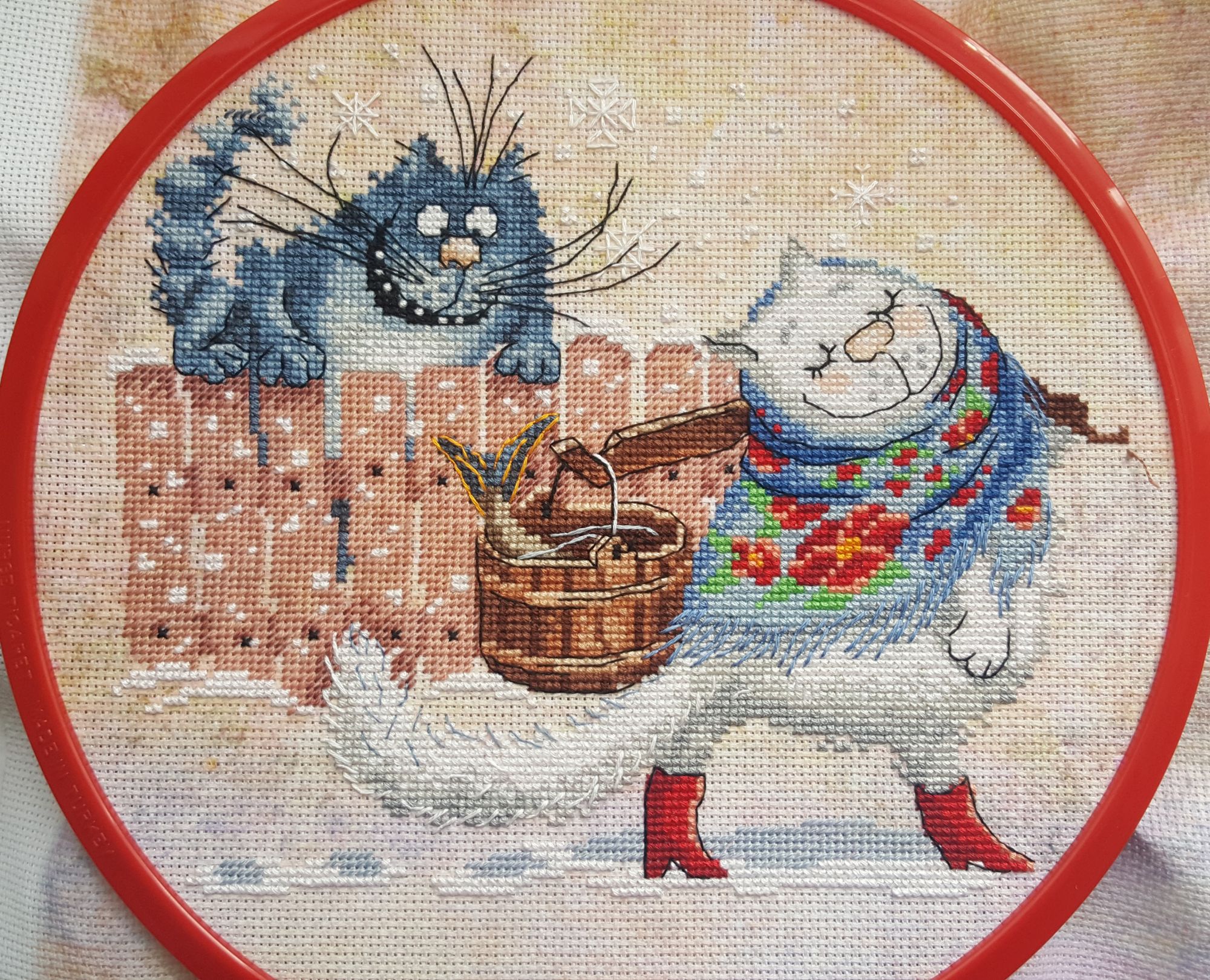 27 марта 2020 Пуаро Бесплатная схема Решетняк Алены. Ну, я фанатка – да. Или лучше сказать преданная обожательница. Именно Пуаро в неподражаемом исполнении блистательного Дэвида Суше. Каждый год у меня есть период, когда я, беру вышивку и мурча от удовольствия, пересматриваю. Эта музыка… Дубляж замечательный, но иногда и в оригинале. Особенно мне нравятся эти его французские словечки мур-мур. Есть разработки Пуаро более «серьёзные», но для меня только эта передаёт образ с ювелирной точностью. И эта цитата, которая, пожалуй, самая запоминающаяся и наиболее часто коммерциализируемая. В моём русском мозгу она воспринимается именно на английском и ломается при переводе – её нельзя переводить просто: «Нет, мадам, Пуаро никогда не ошибается». Я чувствую, что «никогда не не прав» ближе по ощущениям, но всё равно не то. Основа Bellana 20 ct, отшив через одну нить плетения. Моё нечаянное открытие – я поленилась кромсать линду и лугану, а остатки белланы подошли. Итого оч мне понравилось таким макаром штопать. Просветов нет вообще. А это для таких дизайнов очень важно (для остальных мне очень НЕважно). Покажу, как оно поближе(НЕ В ГАЙКУ) Акелла в сотый раз промахнулся с предварительной оценкой масштаба работы – я почему-то решила, что это на пару дней… АГА! Щаз! Это 186*192 в крестах, итоговый результат 23*25 см. на 20 каунте. На 14м бы встал в 34*35 см. Ну, и месяц я его крестила... И когда я начала прям крякнула – было скучно и дико муторно. Только я стала глаз свой к лонгдогам прикладывать, а тут такая несостыковка. Но я ж не бросаю, нет-нет. Тем более Пуаро. И вштопалась. Особенно хорошо под сериалы – их даже можно смотреть, а не слушать (и не слышать). Результат чрезвычайно впечатляющий! Чайник для флага ФР Тема напомню – чай-кофе-сладости. Ой, меня натурально прёт от всякого такого. Особенно от семплеров, которых мульон с телегой. Но вышивать для себя чот уже не хочется. А вышивать в принципе моя хотеть-хотеть! Итого сошлось у нас с флагом. Чайник с пейзажем Не знаю чей дизайн, нашла на просторах. Оно пиратство и так делать нельзя, но раз я это отдам с концами, то сам себя прощаю. Ну, клёвый чайник. Яркий такой, позитивный. Ступенкобэк – милота-милота во все поля. Мож ещё чего отошью для флага – у меня этого кофейночайного гуталину завались! nata-g, ЕленаМ, irchick2308 и 21 других сказали спасибо Поделиться сообщением Ссылка на сообщение