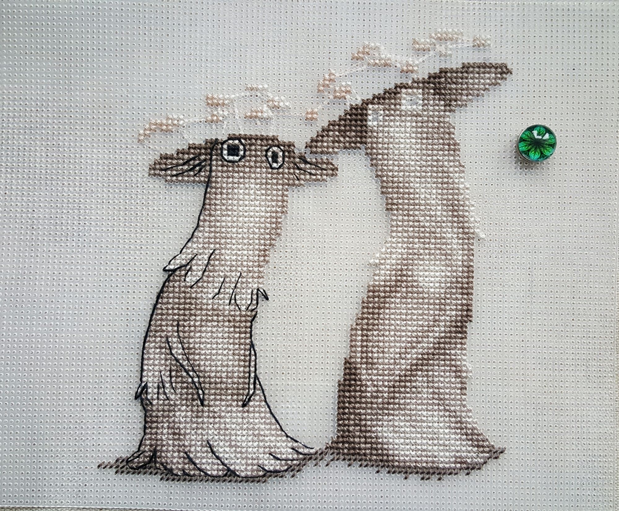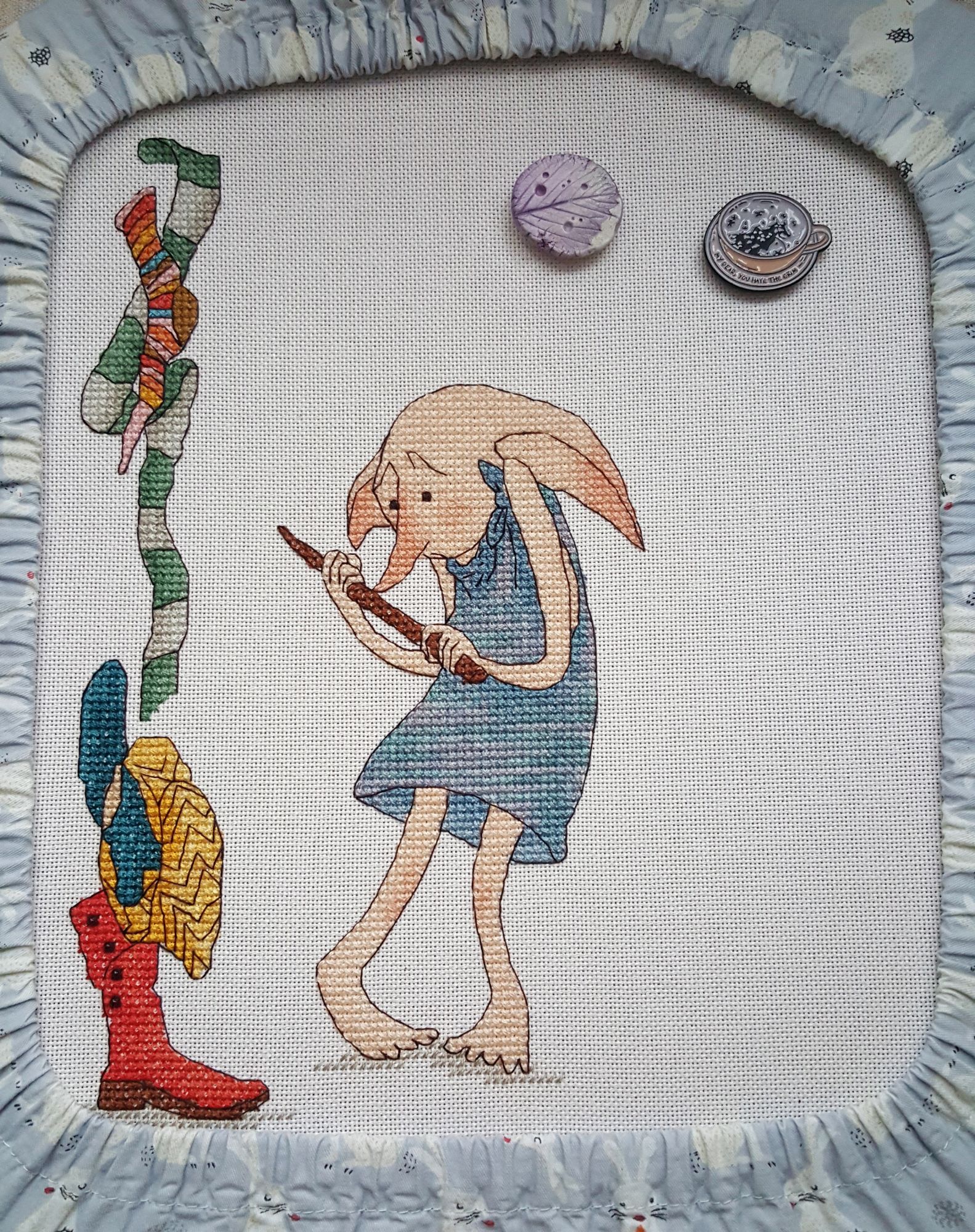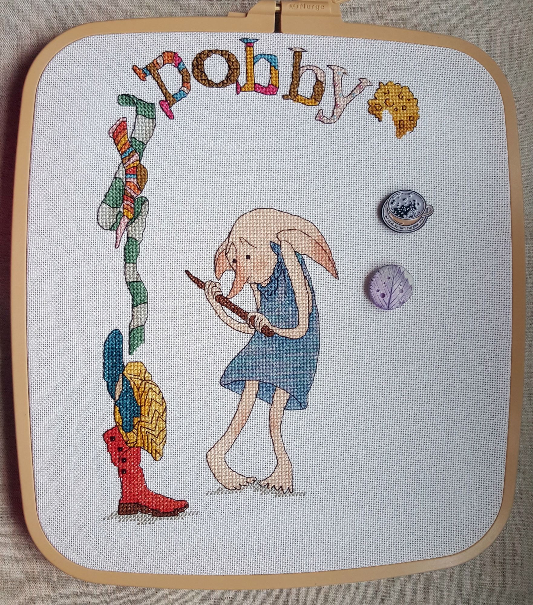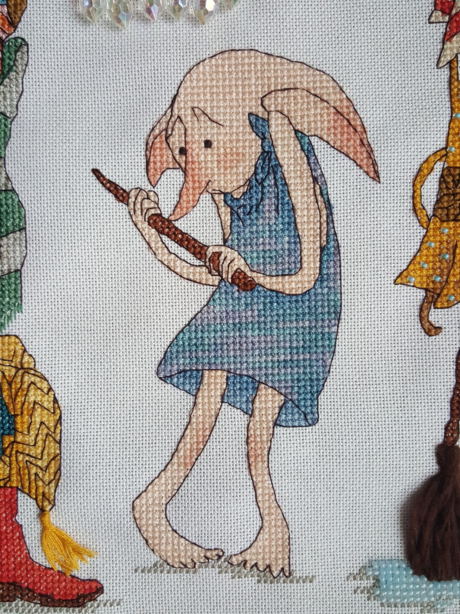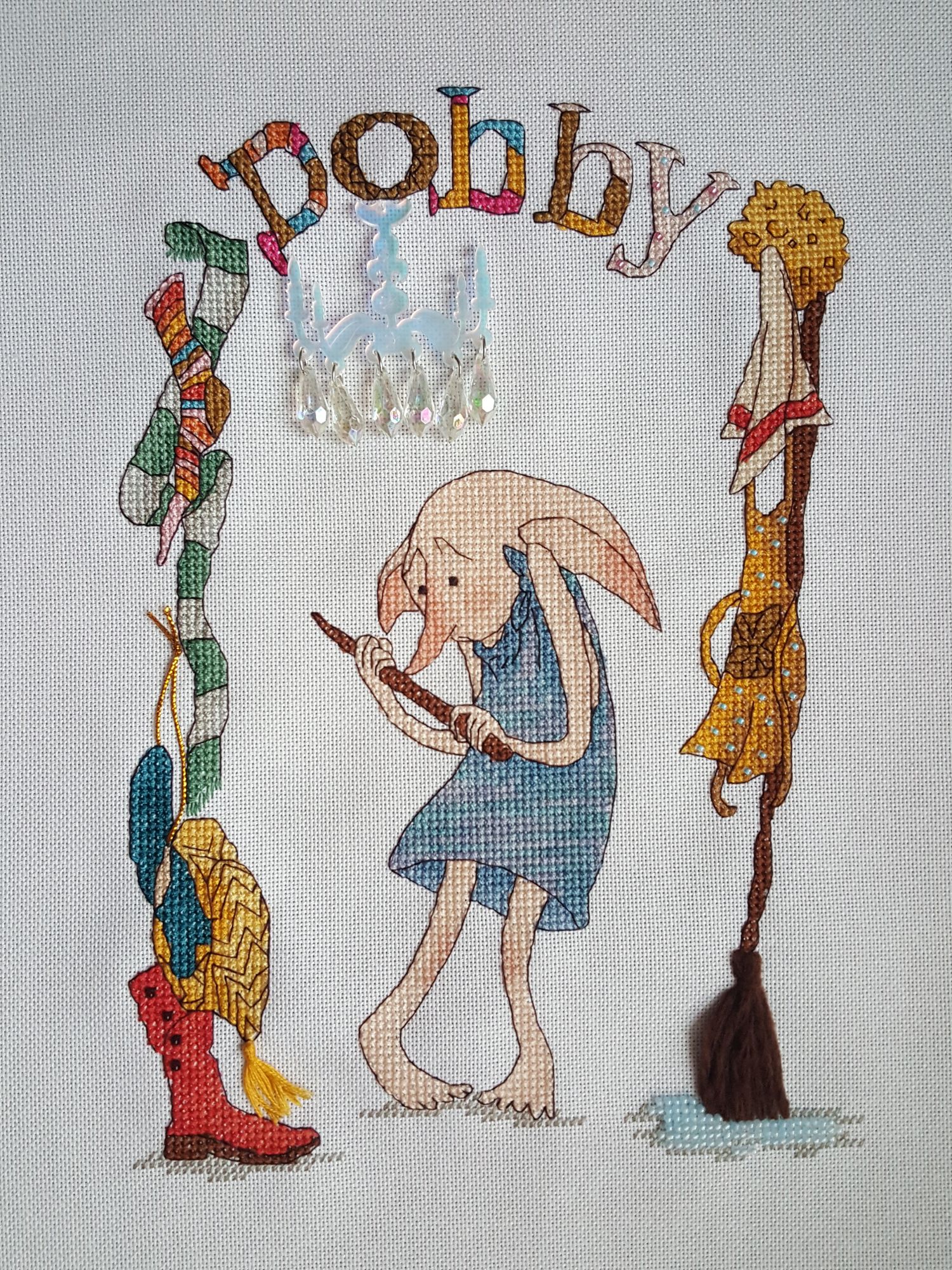 8 января 2022 Готофф №5 самый ТИТАНИЧЕСКИЙ финиш года Добби от Кати Мешковой от меня 11 из 15 - УЖЕ! Rosalia Radosti -> Катя Мешкова -> Я Добби я не собиралась покупать. Не нравился мне он и усё тут. Скучный какой-то… Но купив все схемы в серии, я его захватила уже по инерции. Захватила и начала гипнотизировать – а чо у тебя тут есть такого, чтобы мне было интересно тебя открестить?? И я узрела ЕЁ! ЛЮСТРУ!! Страдания по люстре в многабукафф Скрытый текст Я сразу поняла – её надо как-то так по-особому замесить! И воодушевившись сверх всякой меры – я начала фантазировать, КАК мне эту люстру скастряпать. И я искала возможности для того, чтобы изобразить люстру с даты покупки… с 2017… ЧЕТЫРЕ года... И вот я придумала, отбросив идеи с металликом, этуалями, шнурами, бисером/стеклярусом, применить канитель (я узнала, что это такое как раз в процессе дум над люстрой)). Идея казалась гениальной, пока она не подошла к исполнению… А я даже не стала пытаться – мне хватило просмотра мастер-класса, где прозвучало «аккуратно», «небольшие кусочки», «не спеша» и «потренируйтесь». НАФИГ-НАФИГ. Я могу неделями распускать то, что отшито за месяц. Я могу перешивать одно и то же 5 раз разными цветами, пока не добьюсь удовлетворительного результата. Я могу на полностью готовом дизайне, убранном на долго хранение, перешить бэк/крестики, просто потому что мне кажется «тут как-то криво вышло». НО Я НЕ МОГУ (И НЕ БУДУ) тренироваться. Мне не стоило смотреть МК – тогда возможно я б на поле боя разобралась, но мне уже предметно показали, какая это канитель эта канитель… И я пригорюнилась… А я уже отшила всю левую часть дизайна… И на этом всё встало. Не могу продолжать и всё тут – не понимаю, что делать с главным элементом… Промелькнула мысль в крестике металликами/этуалями… Но это уже переваренная идея… Совсем отчаявшись, я признала свою беспомощность и согласилась с тем, что люстру не буду делать совсем… И, как это всегда бывает, в тот же момент, сей же миг, как я признала своё полное поражение, мне пришла в голову мысль – Aliexpress, на нём есть всё! И я нашла то, что нужно!! И смогла вернуться к отшиву - хе-хей!!! Люстра - это серьга по праву рождения, с перламутровым покрытием. Она меняет цвет в зависимости от освещения, при дневном свете абсолютно прозрачная. Подвески блестят как сумасшедшие. Одежа Добби Мне категорически не нравилась опрятность его простыни. Да, по ключу серым цветом, но это просто простыня из ткани серого цвета, а никак не грязная. Любой «чистый» цвет, даёт ощущение «чистого» объекта. А мне хотелось потрепанности и потасканности. И я сразу подумала про нитки ручного окрашивания, которые идеально потасканные. Но в них есть проблема – если вышить всю дерюжку такой нитью, то она выведет весь объект в абсолютную плоскость. На простыне у Добби же и изнаночная сторона, и складки, и узел… Возможно дале будет общеизвестный способ, но я додумалась до этого сама Лайфхак! Я взяла нить ручного окрашивания (ручная), и подобрала к ней самый светлый оттенок из её «растяжки» и на 1 тон темнее к синему. Всю изнанку отшила по схеме, задействовав чистые цвета. На лицевой части: - самый «тёмный» значок = тёмный чистый цвет - «чуть светлее» значок = тёмный чистый + ручная нить - «светлый значок» = ручная нить И вауля! И потаскано, и объём не потерялся. Не передать в буквах, КАК мне нравится то, что получилось. 