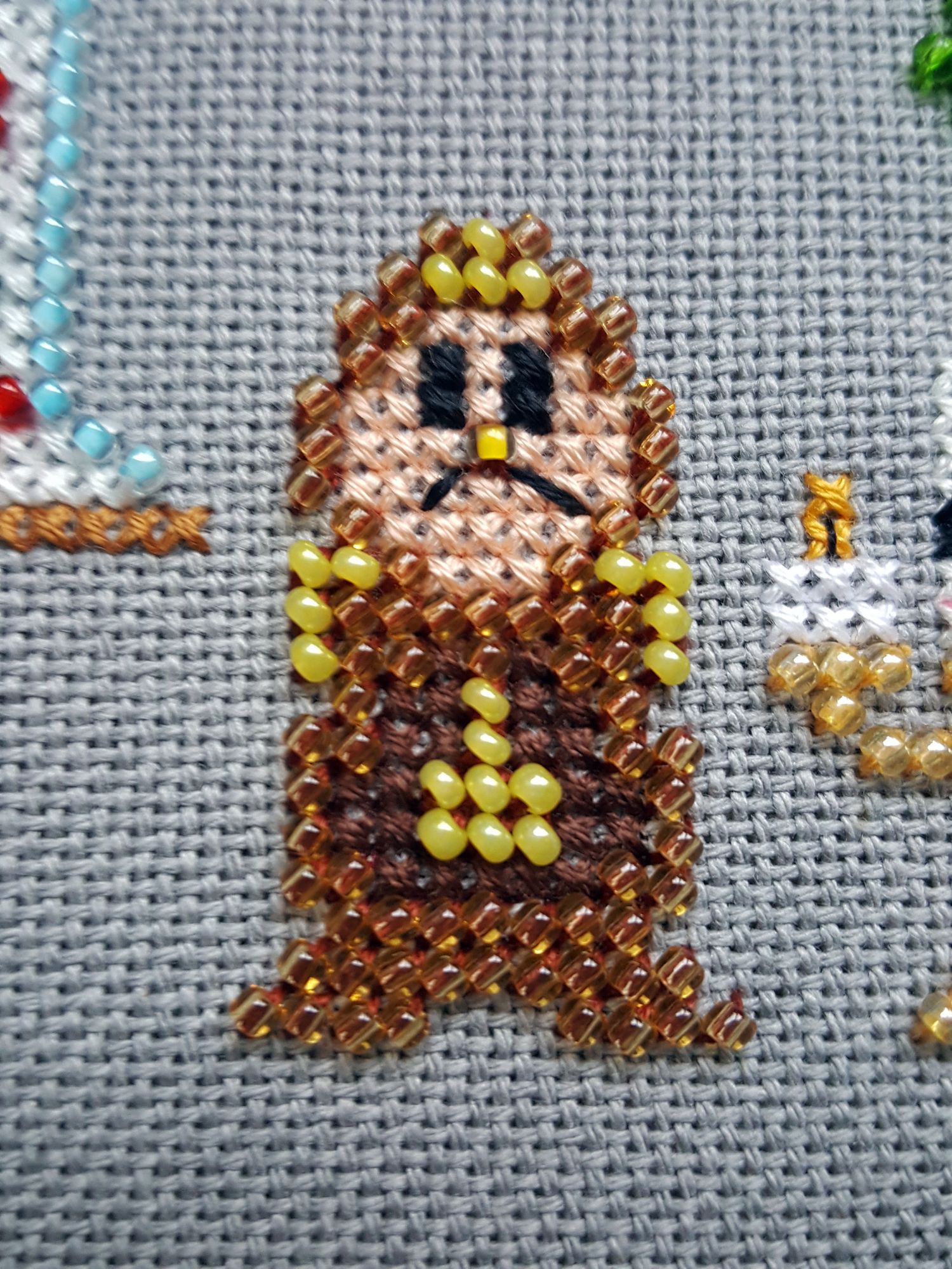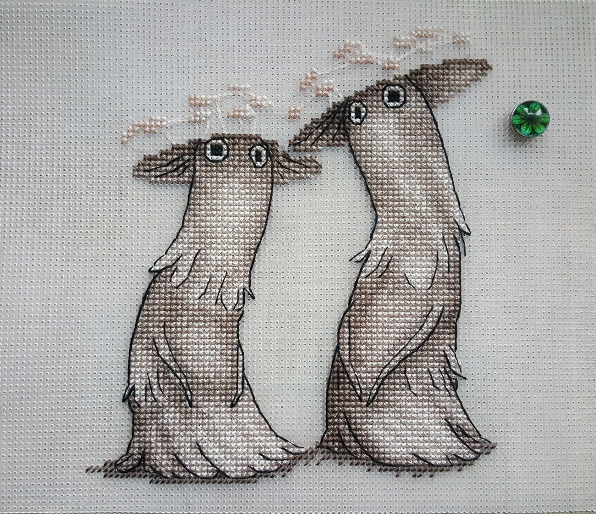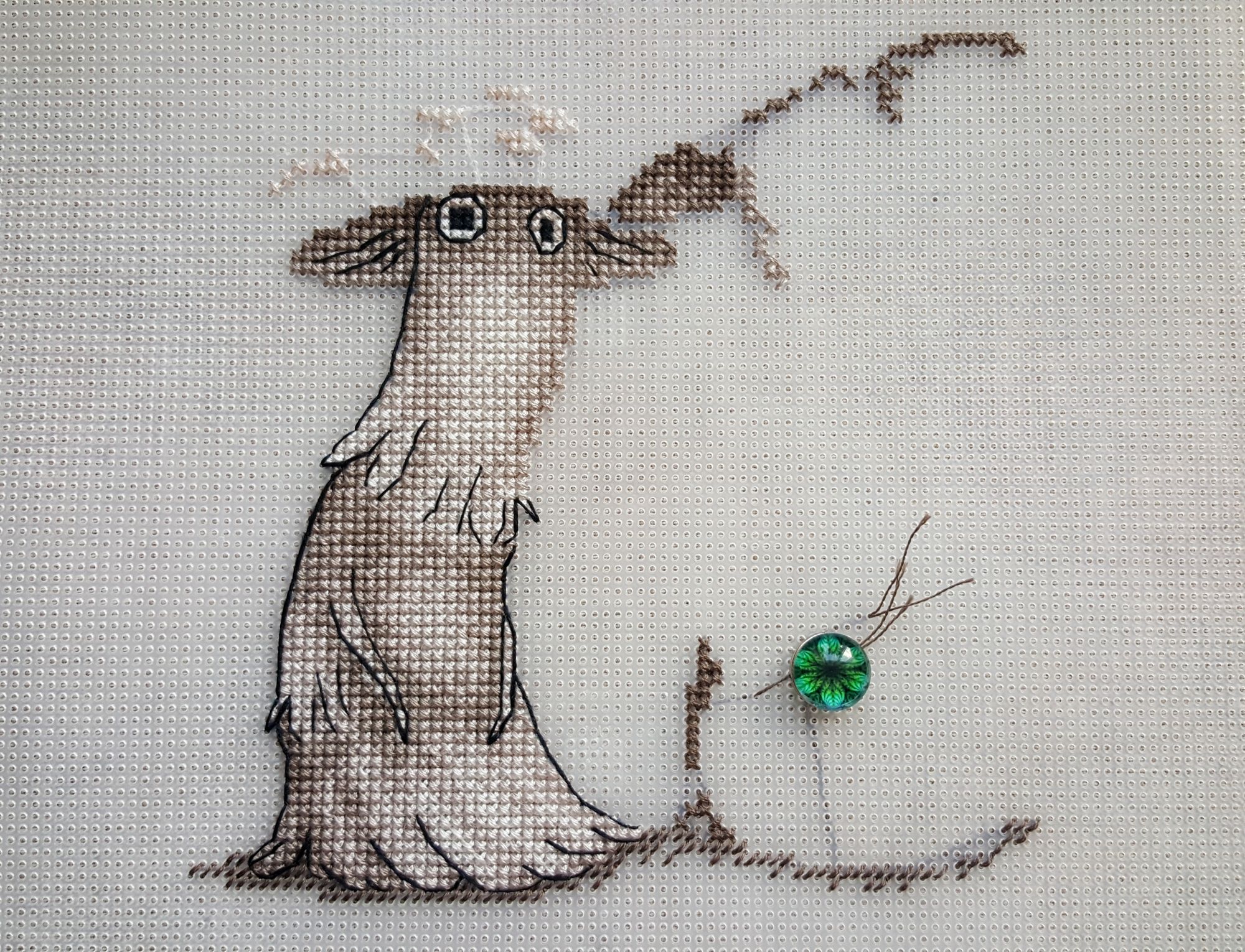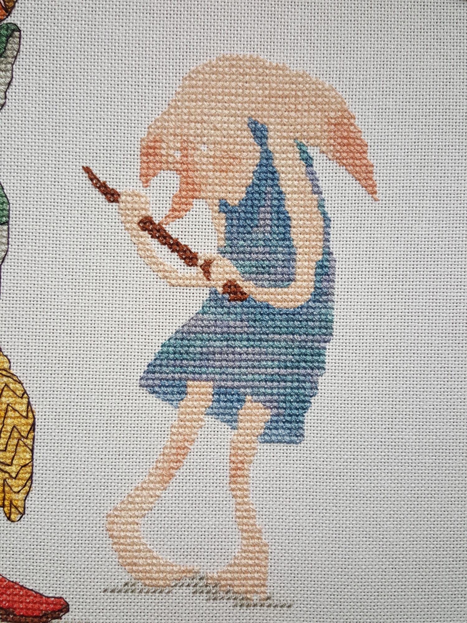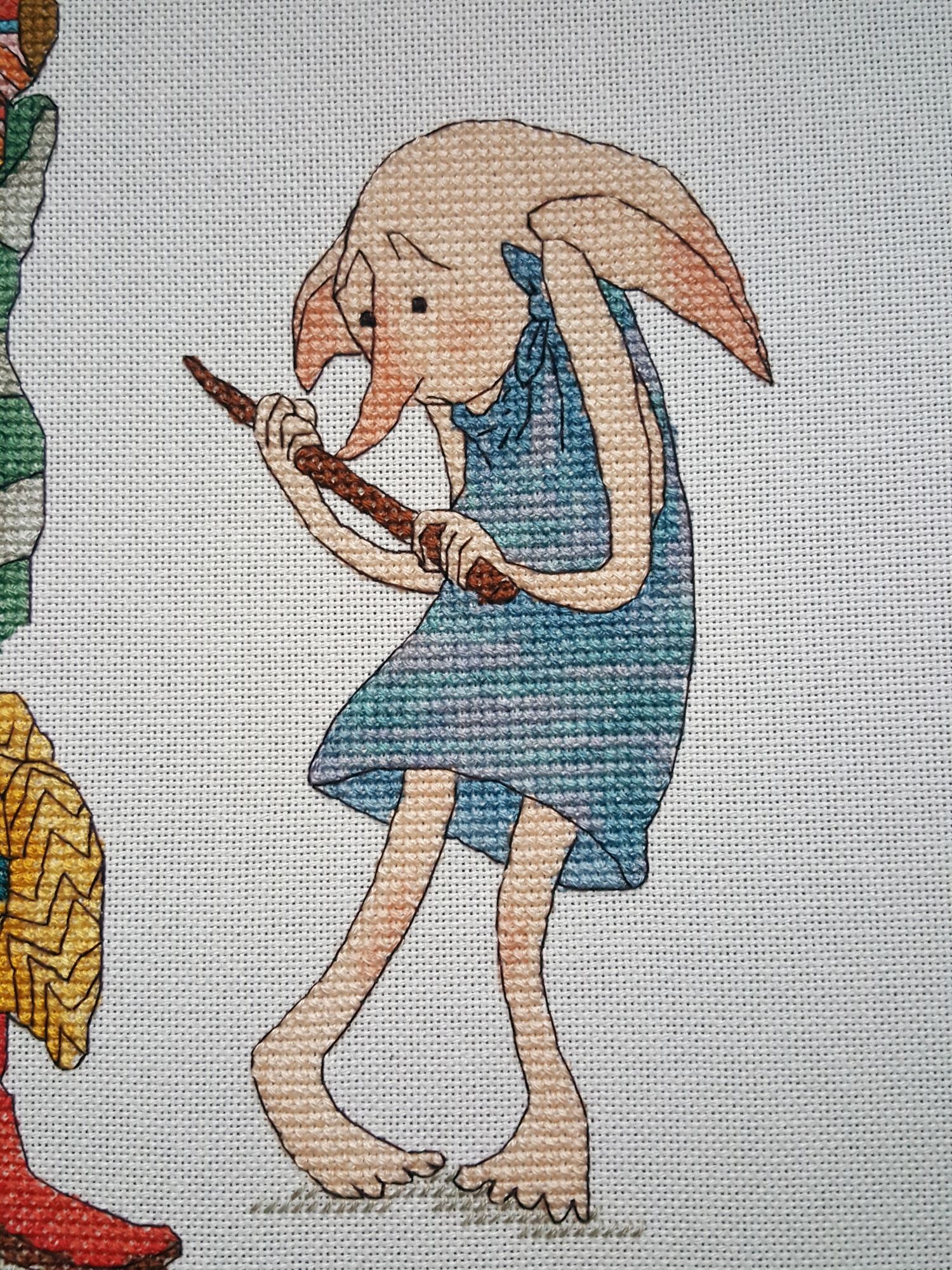 8 января 2022 Готофф №5 самый ТИТАНИЧЕСКИЙ финиш года Добби от Кати Мешковой от меня 11 из 15 - УЖЕ! Rosalia Radosti -> Катя Мешкова -> Я Добби я не собиралась покупать. Не нравился мне он и усё тут. Скучный какой-то… Но купив все схемы в серии, я его захватила уже по инерции. Захватила и начала гипнотизировать – а чо у тебя тут есть такого, чтобы мне было интересно тебя открестить?? И я узрела ЕЁ! ЛЮСТРУ!! Страдания по люстре в многабукафф Скрытый текст Я сразу поняла – её надо как-то так по-особому замесить! И воодушевившись сверх всякой меры – я начала фантазировать, КАК мне эту люстру скастряпать. И я искала возможности для того, чтобы изобразить люстру с даты покупки… с 2017… ЧЕТЫРЕ года... И вот я придумала, отбросив идеи с металликом, этуалями, шнурами, бисером/стеклярусом, применить канитель (я узнала, что это такое как раз в процессе дум над люстрой)). Идея казалась гениальной, пока она не подошла к исполнению… А я даже не стала пытаться – мне хватило просмотра мастер-класса, где прозвучало «аккуратно», «небольшие кусочки», «не спеша» и «потренируйтесь». НАФИГ-НАФИГ. Я могу неделями распускать то, что отшито за месяц. Я могу перешивать одно и то же 5 раз разными цветами, пока не добьюсь удовлетворительного результата. Я могу на полностью готовом дизайне, убранном на долго хранение, перешить бэк/крестики, просто потому что мне кажется «тут как-то криво вышло». НО Я НЕ МОГУ (И НЕ БУДУ) тренироваться. Мне не стоило смотреть МК – тогда возможно я б на поле боя разобралась, но мне уже предметно показали, какая это канитель эта канитель… И я пригорюнилась… А я уже отшила всю левую часть дизайна… И на этом всё встало. Не могу продолжать и всё тут – не понимаю, что делать с главным элементом… Промелькнула мысль в крестике металликами/этуалями… Но это уже переваренная идея… Совсем отчаявшись, я признала свою беспомощность и согласилась с тем, что люстру не буду делать совсем… И, как это всегда бывает, в тот же момент, сей же миг, как я признала своё полное поражение, мне пришла в голову мысль – Aliexpress, на нём есть всё! И я нашла то, что нужно!! И смогла вернуться к отшиву - хе-хей!!! Люстра - это серьга по праву рождения, с перламутровым покрытием. Она меняет цвет в зависимости от освещения, при дневном свете абсолютно прозрачная. Подвески блестят как сумасшедшие. Одежа Добби Мне категорически не нравилась опрятность его простыни. Да, по ключу серым цветом, но это просто простыня из ткани серого цвета, а никак не грязная. Любой «чистый» цвет, даёт ощущение «чистого» объекта. А мне хотелось потрепанности и потасканности. И я сразу подумала про нитки ручного окрашивания, которые идеально потасканные. Но в них есть проблема – если вышить всю дерюжку такой нитью, то она выведет весь объект в абсолютную плоскость. На простыне у Добби же и изнаночная сторона, и складки, и узел… Возможно дале будет общеизвестный способ, но я додумалась до этого сама Лайфхак! Я взяла нить ручного окрашивания (ручная), и подобрала к ней самый светлый оттенок из её «растяжки» и на 1 тон темнее к синему. Всю изнанку отшила по схеме, задействовав чистые цвета. На лицевой части: - самый «тёмный» значок = тёмный чистый цвет - «чуть светлее» значок = тёмный чистый + ручная нить - «светлый значок» = ручная нить И вауля! И потаскано, и объём не потерялся. Не передать в буквах, КАК мне нравится то, что получилось. 