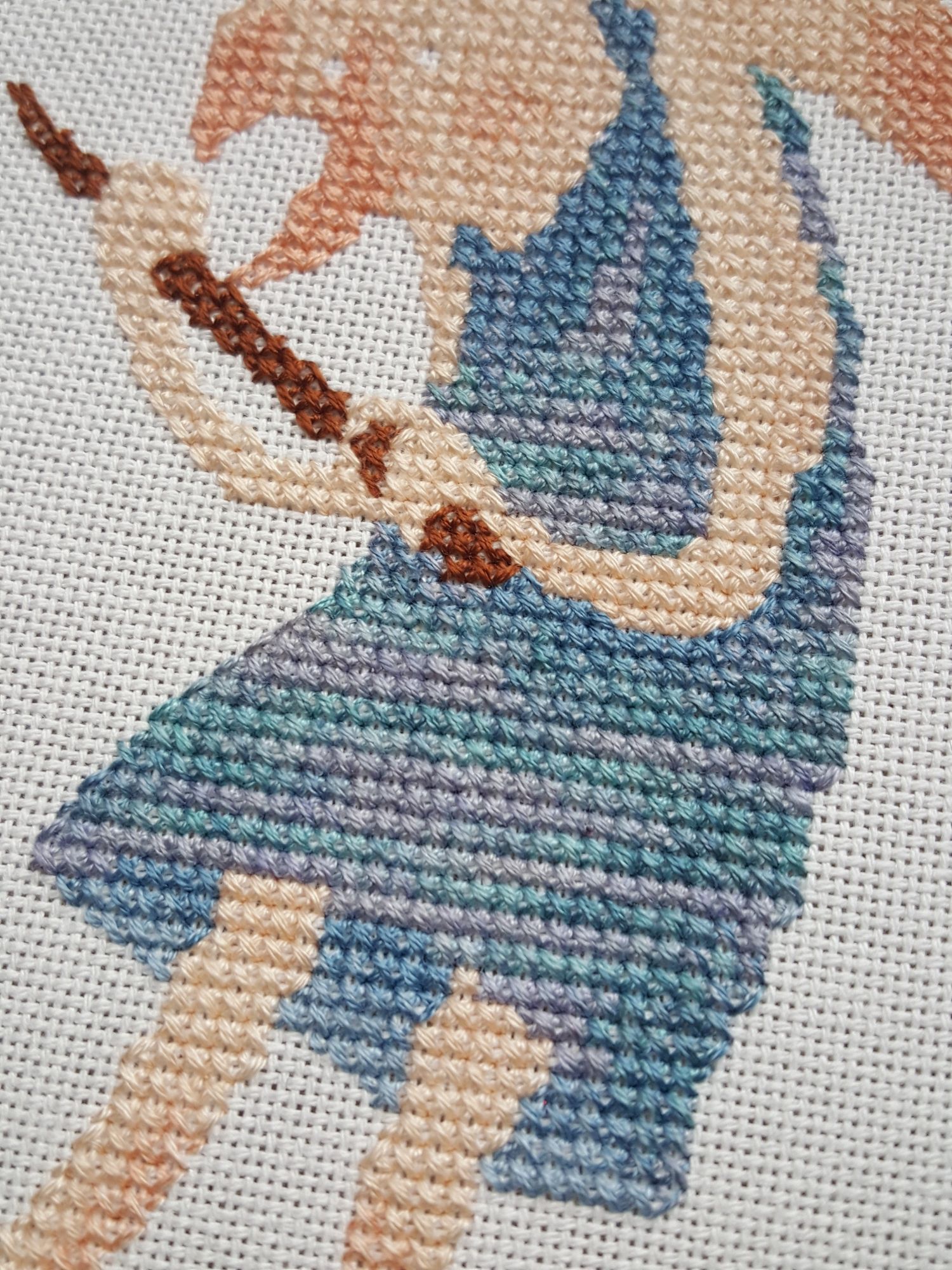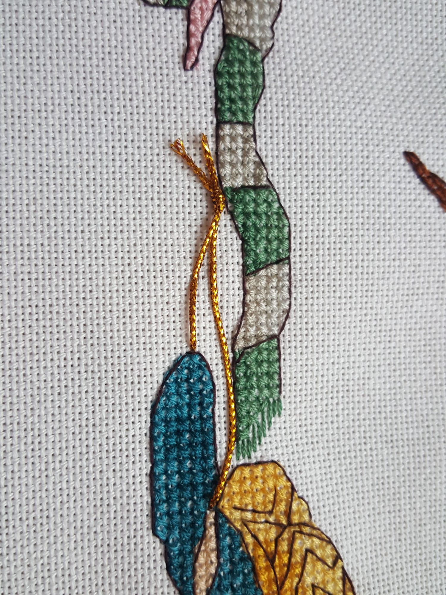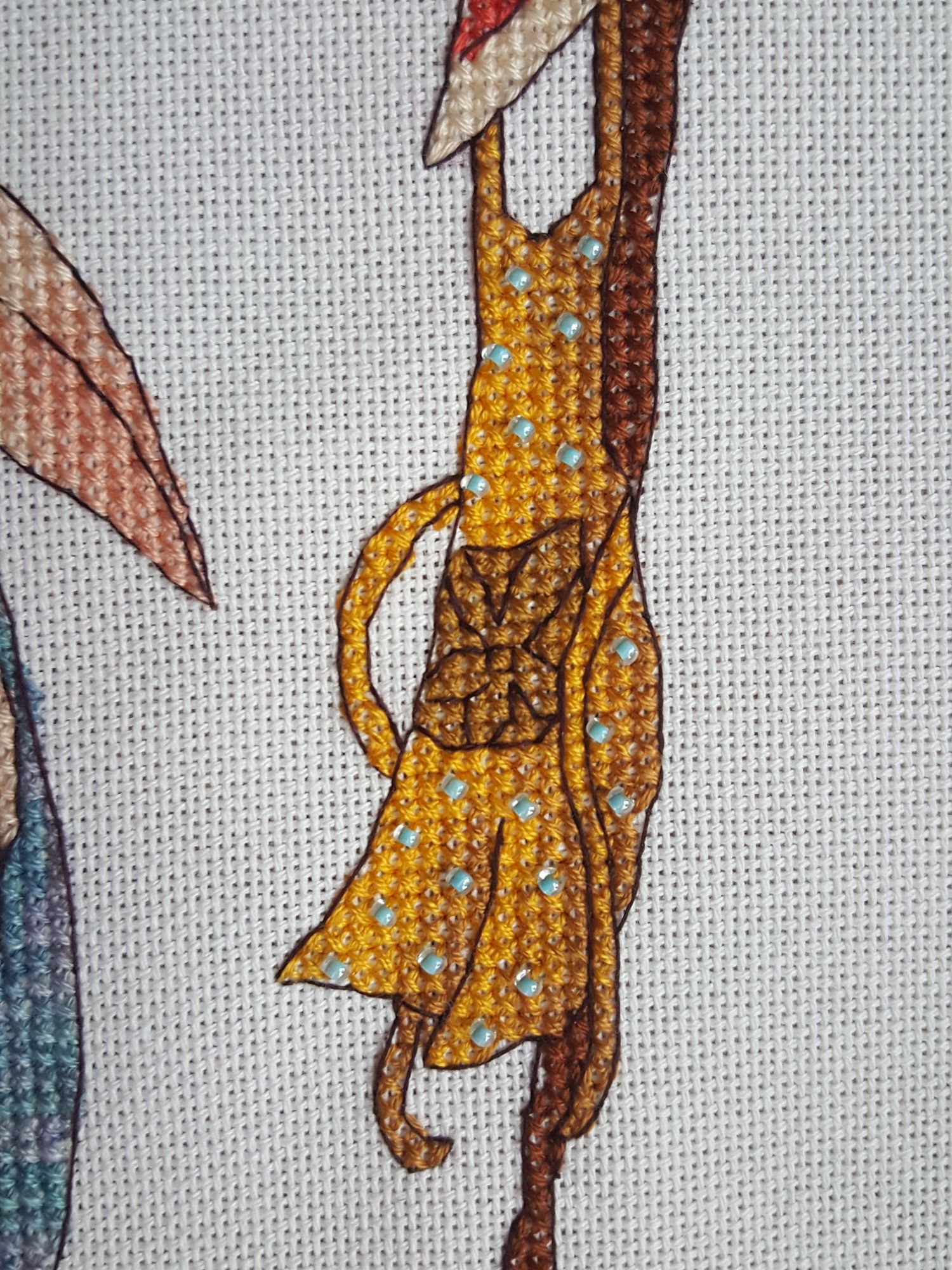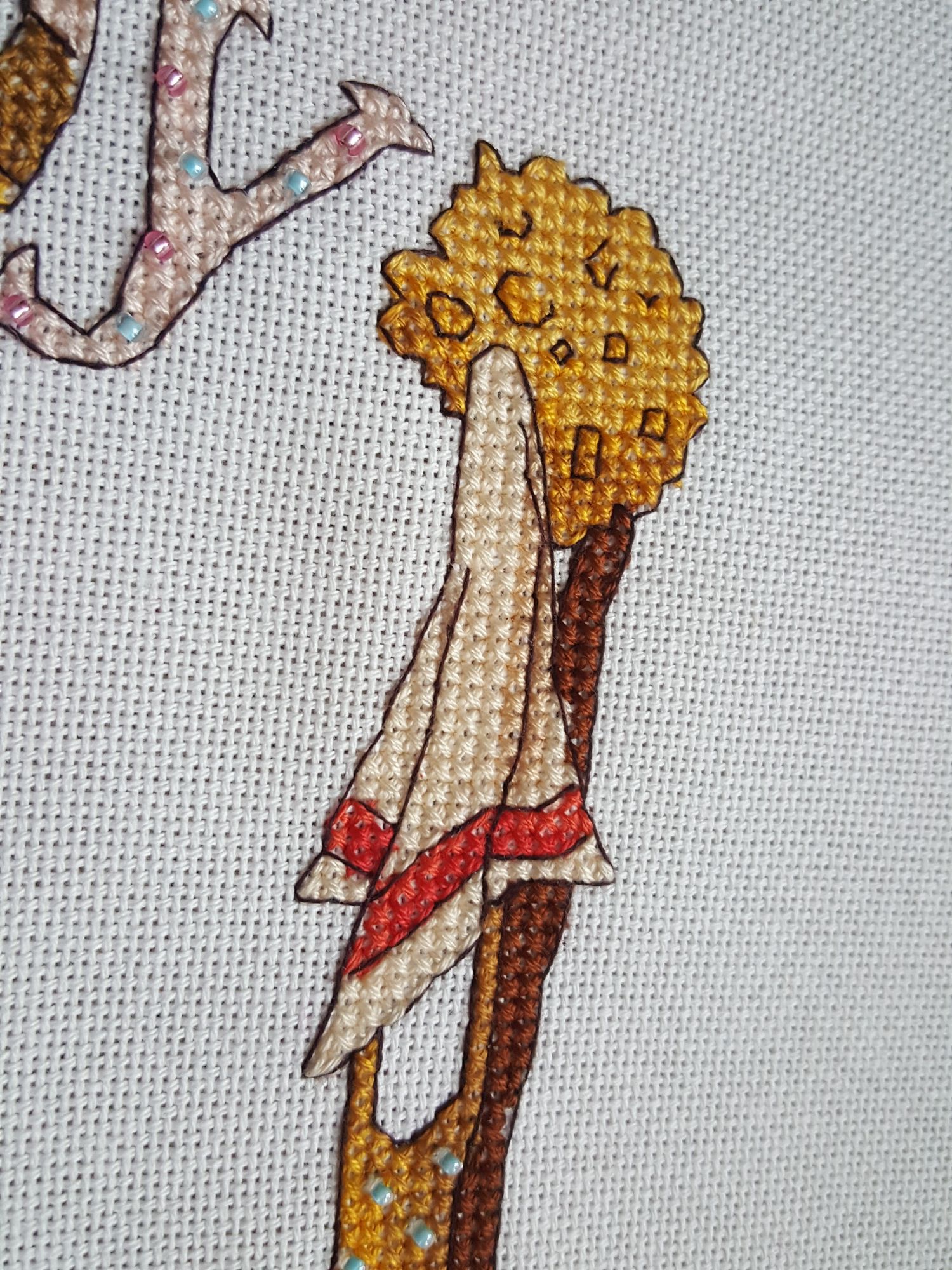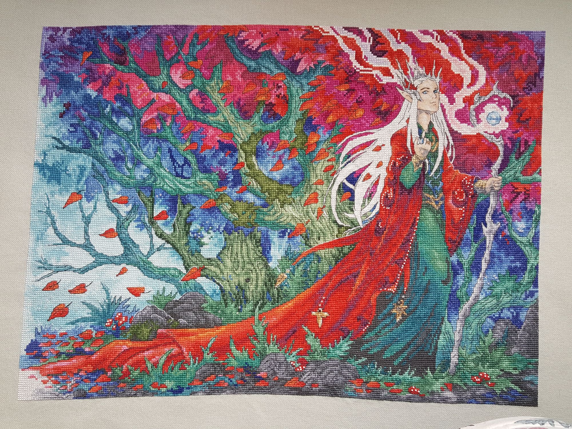 8 января 2022 Готофф №5 самый ТИТАНИЧЕСКИЙ финиш года Добби от Кати Мешковой от меня 11 из 15 - УЖЕ! Rosalia Radosti -> Катя Мешкова -> Я Добби я не собиралась покупать. Не нравился мне он и усё тут. Скучный какой-то… Но купив все схемы в серии, я его захватила уже по инерции. Захватила и начала гипнотизировать – а чо у тебя тут есть такого, чтобы мне было интересно тебя открестить?? И я узрела ЕЁ! ЛЮСТРУ!! Страдания по люстре в многабукафф Скрытый текст Я сразу поняла – её надо как-то так по-особому замесить! И воодушевившись сверх всякой меры – я начала фантазировать, КАК мне эту люстру скастряпать. И я искала возможности для того, чтобы изобразить люстру с даты покупки… с 2017… ЧЕТЫРЕ года... И вот я придумала, отбросив идеи с металликом, этуалями, шнурами, бисером/стеклярусом, применить канитель (я узнала, что это такое как раз в процессе дум над люстрой)). Идея казалась гениальной, пока она не подошла к исполнению… А я даже не стала пытаться – мне хватило просмотра мастер-класса, где прозвучало «аккуратно», «небольшие кусочки», «не спеша» и «потренируйтесь». НАФИГ-НАФИГ. Я могу неделями распускать то, что отшито за месяц. Я могу перешивать одно и то же 5 раз разными цветами, пока не добьюсь удовлетворительного результата. Я могу на полностью готовом дизайне, убранном на долго хранение, перешить бэк/крестики, просто потому что мне кажется «тут как-то криво вышло». НО Я НЕ МОГУ (И НЕ БУДУ) тренироваться. Мне не стоило смотреть МК – тогда возможно я б на поле боя разобралась, но мне уже предметно показали, какая это канитель эта канитель… И я пригорюнилась… А я уже отшила всю левую часть дизайна… И на этом всё встало. Не могу продолжать и всё тут – не понимаю, что делать с главным элементом… Промелькнула мысль в крестике металликами/этуалями… Но это уже переваренная идея… Совсем отчаявшись, я признала свою беспомощность и согласилась с тем, что люстру не буду делать совсем… И, как это всегда бывает, в тот же момент, сей же миг, как я признала своё полное поражение, мне пришла в голову мысль – Aliexpress, на нём есть всё! И я нашла то, что нужно!! И смогла вернуться к отшиву - хе-хей!!! Люстра - это серьга по праву рождения, с перламутровым покрытием. Она меняет цвет в зависимости от освещения, при дневном свете абсолютно прозрачная. Подвески блестят как сумасшедшие. Одежа Добби Мне категорически не нравилась опрятность его простыни. Да, по ключу серым цветом, но это просто простыня из ткани серого цвета, а никак не грязная. Любой «чистый» цвет, даёт ощущение «чистого» объекта. А мне хотелось потрепанности и потасканности. И я сразу подумала про нитки ручного окрашивания, которые идеально потасканные. Но в них есть проблема – если вышить всю дерюжку такой нитью, то она выведет весь объект в абсолютную плоскость. На простыне у Добби же и изнаночная сторона, и складки, и узел… Возможно дале будет общеизвестный способ, но я додумалась до этого сама Лайфхак! Я взяла нить ручного окрашивания (ручная), и подобрала к ней самый светлый оттенок из её «растяжки» и на 1 тон темнее к синему. Всю изнанку отшила по схеме, задействовав чистые цвета. На лицевой части: - самый «тёмный» значок = тёмный чистый цвет - «чуть светлее» значок = тёмный чистый + ручная нить - «светлый значок» = ручная нить И вауля! И потаскано, и объём не потерялся. Не передать в буквах, КАК мне нравится то, что получилось. 