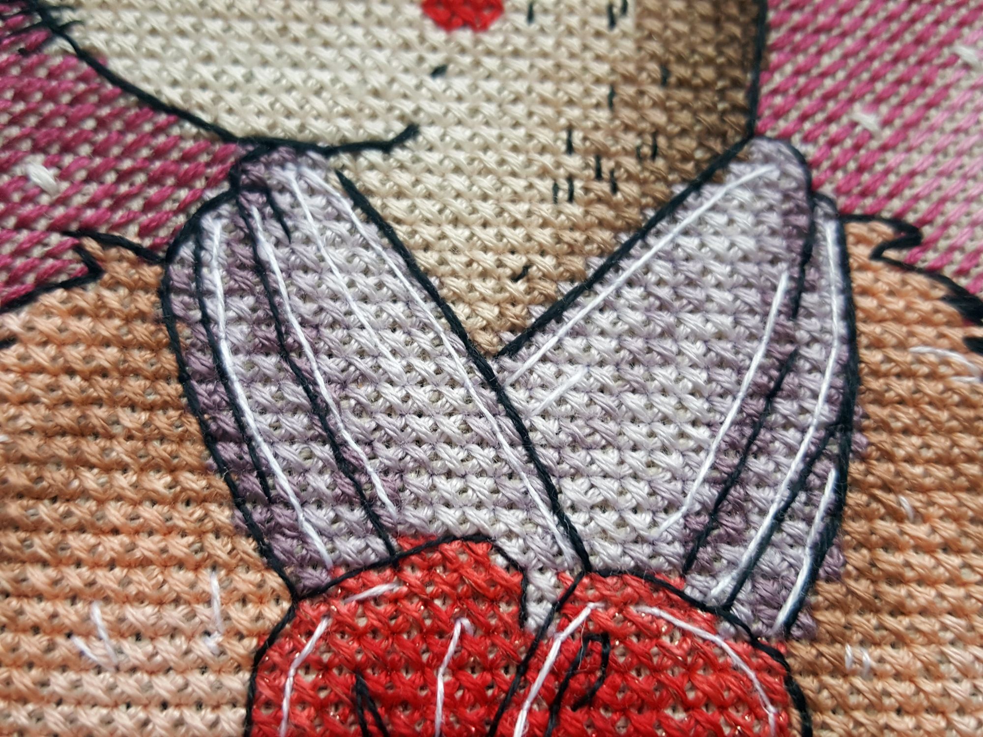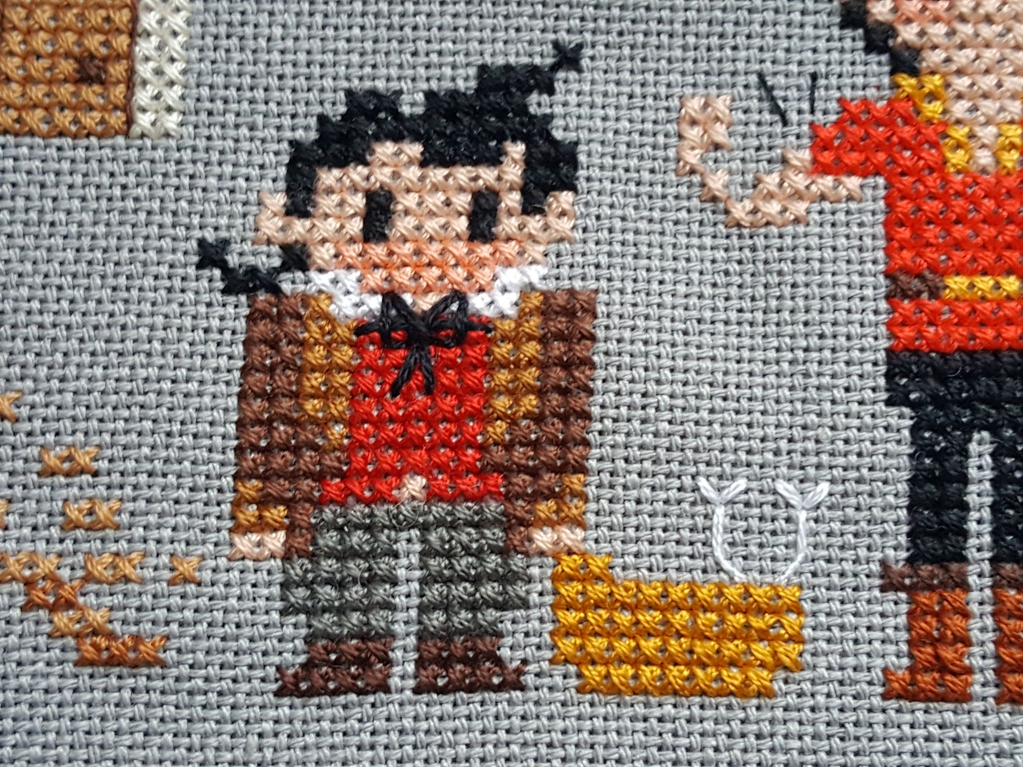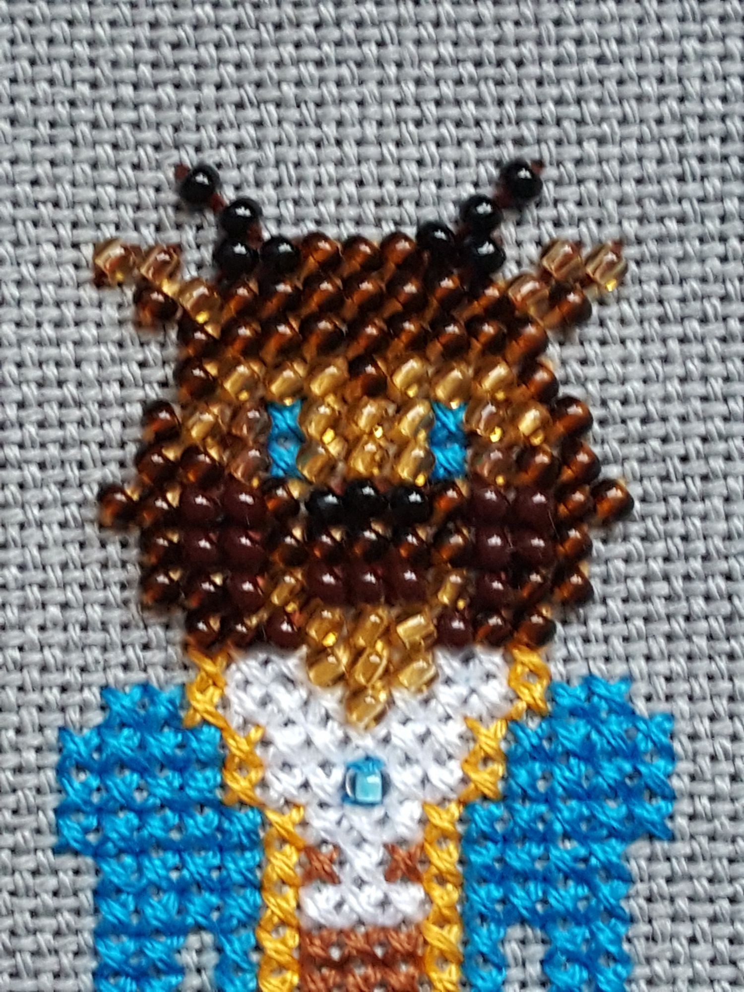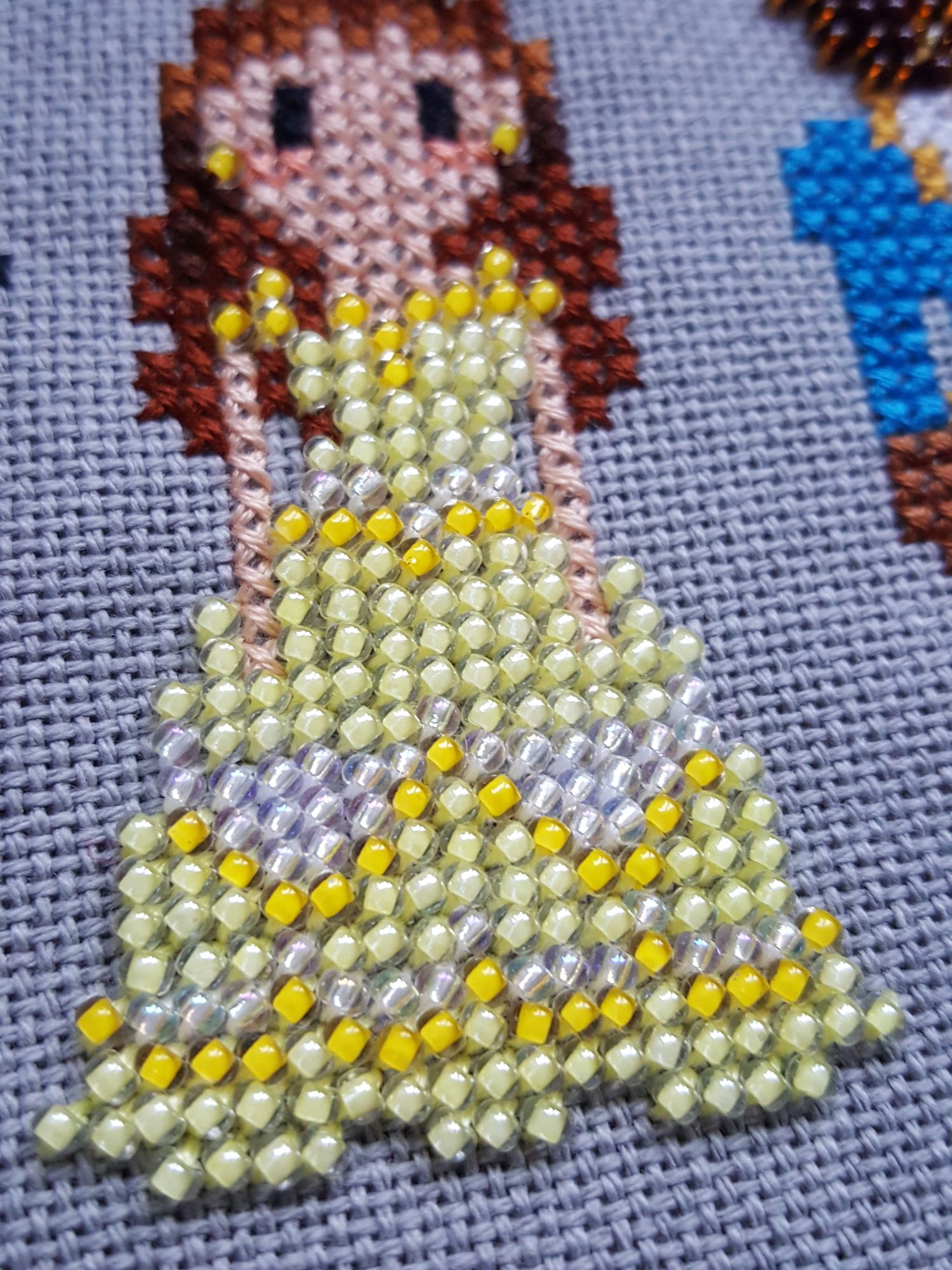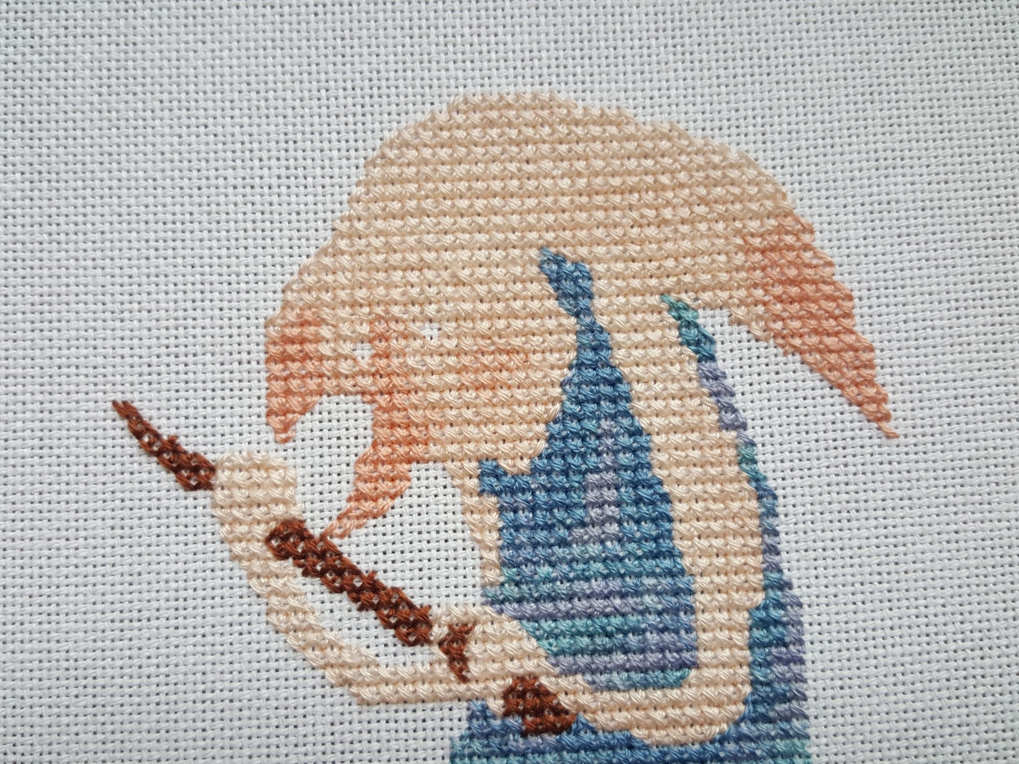 8 января 2022 Готофф №5 самый ТИТАНИЧЕСКИЙ финиш года Добби от Кати Мешковой от меня 11 из 15 - УЖЕ! Rosalia Radosti -> Катя Мешкова -> Я Добби я не собиралась покупать. Не нравился мне он и усё тут. Скучный какой-то… Но купив все схемы в серии, я его захватила уже по инерции. Захватила и начала гипнотизировать – а чо у тебя тут есть такого, чтобы мне было интересно тебя открестить?? И я узрела ЕЁ! ЛЮСТРУ!! Страдания по люстре в многабукафф Скрытый текст Я сразу поняла – её надо как-то так по-особому замесить! И воодушевившись сверх всякой меры – я начала фантазировать, КАК мне эту люстру скастряпать. И я искала возможности для того, чтобы изобразить люстру с даты покупки… с 2017… ЧЕТЫРЕ года... И вот я придумала, отбросив идеи с металликом, этуалями, шнурами, бисером/стеклярусом, применить канитель (я узнала, что это такое как раз в процессе дум над люстрой)). Идея казалась гениальной, пока она не подошла к исполнению… А я даже не стала пытаться – мне хватило просмотра мастер-класса, где прозвучало «аккуратно», «небольшие кусочки», «не спеша» и «потренируйтесь». НАФИГ-НАФИГ. Я могу неделями распускать то, что отшито за месяц. Я могу перешивать одно и то же 5 раз разными цветами, пока не добьюсь удовлетворительного результата. Я могу на полностью готовом дизайне, убранном на долго хранение, перешить бэк/крестики, просто потому что мне кажется «тут как-то криво вышло». НО Я НЕ МОГУ (И НЕ БУДУ) тренироваться. Мне не стоило смотреть МК – тогда возможно я б на поле боя разобралась, но мне уже предметно показали, какая это канитель эта канитель… И я пригорюнилась… А я уже отшила всю левую часть дизайна… И на этом всё встало. Не могу продолжать и всё тут – не понимаю, что делать с главным элементом… Промелькнула мысль в крестике металликами/этуалями… Но это уже переваренная идея… Совсем отчаявшись, я признала свою беспомощность и согласилась с тем, что люстру не буду делать совсем… И, как это всегда бывает, в тот же момент, сей же миг, как я признала своё полное поражение, мне пришла в голову мысль – Aliexpress, на нём есть всё! И я нашла то, что нужно!! И смогла вернуться к отшиву - хе-хей!!! Люстра - это серьга по праву рождения, с перламутровым покрытием. Она меняет цвет в зависимости от освещения, при дневном свете абсолютно прозрачная. Подвески блестят как сумасшедшие. Одежа Добби Мне категорически не нравилась опрятность его простыни. Да, по ключу серым цветом, но это просто простыня из ткани серого цвета, а никак не грязная. Любой «чистый» цвет, даёт ощущение «чистого» объекта. А мне хотелось потрепанности и потасканности. И я сразу подумала про нитки ручного окрашивания, которые идеально потасканные. Но в них есть проблема – если вышить всю дерюжку такой нитью, то она выведет весь объект в абсолютную плоскость. На простыне у Добби же и изнаночная сторона, и складки, и узел… Возможно дале будет общеизвестный способ, но я додумалась до этого сама Лайфхак! Я взяла нить ручного окрашивания (ручная), и подобрала к ней самый светлый оттенок из её «растяжки» и на 1 тон темнее к синему. Всю изнанку отшила по схеме, задействовав чистые цвета. На лицевой части: - самый «тёмный» значок = тёмный чистый цвет - «чуть светлее» значок = тёмный чистый + ручная нить - «светлый значок» = ручная нить И вауля! И потаскано, и объём не потерялся. Не передать в буквах, КАК мне нравится то, что получилось. 