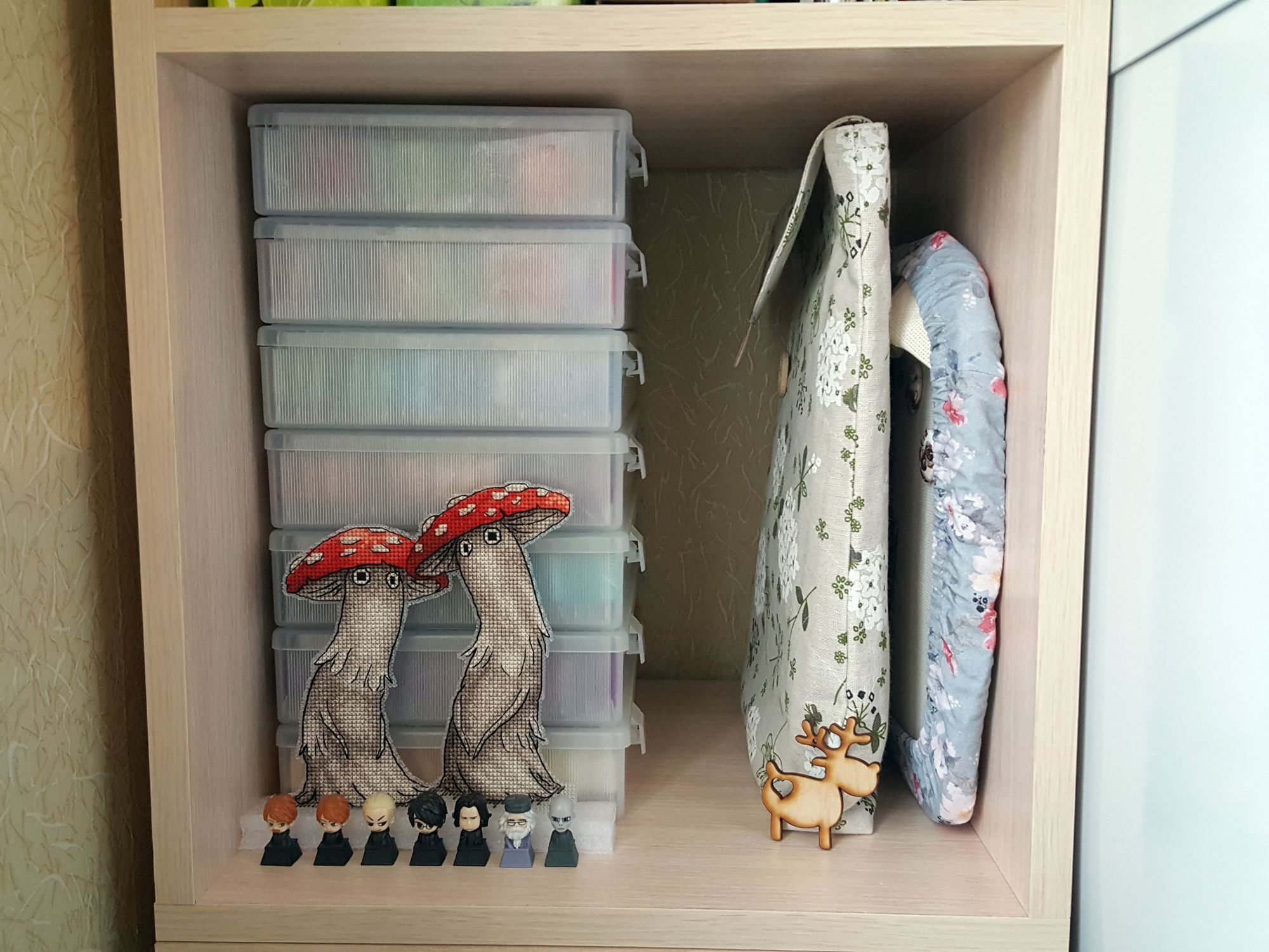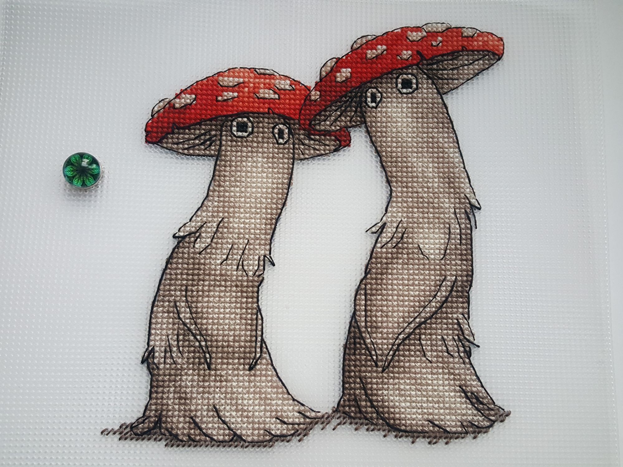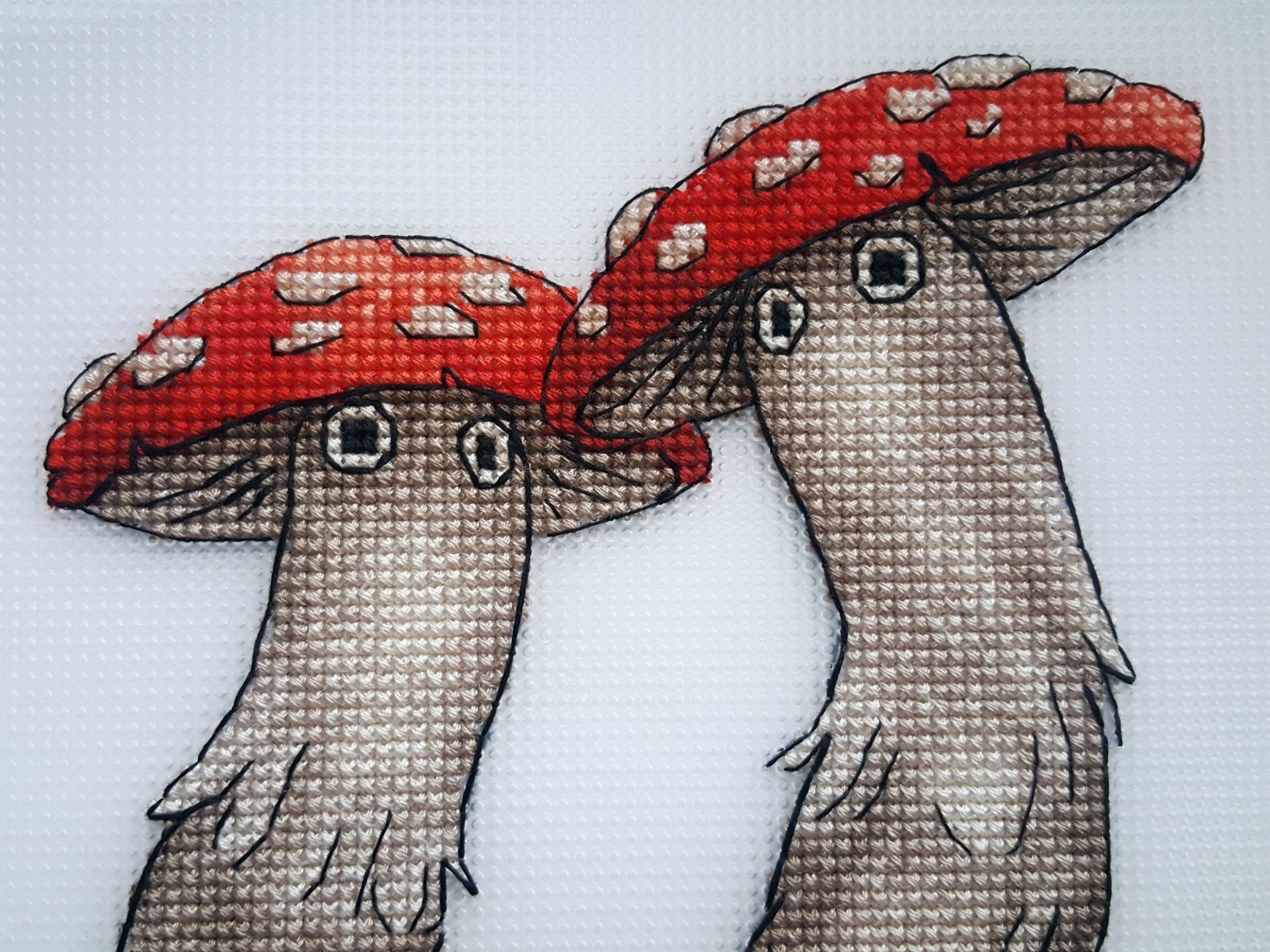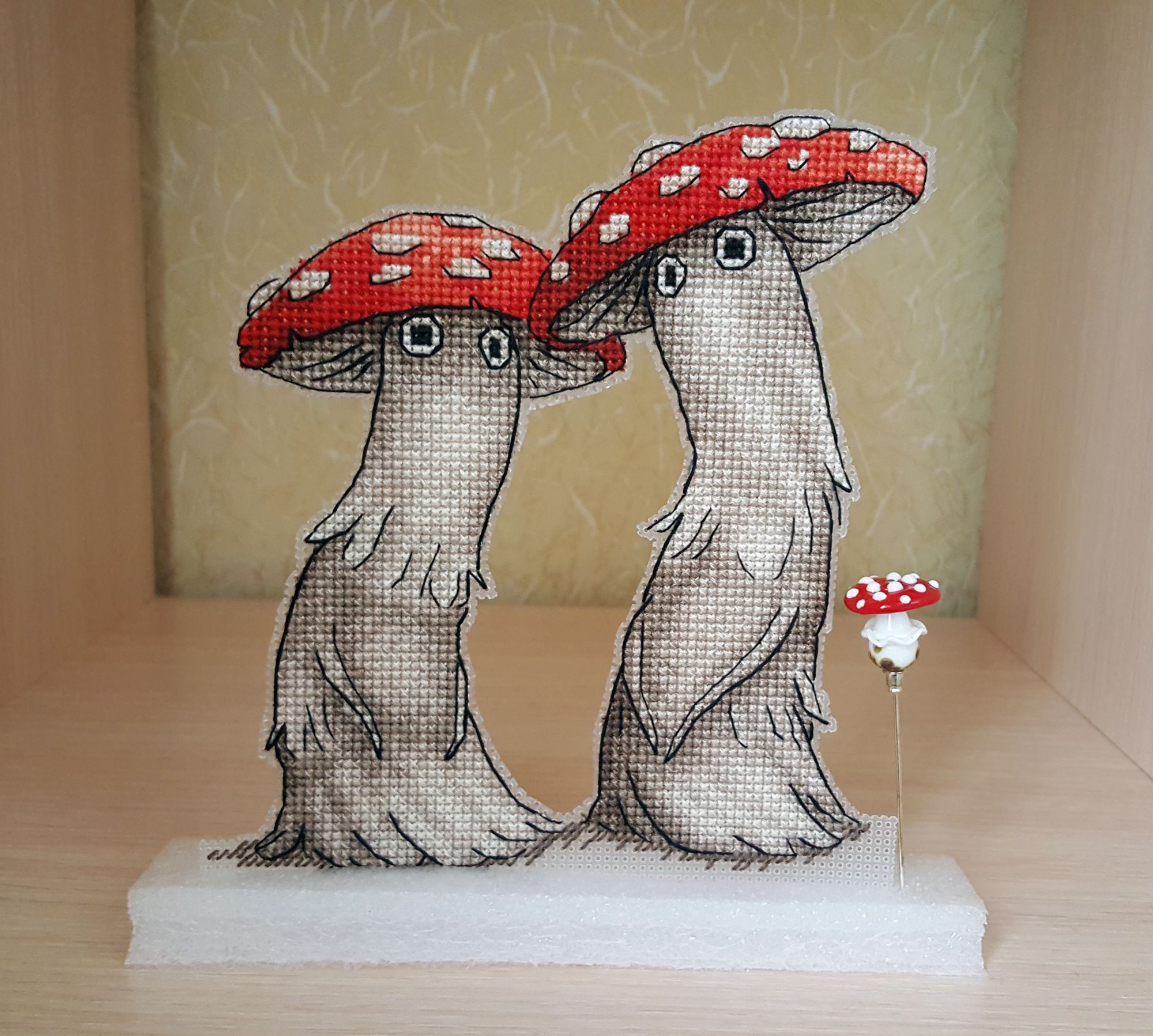 6 января 2022 Готофф №3 А вот, что нежданчиком и невозможно было пройти мимо! Мухоморы от Юли Золотовой Полезные грибы. Их едят – они глядят… в душууу Грибы, которые узрели окружающую действительность и охренели. Житие оценено адекватно. Я не собиралась записываться на предзаказ, но жмакнула «записаться» Я не собиралась их покупать, порешив, что я вот-вот жмакну обратно «отписаться», но откладывала это секундное дело, до оповещалки о готовности - купила мгновенно Я не собиралась их отшивать в принципе – проголосовала денюжкой (мухоморы наше всё) и буде, но собрала на них нитки тем же днём Я не собиралась творчески подходить к выбору основы и взять темно-серую (их у меня полно) согласно превью, но остатка листа от Патрика оказалось тютелька в сопельку!!! Новые цвета 6,7,8. Скрытый текст Первая мысль – это ж 840-842 И таки да – но эти в теплую степь. Очень клёвые коричневые. Мне хочется ещё что-нибудь в них! Я была чрезвычайно скептически настроена к идее расширения палитры (да всего хватает ж?!), но те несколько новых оттенков, которые у меня уже есть весьма крутые. Беру свои ворчливые мысли назад. Впервые вышиваю Юлю Золотову. Я бы не сказала, что это просто – бленды из дохло-коричневых это такое себе. НО это мне было тяжко на прозрачном пластике, с которым они сливались (поднимите мне веки!...). И может необязательно было всю эту плавность переходов городить… можно было и попроще… Впрочем чего я ворчу – ведь в целом мне ОЧЕНЬ зашло сочетание цветов, а те же бленды на шапках – дык я ж похрюкивала от восторга. Результат ащееее!!! И не смогла я их пристойно оформить И я их оформила – !йоу-йоу! – в стиле лофт Нихт задник, нихт подвес – это же кич, банально и неэкологично. Есть хэндмейдОвый постамент из упаковочного поролона, который прорезан ножницами - мухоморы банально в него впендюрены держат сила трения и тяготения. Постамент символизирует отказ от детерминизма в гедонистическом времяпрепровождении индивидуума со слаборазвитой мелкой моторикой и ограниченным восприятием. И не смогла я их нормально сфотографировать И я им организовала авторскую фотосессию в неопримитивистском стиле Справа фото в естественной среде обитания: так они у меня и живут и радууууют Паки-паки гайку для товарищей P.S. У меня есть ещё зачОтное свеклО от Юли Золотовой – моя прелесссть. Хочухочу! Вписала в необъятные планы 2022 продолжение следует... Lucia-del-Umago, Путешественница, maui и 17 других сказали спасибо Поделиться сообщением Ссылка на сообщение