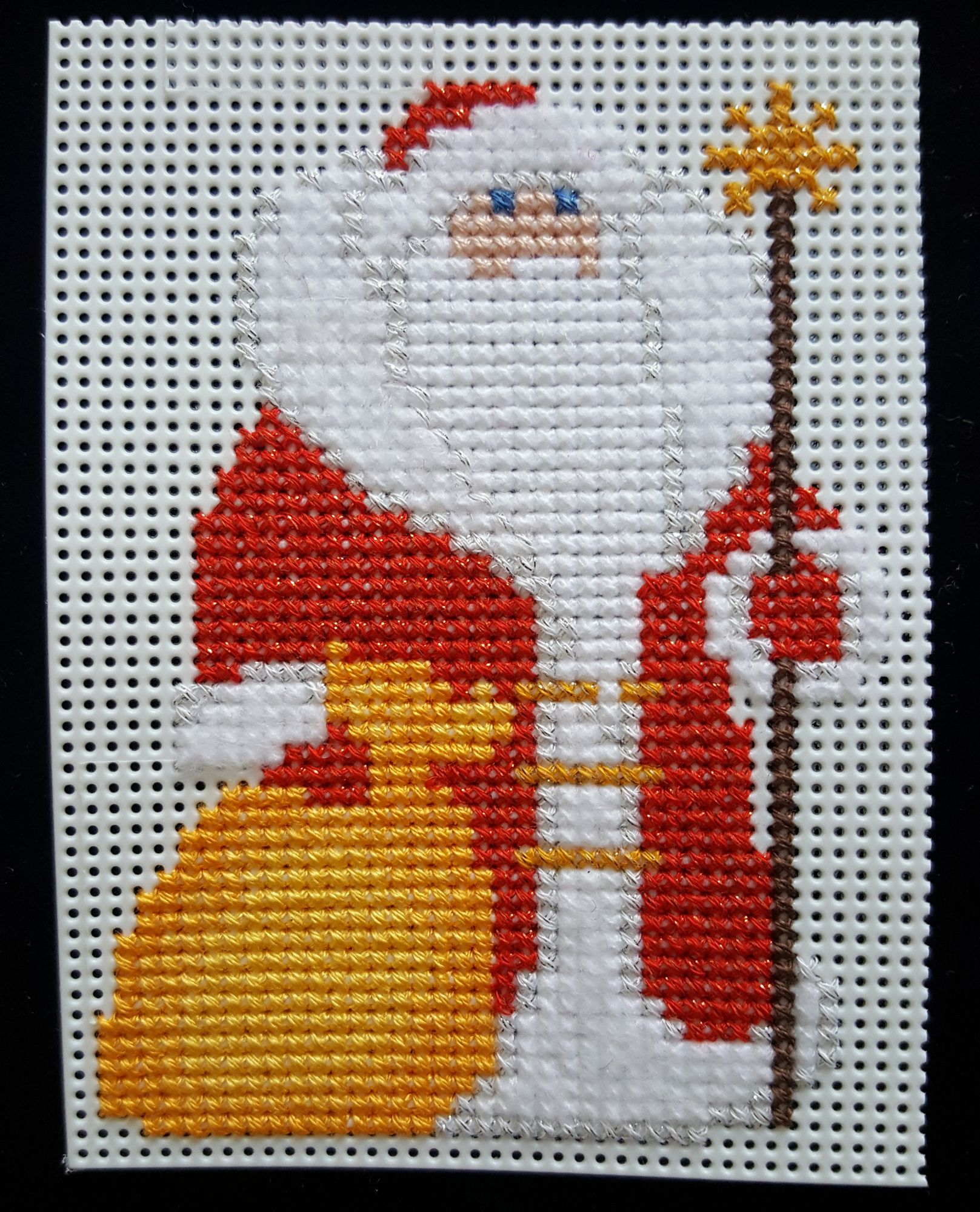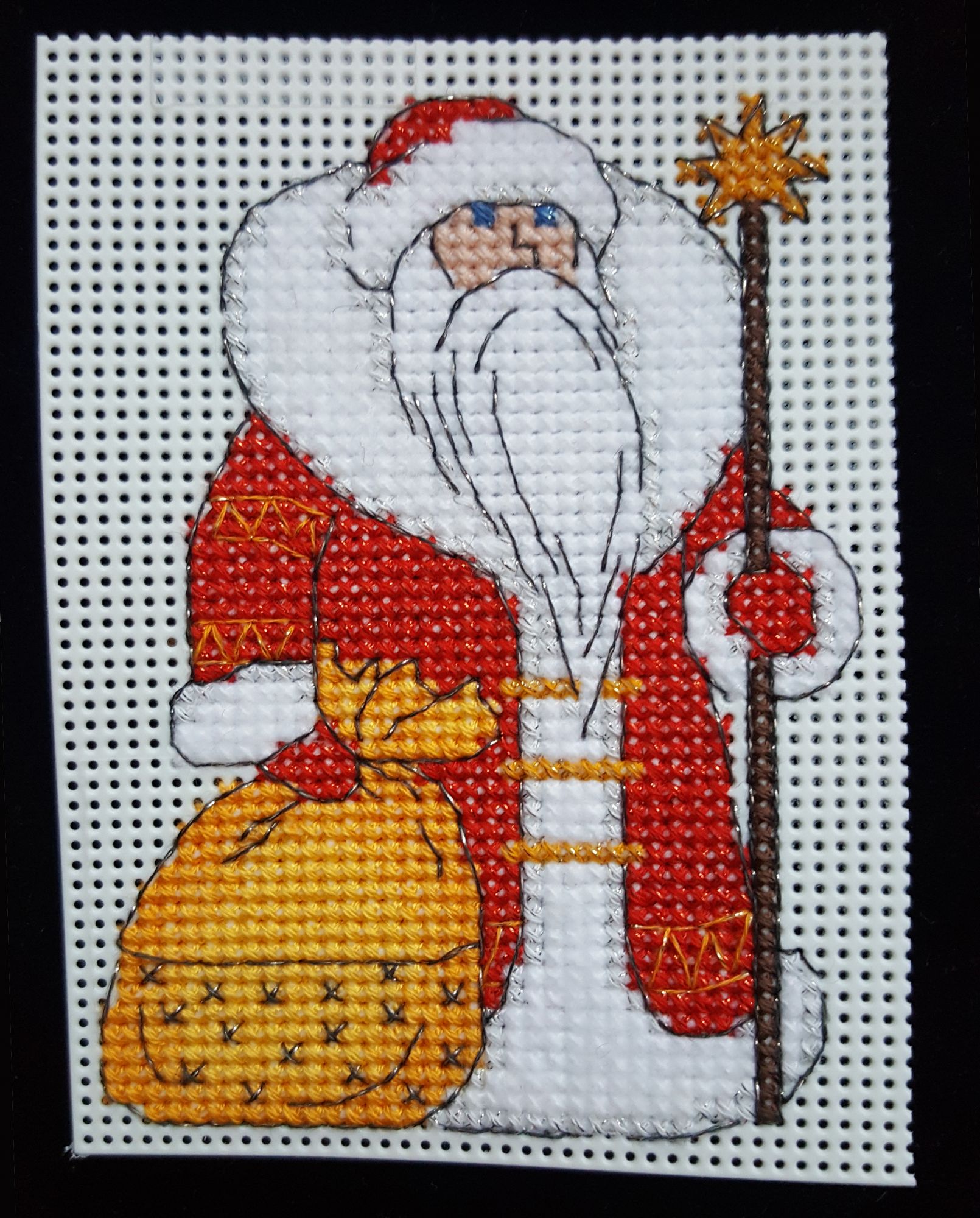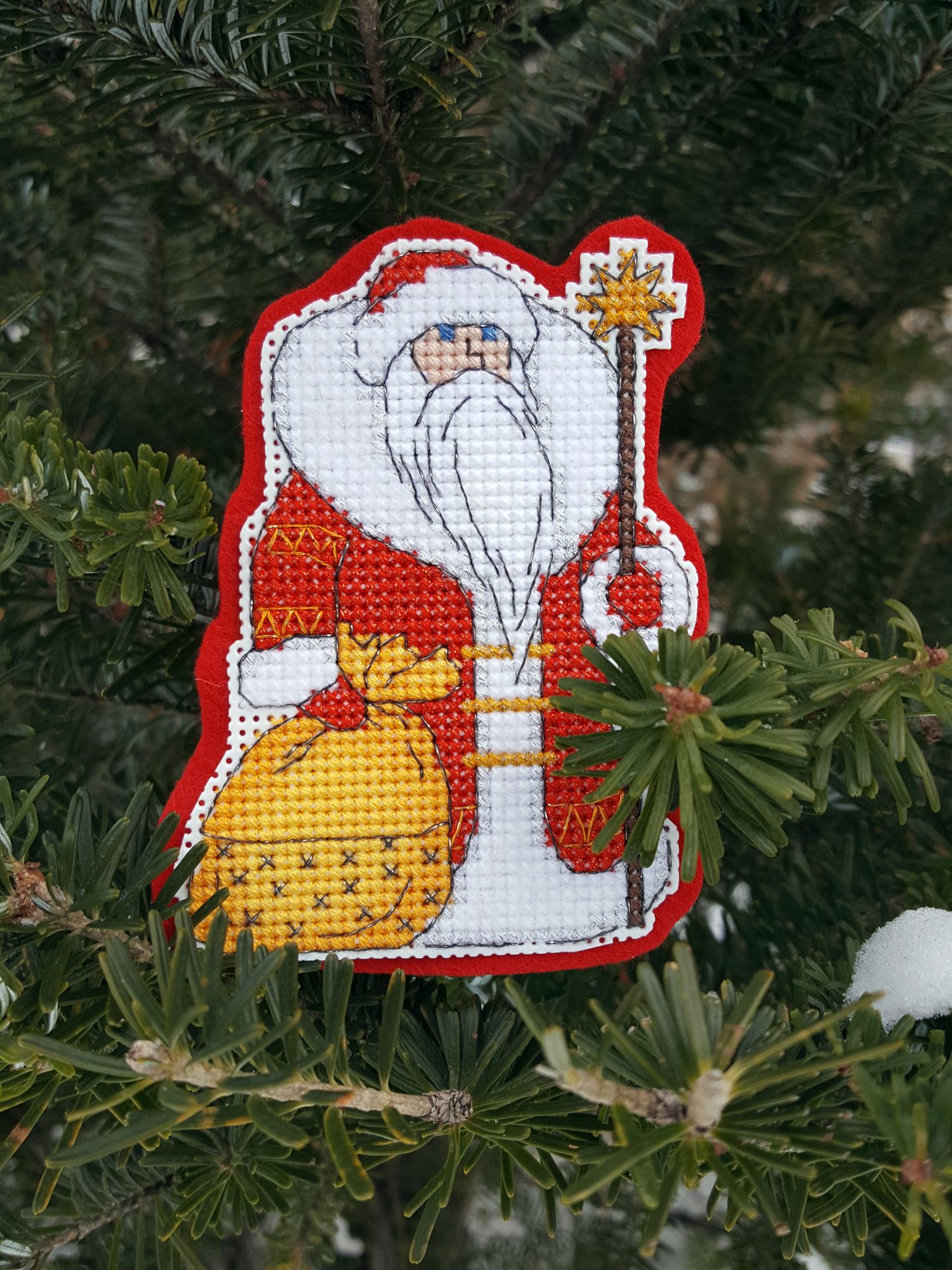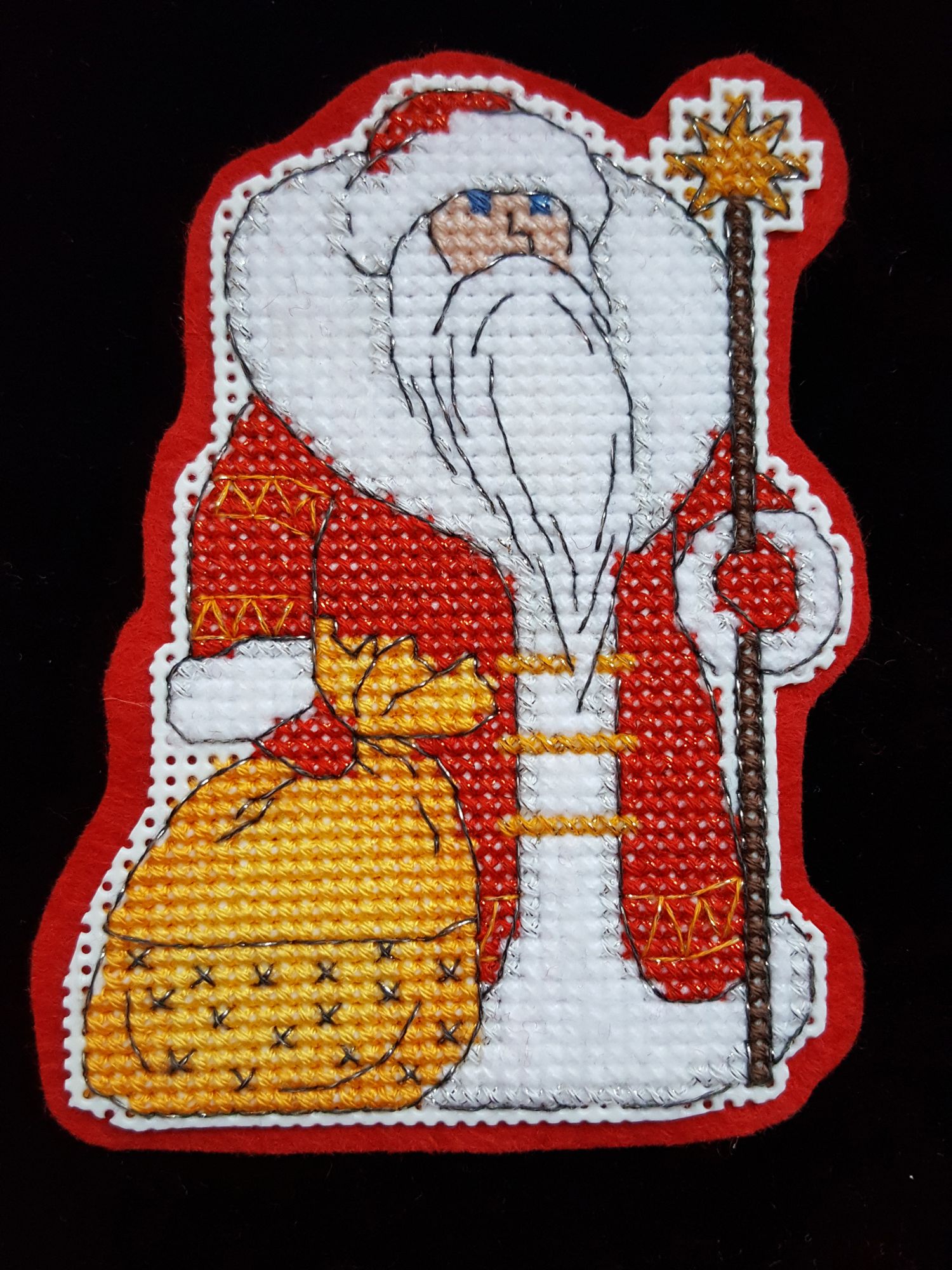 8 января 2022 Готофф №4 Дедушка Мороз Схема из бесплатного каталога Зимние идеи 2020-2021 Дедулечку я намеревалась вышить в позапрошлом конце 2020го… И таки почти не соврала, вышив концом 2021го Дедушка Мороз на НГ! Ему полагается блестеть аки ёлка в гирляндах!! Всё банальное в сторону – достала этуали! А вот у Мороза шуба из мэха убитых пушистых животных – достала cloud! !Тест cloud от гаммы показал, что это отличная волосатая нитка. Пошоркать немного липучкой и волосатые Хэ преврааащаются в Хэ пушистые КЛАСС! В банальном ДМС только мешок (блестящий мешок – это ж просто неприлично, понижает социальную ответственность деда!) и древко посоха. На мешке вместо пошлых звездулей, благородные звезды. Замест серого в окантовке шубы – этуаль белый (по факту он серый). Смотрится, как изморось на лохматостях шубы. И бэк – это 3799 этуаль – мой самый любимый этуаль. Блестючесть сумашедшая! Таким образом весь Дедушка блестит-сверкает, в шубу тепло-дорохо-бохато одет Дедушка оформлен в красный фетр. Да, красное на красном – креатив во все поля! Посажен на магнит (убойной тяги) – баджик с очередной конференции расчленила. Посадила на момент + мононитью закрепила = отодрать можно, только переломав пластиковую основу. При этом мононить я протянула на лице под бэком – её не видно не потому, что она прозрачная (такую на самом деле всегда видно), а потому, что она спрятана. Я нереально горжусь оформлением, т.к. это и красиво, и аккуратно и абсолютно надёжно Подвиг + Я вывела Дедушку на фотосессию. Холод был такой собачести, что меня хватило ажно на два фото. Ура-ура! Целое одно получилось Паки-паки гайку для Дедушки Продолжение следует... Путешественница, Lucia-del-Umago, Гало4ка и 16 других сказали спасибо Поделиться сообщением Ссылка на сообщение