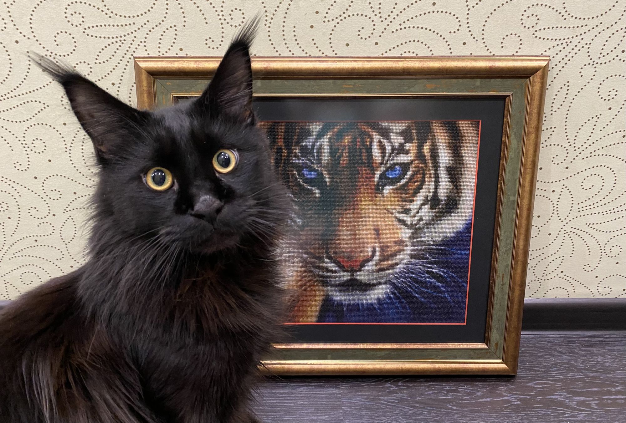 14 января 2022 Кукусики, мои дорогусики!!! Обещала вернуться - вернулась! ПРЮВЕЕЕЕЕЕТ!!! Поздравляю со всеми наступившими! Здоровья, богатства, молодости, красоты, денег, счастья, любви, вдохновения, процессов в процессе, завершенцев, афигенных оформленцев.... всем-всем-всем нам в новом!!!! Нус, зачнём Оформила Тигрулю. Как и планировала, в багетке успели до НГ, и мы вступили в тигриный год, с повешенным торжественно водруженным на галерейную стеночку Тигрулей! Собственно вот он поближе Получилось довольно таки не плохо. Мне нравится! На этом фсоооо... Афремову бэк не пришила, рощу не трогала ))))) все стабильно )))) --------------------------------------------- Покажу вам нашего нового члена семьи. Знакомьтесь наш Кунёнок - Сигмар тут нам 1,5 месяца, мы только-только поели молочка и знакомимся с новым домом. В тоже время))) Тут нам 3 месяца ну, и пару дней назад Тигруля ему тоже приглянулся но был повержен настоящим ХОЗЯИНОМ территории ))) и контроль за гостем))) Вот как-то так) Всем рада! Всем спасибо!!! Всем нам отличного вышивального настроения! Берегите себя и своих близких!!! До новых встреч cllepa, Catopuma, maui и 17 других сказали спасибо Поделиться сообщением Ссылка на сообщение