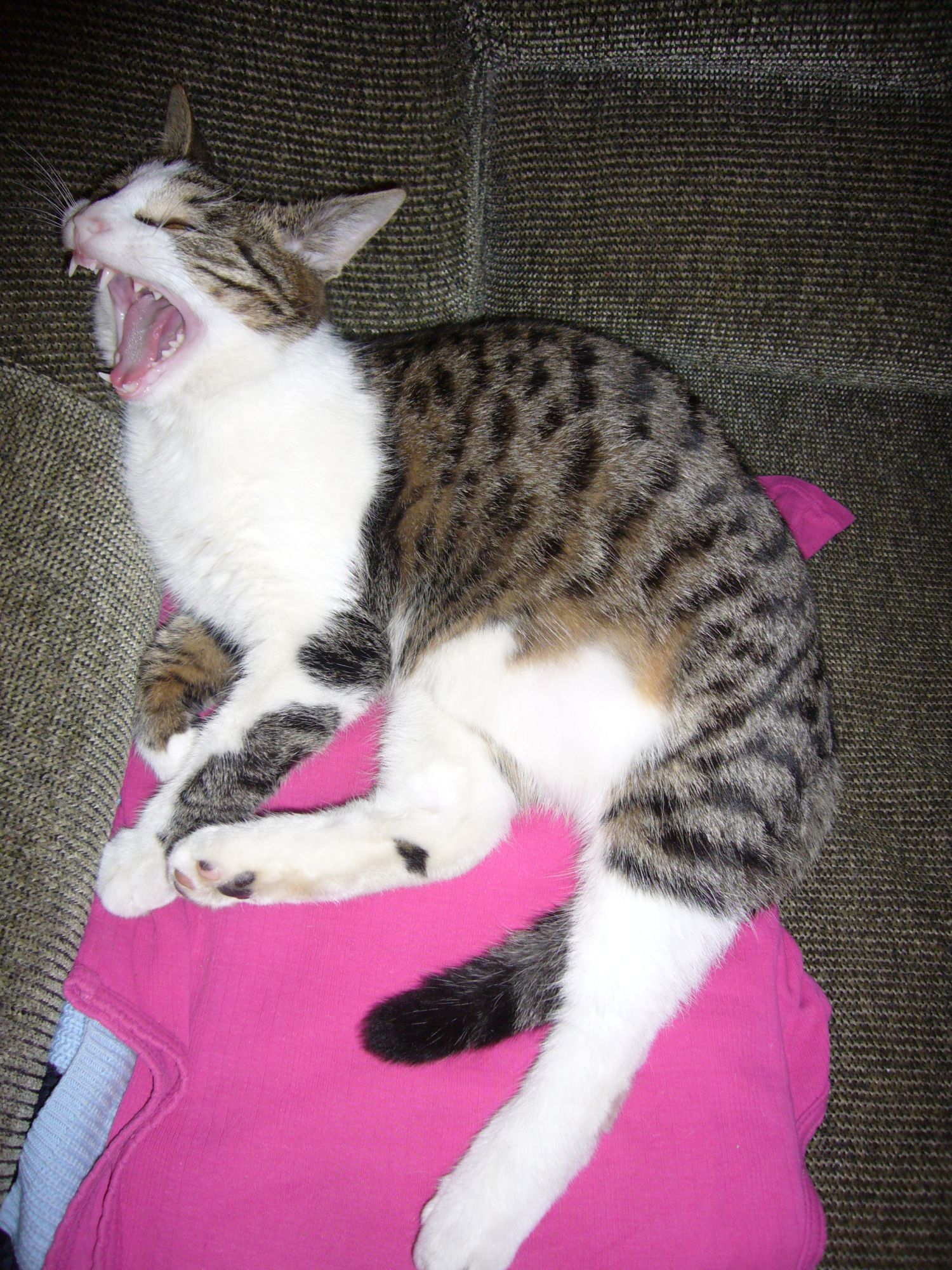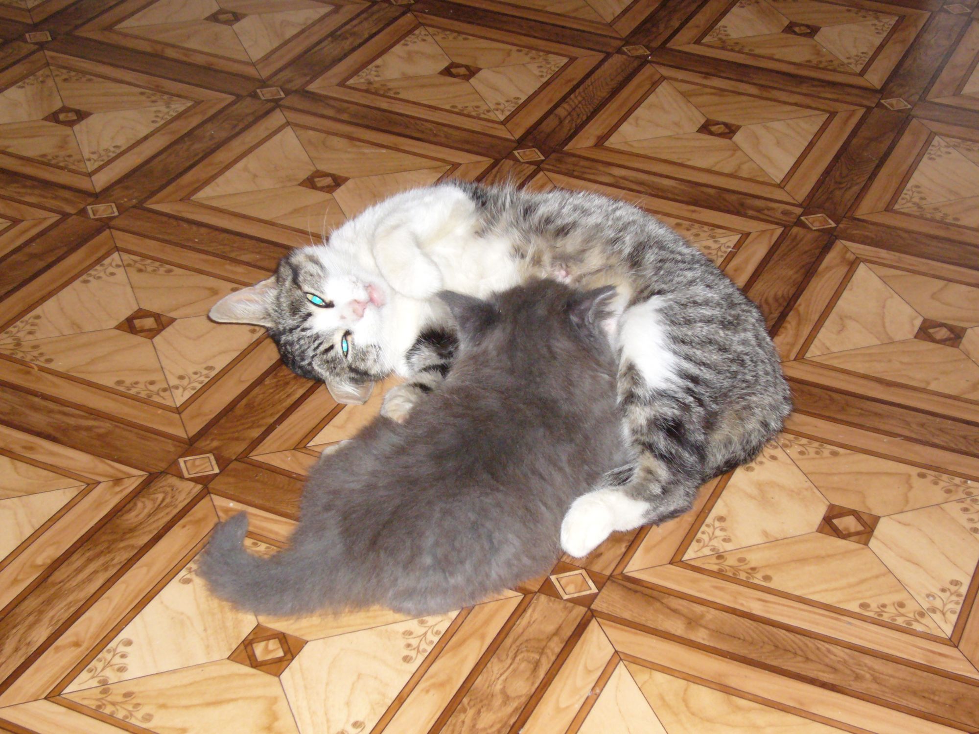1 апреля 2016 Сегодня представляю своих котов (которые были и один есть сейчас). Когда была маленькая у нас была кошка Дымка, потом ее сын кот Ромка(прожил 13 лет), потом кот Кузя, потом Тимон, потом Яшка, а затем уже Сеня (его фото уже есть). Это Сеня Когда был Сеня, прикормила дикую кошку, которая подъедалась на помойке. Кошку назвала Марухой, кормила ее раз в сутки (после работы) сухим китикет. Сначала походила к еде когда отойду, постепенно перестала бояться и даже дала себя погладить. Постепенно так привыкла за пол года (или все-таки голод взял свое), что стала приходить за едой к двери дома за едой, к тому же уже зима была и стали пускать ее греться на террасу. В итоге Маруха стала потом жить в доме и эта дикая кошка очень любила ласку (до соплей) приходила сама, специально прыгала на колени, чтобы ее поласкали. Видно тяжелое детство дало о себе, котят у нее никогда не было, мяукала очень тихо (наверное Яшкина дочка он был немой как рыба рот открывал, а звуков не было, когда надо было на улицу стучал лапой). Это Маруха и Сеня – жили дружно. Сеня любил спать на грядке, где чеснок, Маруха на заборе После Сени (как же я без кота) принесла Степу Маруха сначала на него фырчала, но после того как ее мамка отругала: «Зачем маленьких обижаешь», она его усыновила. Степа очень хотел иметь мамку и у Марухи появилось молоко, она его кормила Степа рос, молоко пропало, а привычки остались. Степе нравилась коляска для кукол, думал наверное, что для него купили, ну дети использовали его любовь к кукольным вещам Спета пропал появился Рома (второй), это моя костлявая рука его держит Маруха Ромку тоже приняла как сына (следила за его чистотой, облизывала как мать), но молока Ромка от нее не добился. Однажды Маруха пропала, остался один Ромка, которого потом не стало. Появился Вася За рыбу Ваня готов был родину продать и у него были свои любимые игрушки. Любил когда ему пузо гладили, так и спал, подставляя для ласки пузо. Еще любил прикорнуть на обуви Привезла домой Ваню. Были у знакомых в деревне у них кошка окотилась и котят спрятала в сарае. Котята были дикари. На Ваню пришлось охотится: положила в сарае мяло ушла за угол и ждала когда котята выйдут на мясо, Ваня убежать не успел я его поймала и не отпускала. Привезла домой (поздно вечером), он у меня вырвался, спрятался за шкафами и орал. Не выходил, орать устал потом скулил, наверное сутки там пробыл. Думали уже, что мебель надо будет отодвигать, но потом с одной стороны стали веником шуметь, он и пополз к углу , где я его умудрилась достать. Покормила его, он опять стал орать, пришлось отправить его в сарай, он там тоже спрятался по старую мебель. Орал в этом сарае так, что я ночью дома слышала его крик. Но голод есть голод на кормежку вылезал, разрешал мне себя гладить, за неделю стал разрешать гладить себя и папке. Через две недели был сама ласка и стал жить дома. В итоге стали жить два кота большой (бася) Вася, и маленький (мася) Ваня. Зовешь одного, бегут вдвоем. Вкусы у них оказались разные: Вася любил рыбу, Ваня мясо. Сейчас остался только Ваня (ему уже лет 6), любит ласку, может подойти и орать, чтобы взяли на калении, поласкали. Разговорчивый ужастно, может жаловаться на кого-нибуть Прошлой весной зашлялся, приходил только пожрать и сразу убегал, ну в итоге его лохматая шерсть на боках скаталась и стала валенком. Это был ужас. Ждала тепла