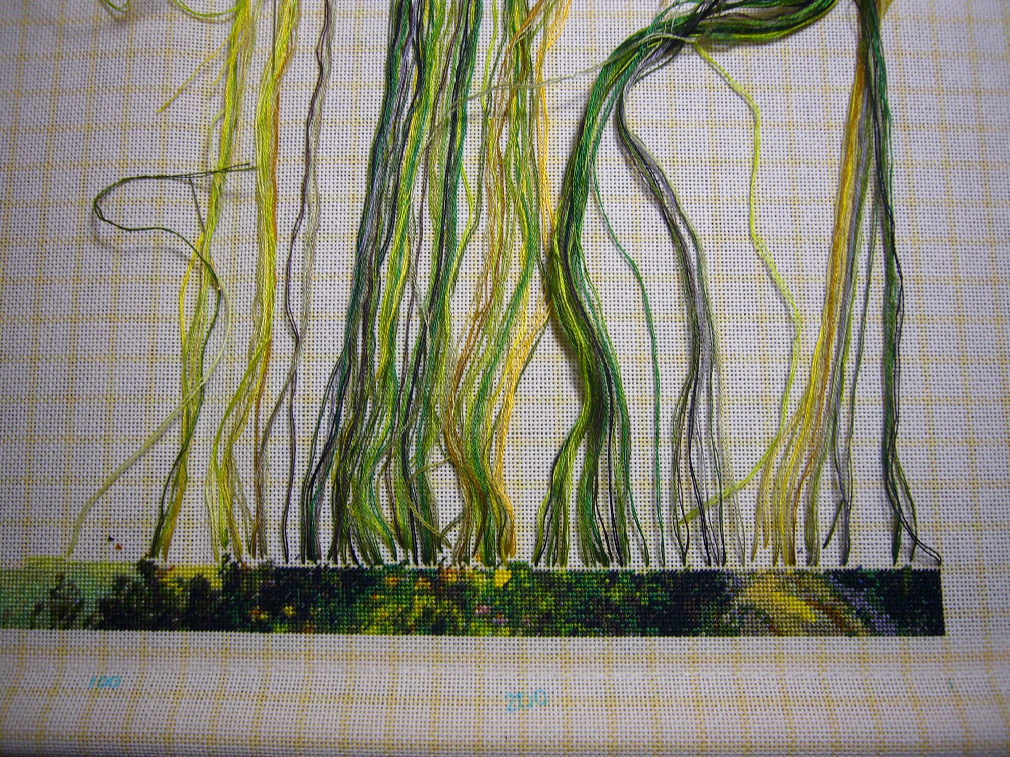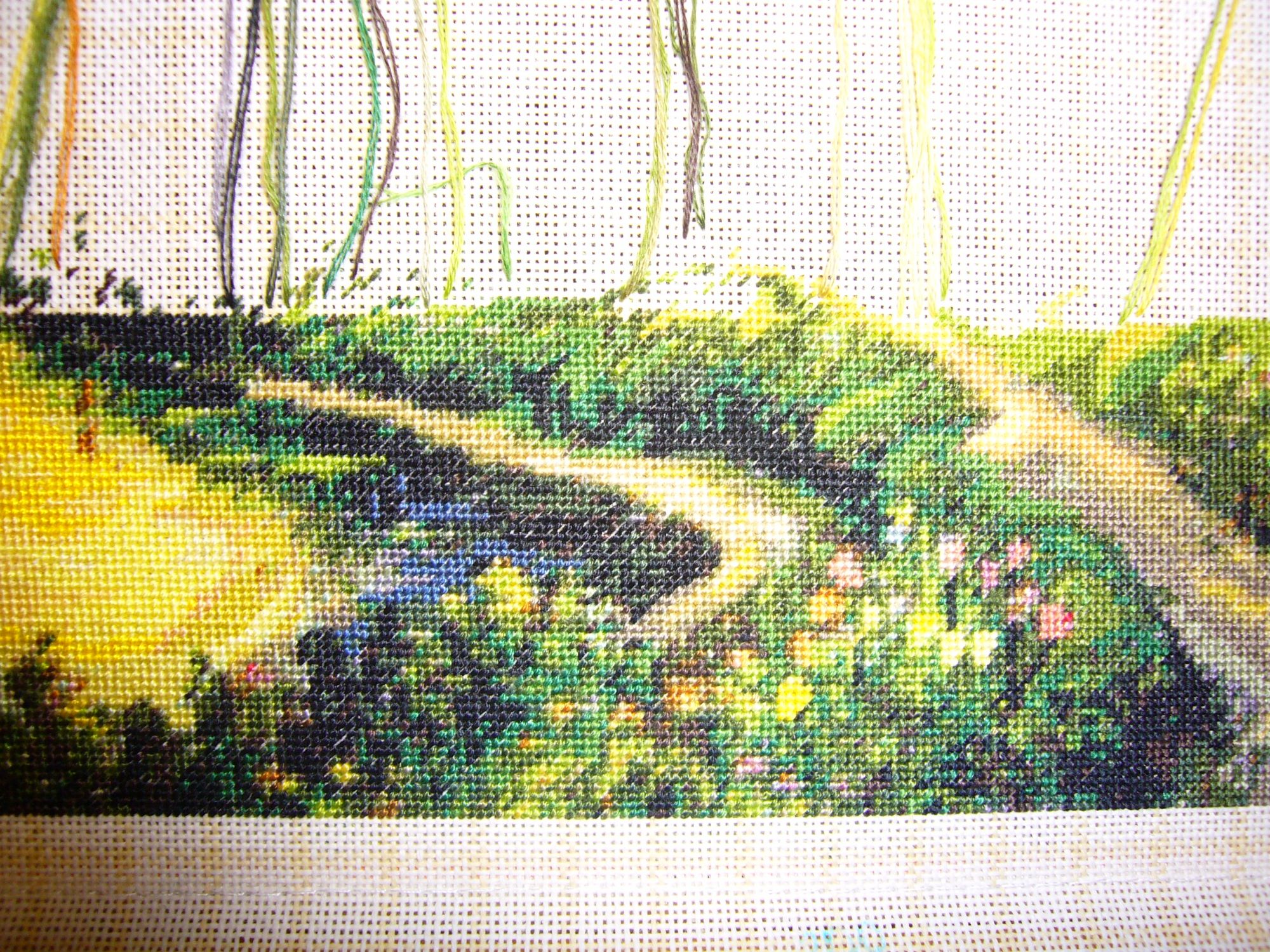 13 сентября 2017 Всем добрый день! Хоть с последнего отчета прошло много времени (почти 2 месяца, а я все думала, что только один месяц не отчитывалась), но достижения у меня не большие. Ремонт в этом году у меня очень медленно идет, осваиваю новый вид ремонтных работ штукатурка стен и после каждого замеса «сметаны» для стены приходится мыть рабочий инструмент, на что времени уходит столько же, как и на ремонтные работы. После второй смены (ремонтные работы), бывает третья смена – вышивальная. В целях поднятия себе настроения начала новый гобеленовый процесс. Luca-S G-320 «Мельница в сумерках». Набор снят с производства. Еще решила попробовать метод парковки в вышивки. Для того, чтобы всегда парковать иголку в правом верхнем углу ряды у меня чередуются нечетные – полукрест, четные – гобеленовый стежок. Да еще начала не по квадратам отдельным вышивать, а сразу целый ряд на всю ширину вышивки. В итоге, на вышивке получилось очень много рабочих ниток. Для себя решила, что сразу целый ряд идти не мой вариант, стала ограничивать себя кусками, при этом вертикальных строгих границ я не придерживаюсь (приблизительно по цветам определяюсь). Нижний правый край у моей вышивки испытывал меня на терпенье. Очень много одиночек (особенно где клумбы и некоторые вообще не нужны, только создают эффект пропущенных стежков ), очень много ниток задействовано, нитки получались в куче, но при этом в узелки все-таки не путались, вытаскивались (правда время на это уходит). Еще ниток много и иголки периодически у меня сваливаются (нахожу потом на диване, на полу). Чтобы знать, что иголка не потерялась, стала им вести счет (у меня их 81). Из недостатков парковки у меня то, что нитки долгое время в работе, в итоге они начинают лохматиться. Когда одним цветом вышиваешь, нитка сразу уходит в работу, а тут ряд прошел, отложил нитку, ряд прошел, отложил нитку. Вышивать у меня получается медленно, но учитывая то, что мешанина значков (цветов и одиночек), по цветам вышивать тоже было бы трудоемко. Иногда выхожу за пределы горизонтальных рядов, если кусок нитки маленький, чтобы уж он не болтался и так ниток много. Очень мне пригодился органайзер от Светланы (Svetles), а то сначала в работу запустила много ниток, а потом когда в ближайшем окружении этот цвет не нужен приходится нитку обрезать, вот у меня и собралось этих обрезков, что иногда иголок не хватало. Магнолия у меня практически не вышивалась, вместо нее хочет чего-нибудь новенького (подсолнухи или птичку). Стала готовить разметку из лески для подсолнухов, лески не хватило. Так что придется дошивать магнолию, чтобы забрать у нее леску. Взяла на себя обязательство, чтобы дошить магнолию хоть по нить в день вышивать. Не скажу, что мне ее в тягость вышивать, просто мельницу мне больше хочется вышивать. Московский дворик как объект у меня на консервации, на сколько пока не знаю. На огороде огурцы уже прошли, ботву выдернули, помидоры уже тоже отходят. Яблок в этом году много (у одного дерева даже ветки сломались), но они мелкие. Из цветов цветет гортензия и моя статица (для зимних букетов я уже ее насушила). Еще очень разрослась цинерария, должна быть высотой 15-25 см, а она где – 50-60 см. Кратко из новостей пока все, всем хорошего настроения. Nata_Struchkowa, Selinta, Ксен40 и 17 других сказали спасибо Поделиться сообщением Ссылка на сообщение