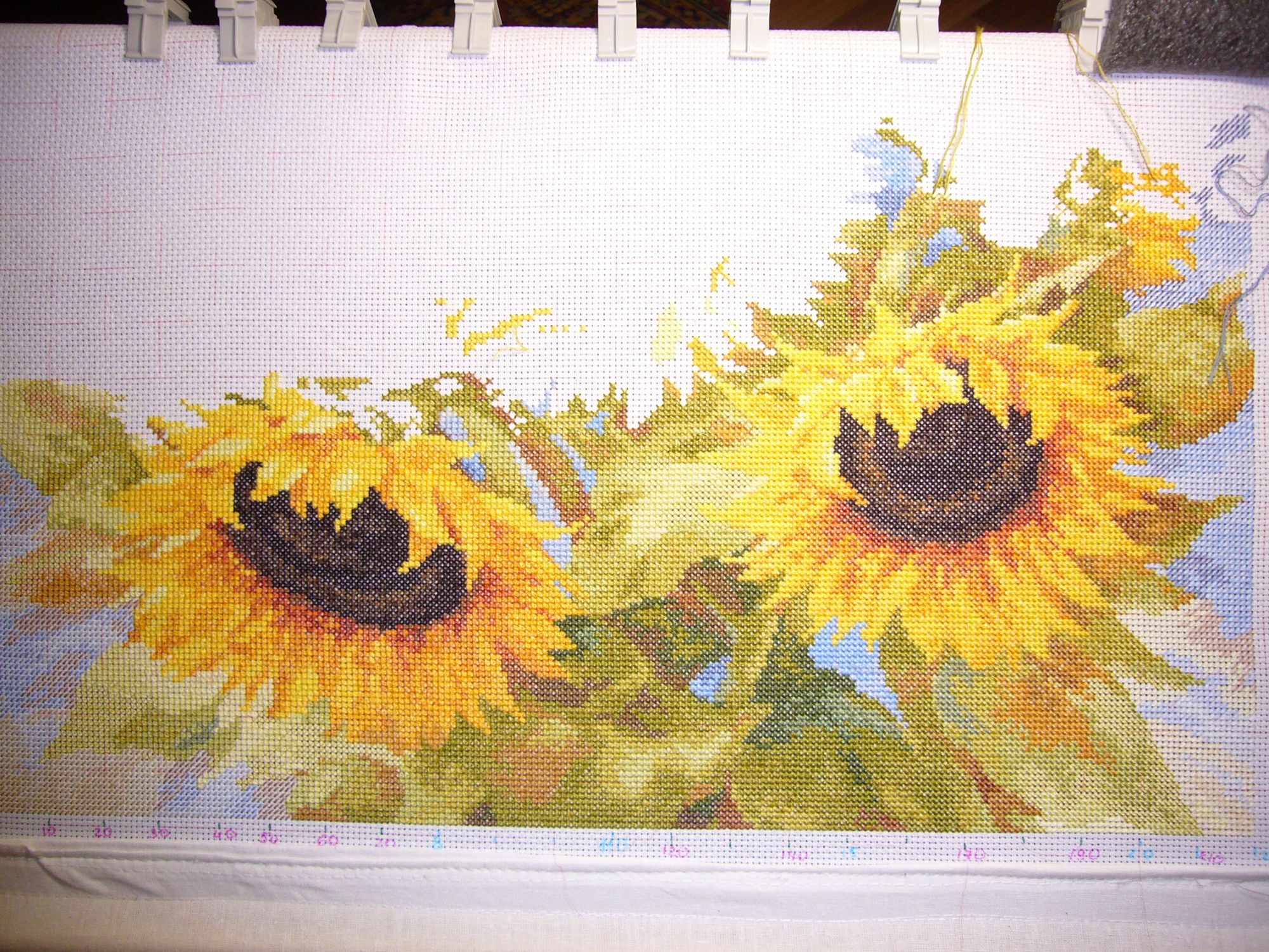 9 февраля 2018 Всем добрый день! Представляю первый вышивальный отчет в этом году. 1. Все силы были отданы подсолнухам (с начала новогодних праздников и неделя в феврале), остальные процессы были заброшены, хоть и очень хотелось их повышивать. Так как решила подсолнухами одарить зятя в феврале, то очень спешила, спасло то, что фон вышивается в некоторых местах полукрестом, дело из-за этого пошло быстрее. Дарить буду не оформленными, пусть оформляют сами на свой вкус. 2. Магнолии мои пока лежат в рулонах, так как перед оформлением решила по бокам пройти по ряду крестиков, чтобы оформленными вместе все 4 части хорошо смотрелись. 3. И еще у меня есть новый процесс, который начала еще в прошлом году и похвастаться им забыла. Птичка от Luca-S B2313. Ноги, чтобы держать рамку у Птички были общие с подсолнухами, поэтому когда «ноги» освободились, она займет свое теперь постоянное место. Канву у Птички заменила, в наборе какая то Bellana 20, заменила на Аиду-16. Нитки мулине по качеству отличаются от тех, которые у Luca-S в мельнице. У птички мулине очень пушиться, хорошо у мельницы нормальные, а то с моей парковкой с кучей ниток и иголок мельница получилась бы мохнатая. 4. Моя простынь (Московский дворик) пока живет на диване, но уже подумываю о том, что пора ей на станок возвращаться. 5. Показываю способ оформление вышивки в подушку. Вышивка чужая, подушку шила моя мамка. На этом кратко все, всех целую и обнимаю. svetles, Nata_Struchkowa, Desha и 15 других сказали спасибо Поделиться сообщением Ссылка на сообщение