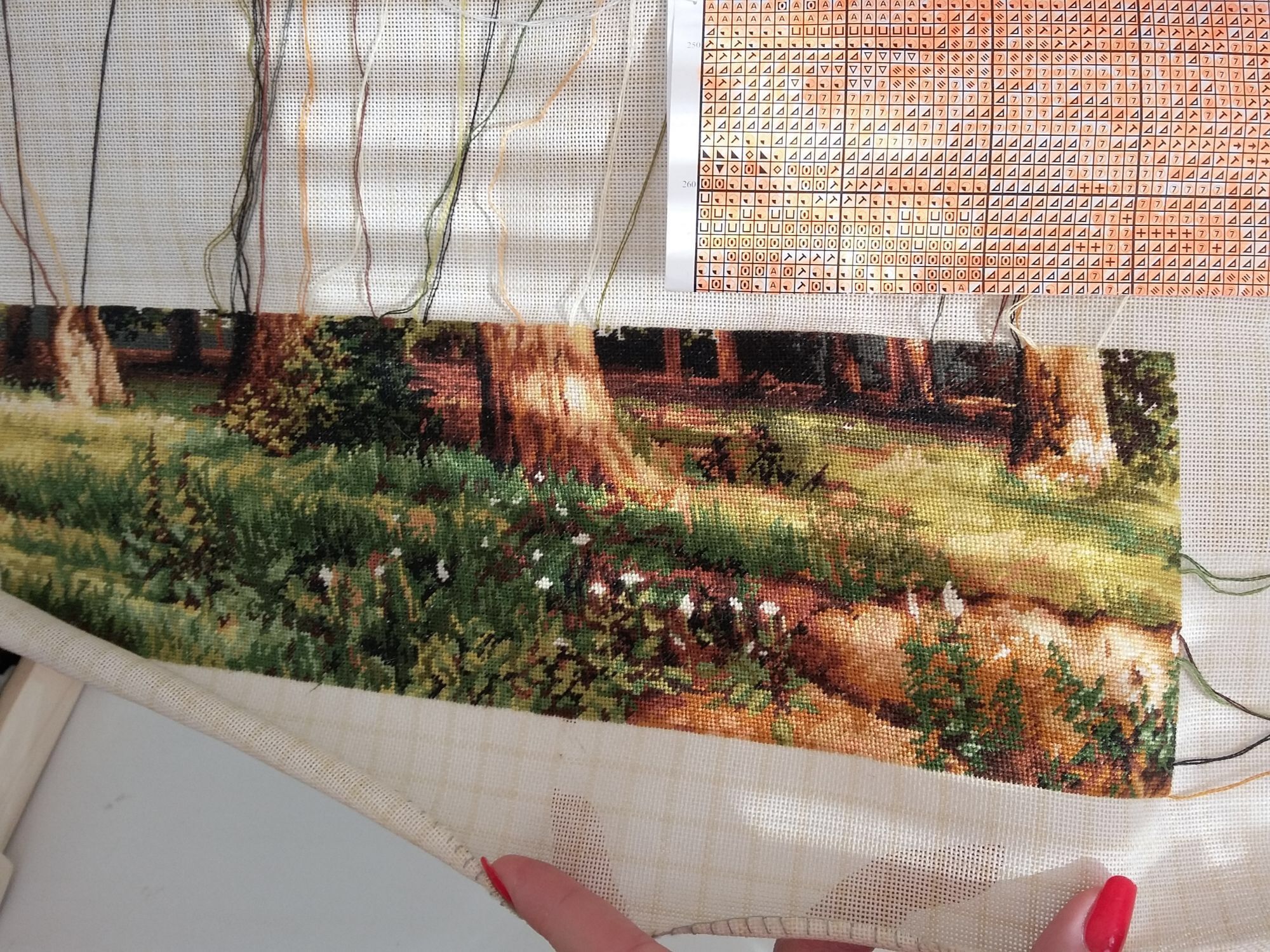 4 октября 2017 Доброе утро, земляне!!! Да, не есть хорошо редко выходить с отчетами, накопилось новостей. Берегитесь, будет много слов и фото!)) Итак, несмотря на оккупацию всей меня двумя не хорошими товарищами – молчуном и неписуном, я потихоньку продолжала шить. Молча. Практически тайно. В итоге Роща прибавила 2,5 листа и нашла второй угол! Да-да, я это сделала!))) было стало Чуть не хватило сил зашить перед отчетом маленький кусочек, но я думаю вы мне простите мою оплошность, так как последняя неделя была насыщена событиями. Как-то ездила к маме и передо мной стала дилемма, что взять с собой пошить, Рощу ж не утащишь)) Покопавшись в шкаПчике, нашла уже покрывающиеся мхом колокольчики. Так появился горшочек, ну или вазочка. было стало Совуля тоже подросла. было стало Мега кайфушный процесс. С процессами на сегодня покончено, далее будут всяки-разны приятности. Второй год подряд я делаю себе подарок на д.р. в виде поездки на ФР. Написано про нее уже достаточно. Потому буду краткой. Поездка удалась тчк Шучу тчк Шучу про тчк, а поездка вышла славной. Прямо с поезда я подхватила насу Масу с аэроэкспресса и мы помчали на встречу мечте новым красивучим выфывкам и Бабаське, которая также прибыла на выставку. Я планировала «только посмотреть» и возможно купить что-нибудь очень нужное))) Так и получилось, во-первых я наткнулась на скатерти от МИ, давно искала себе скатерть и хотела купить Shafaer, но прочитала в отзывах, что качество скатерти в последних наборах просто ужасное, в чем смогла лично убедиться на выставке. Накрахмаленная белая марля за тысячу с лишним мне была совсем не нужна. А от МИ скатерти такого же размера были по 200 рублей! Причем качество тканюшки очень даже приличное. Я довольна как слон! А еще я купила желанный диванный станочек, витринный образец со скидкой, что меня очинна порадовало. 1000 рэ за такую конструкцию по-моему вполне хорошая покупка. Правда некоторые фефочки подхихикивали надо мной, что я в Мск езжу за дровами. (в прошлый раз тащила с ФР гобеленовую раму))))) Нагулявшись по выставке и совершив обдуманные (и не очень) покупки мы отправились на общую встречу, где меня ждал сюприз от Маняшика. Однажды у кого-то в теме я обмолвилась, что жутко хотела бы вышить какой-нибудь красивый домик и в поисках сюжета наткнулась на деревеньку от Доме, мол нужно поискать схему и вышить себе наиболее красивый домик. И что вы думаете? Тут же отклинулась Маришечка Маняша и предложила мне остаточки! Так вот, на встрече мне удалось увидеть вживую отшитую деревеньку! Это оооочень круто, скажу я вам! Домики смотрятся просто волшебно! И невозможно выбрать какой лучше! Маняшик спасибо тебе огромнейшее преогромнейшее! На этом чудеса не закончились, девочки сделали мне просто мега потрясающие подарки на д.р.! Масуля подарила мне очень-очень желанный наборчик. и теперь у меня будет собственная Цыпа! А еще она нашла недостающие красивучие тканюшки для моих Димовских игрушек! Уряяяя! Мафуля, спасибо! Я пищу от щастья! Соскучилась по шерсти и хотела начать Цыпу немедленно, но муж уговорил закончить хоть один процесс… Ну, а Любасик сразила наповал своим сюрпризом)) Фантастический Мишака!!! Он еще и с рамочкой в комплекте! И снова я пищу от восторга!!!! Спасибо, Любасик! Ну и осталось признаться в еще одной покупке, которую я совершила чуть ранее, опять же себе любимой на 