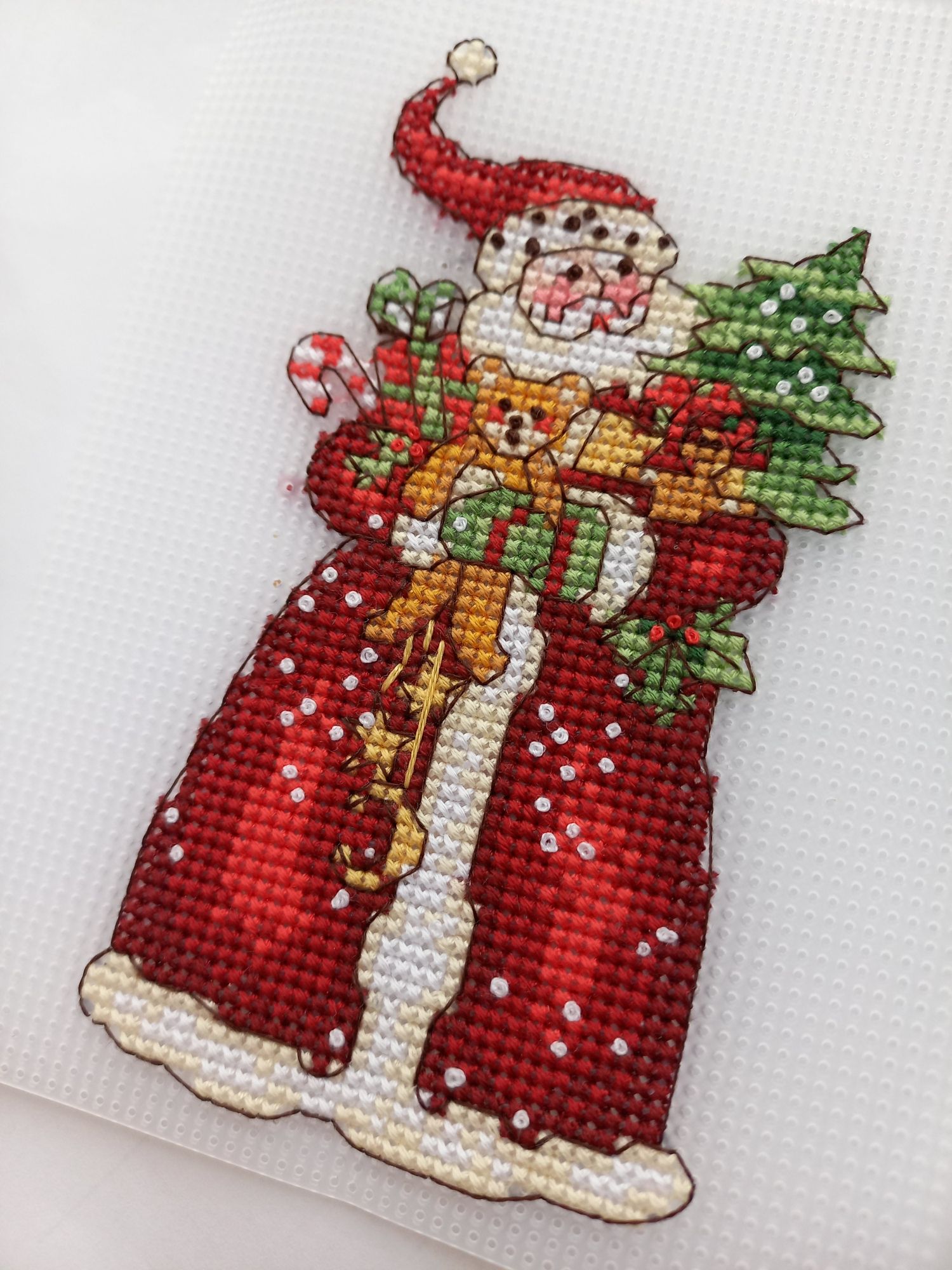 28 августа 2023 Добрый день, земляне! Наконец-то я могу написать. Хотела как лучше, сбросила фотки на флешку, но ноут для меня был недоступен Sue Hillis Designs "Pijama Santa" Не знаю, чем зацепил меня этот дизайн, но как увидела, загорелась. Напоминает старый Дим) Планировала 2-3 Санты отшить (там их целая коллекция), может быть сложится, но позже) Волшебная страна FLK-215 Любимый бисер) пока мне доступен только в маленьких дизайнах) МХ МНСМ51 Как я мечтала об этой варежке... Никак не удавалось купить ее в закупках МХ, мечту исполнила мой замечательный друх, товарищ и брат Маса @Маса Вышилась на одном дыхании эта малютка и доставила тонну удовольствия )) Dimensions 08895 Santa Ornament Начала серию игрушек, их всего 12, но одна из них елка, не уверена, что буду ее шить. Panna J-7173, Васька. Вне закона Вдруг захотелось дошить Ваську. Бросила его давным давно, а тут так соскучилась по равномерке, что срочно вернула его в работу) Не хотелось крутить бахрому, но оказалось это не сложно и быстро. Вместо бэка усы сделала выкладной нитью, надеюсь не пожалею, если когда-нибудь оформлю в подушку) Ну все, я сегодня кратко и быстро, так как моя банда не дает расслабиться. Пока пишу, уже раз 10 их разнимала) Всех обнимаю! Bogdan, Фро-J, maui и 29 других сказали спасибо Поделиться сообщением Ссылка на сообщение