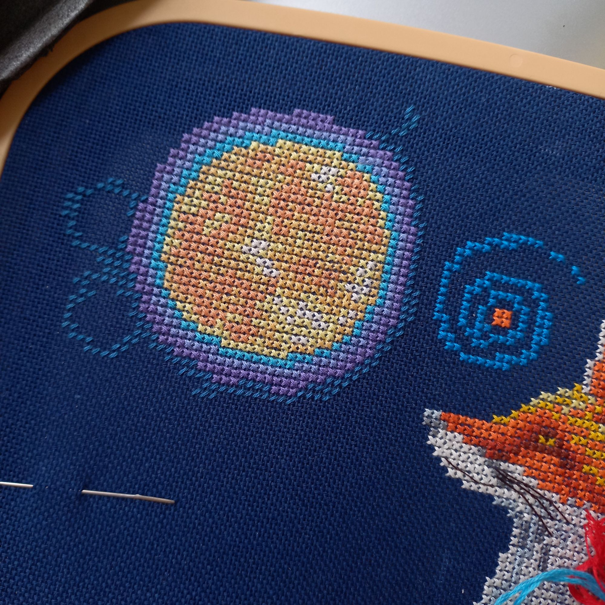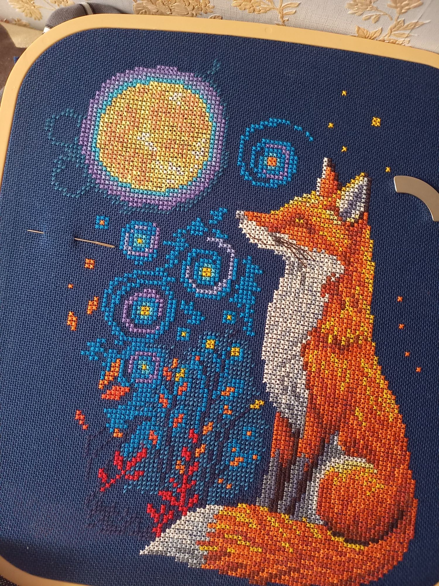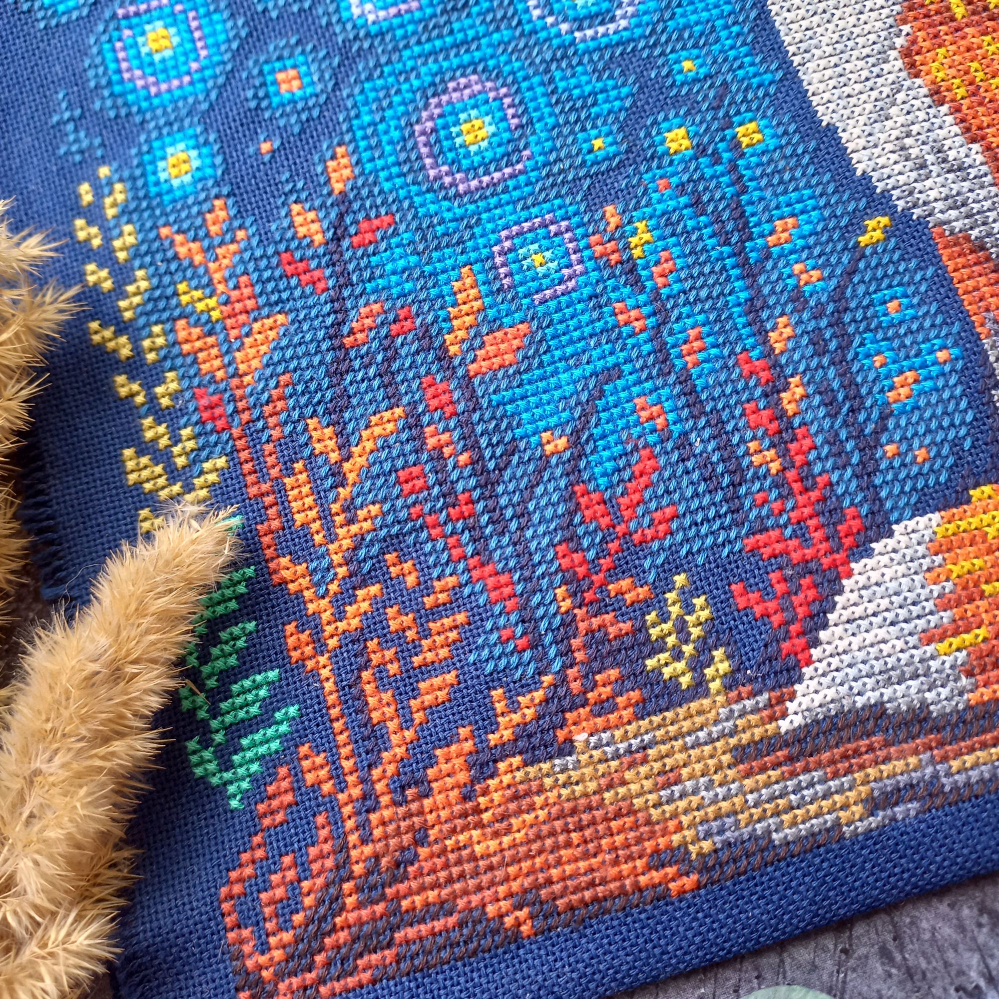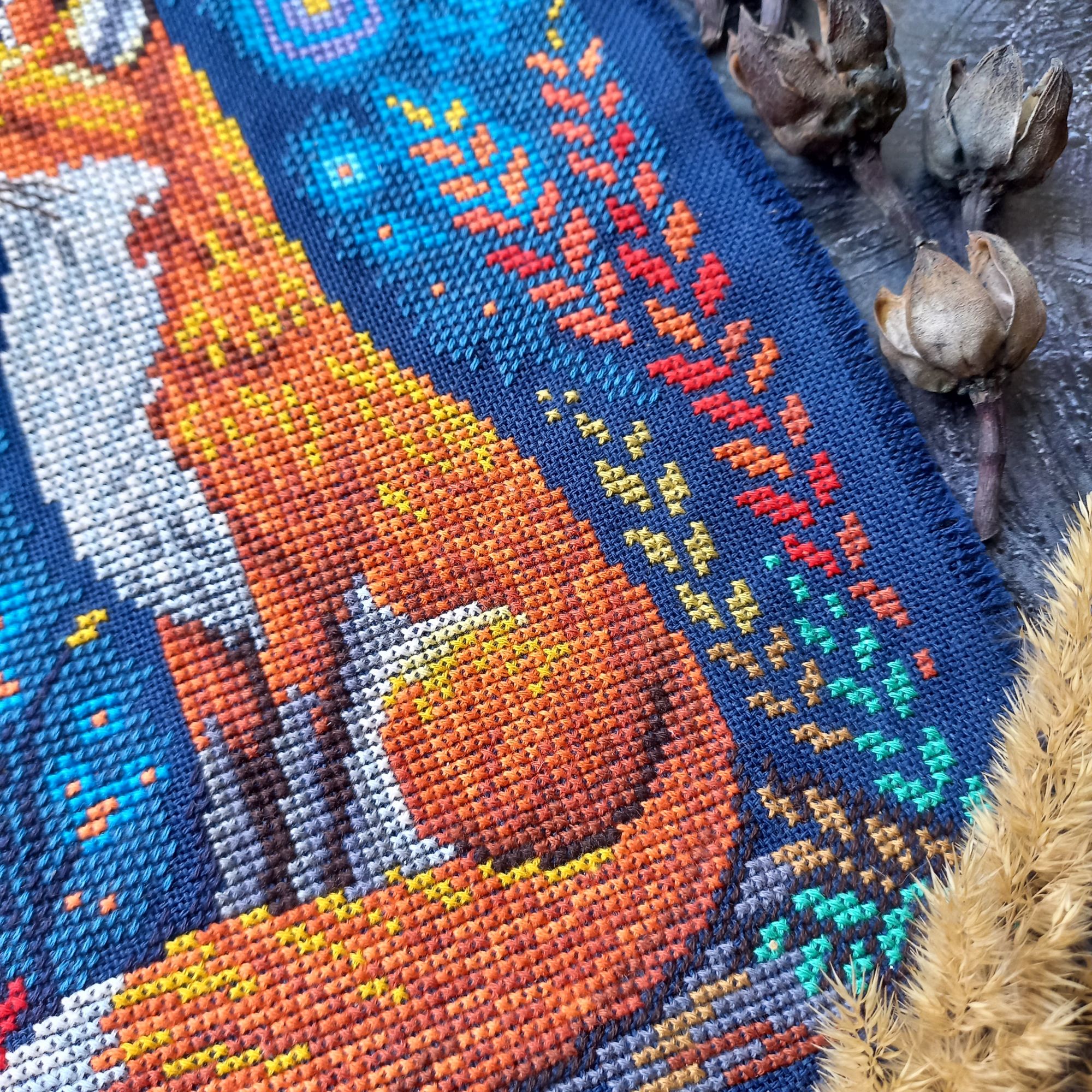 23 мая Доброго дня, земляне! В теме апрельских стартов показывала начало Лисы Патрикеевны от Сделано с любовью. В наборе идет белая Аида и предполагается полная зашивка, я заменила на синюю равномерку и соответственно убрала один цвет мулине из фона и еще один - заменила крест на полукрест. Было: Стало (эти фото в гайку): Очень нравится то, что получилось, удалось немного облегчить дизайн с помощью полукреста. Надеюсь оформить в подушку. Мельница, Оксана Ершова ole4k@, relax_cross_stitch, S4astlivaja и 19 других сказали спасибо Поделиться сообщением Ссылка на сообщение