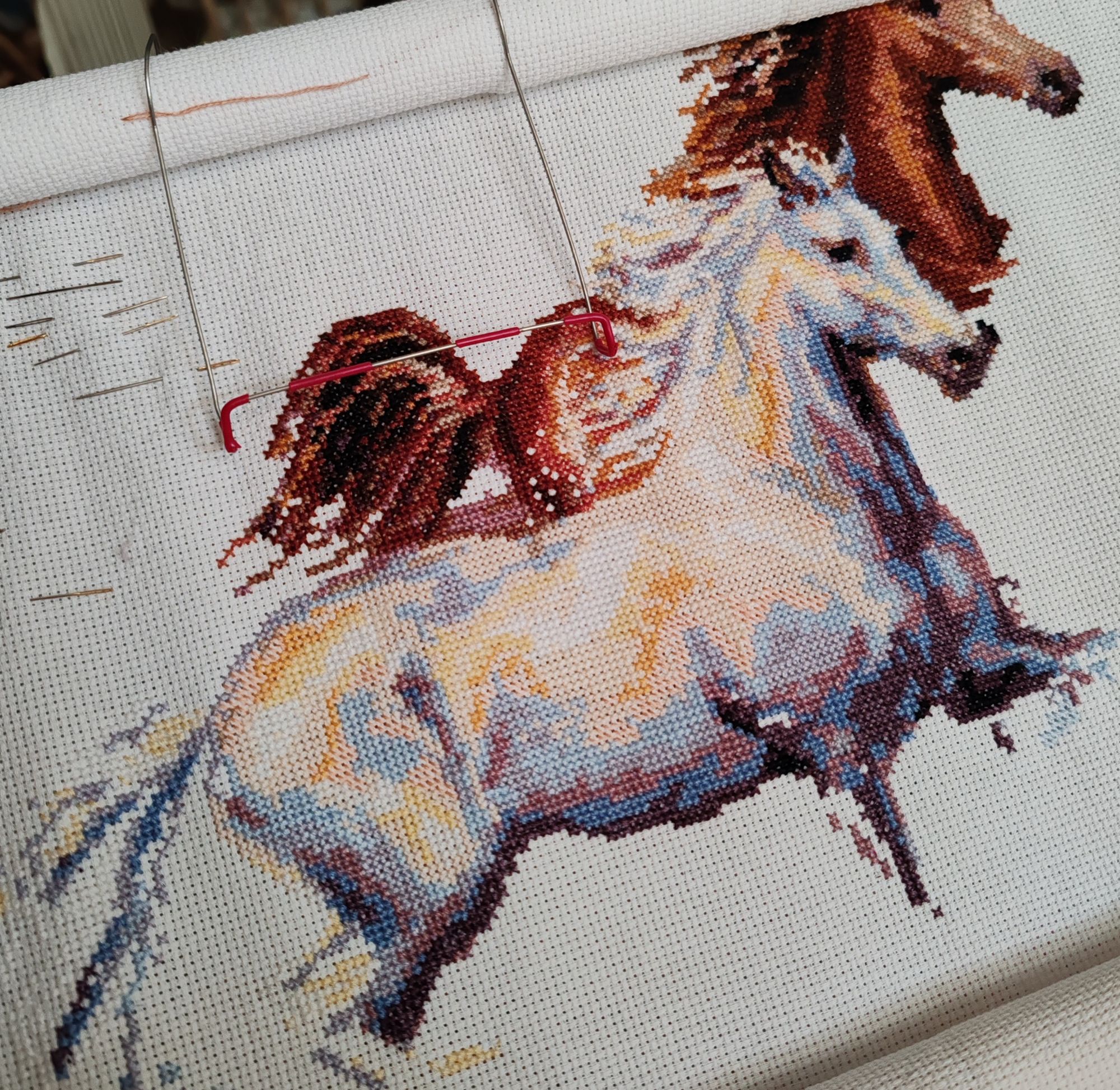 26 ноября 02.11.2025 в 16:15, Цыпа сказал(а): Приветствую, земляне! Зачастила я с отчетами, хочется порядок навести) Покажу многострадальную мексиканскую красотку. О процессе совсем не хочется говорить, ибо он худшее, что было в моей вышивальной практике. Все страдания ради бомбического результата, невероятная красота получается Лошадки Риолис растут, чем очень радуют Вышилась вторая малютка лошадка от МП Студии О-157 Еще один процесс от МПСтудии НВ-905 Начала в гостях у мамы, не было возможности взять равномерку, о чем я конечно сильно пожалела. Не знаю как буду из ЭТОГО делать круглый пинкип с расстройства бросила на этом этапе, надо наьраться смелости дошить. Перешивать точно не буду, хоть сюжет и сипатичный, но не стоит потраченного времени Надя, с удовольствием наблюдаю за вашими процессами. Вы мексиканскую красотку по бумажной схеме вышиваете или через программы? Цыпа сказал(а) спасибо Поделиться сообщением Ссылка на сообщение