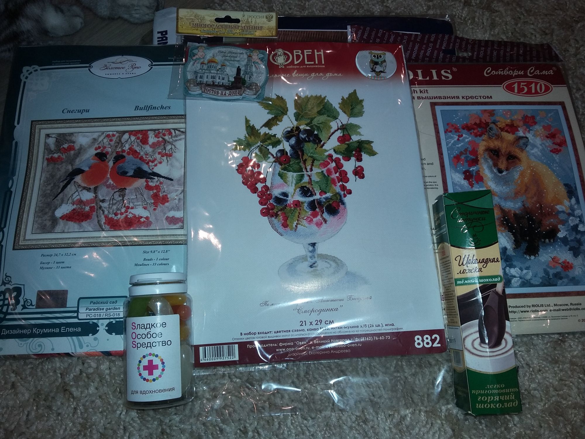 23 марта 2016 Доброе утро, земляне!!! Ща каааак я вам все расскажу!!! Шила эту неделю только клубнику. Дорвалась до бисера!!! В итоге навышивалась так, что в пока желания продолжать в том же духе нет ))) Начинала пришивать мононитью - мамадарагая.... жуть жуткая))) По совету товариСЧей взяла обычную бежевую полиэстровую нить и процесс пошел с песней! Что сказать про набор: бисер - один цвет ушел полностью, остальных осталось много, нитки - жжжжуткие... Видно по крестикам в одну нить - пушатся сильно... и очень удивил подход укладчиков - пара цветов почти закончилась, зато некоторых в наборе так много, что хватит еще чуть ли не на 10 отшивов Ну и о самом главном!!!! Я в наконец-то в пятн-субб попала на почту! Во первых - пришла обменная посылка, как помните я избавилась от ДИМовского Пикника, вот сколько богатств ко мне приехало: я была счастлива)))))))) еще я прикупила пару наборов, но один выпросила у меня подруга для "пробы пера", остался у меня вот такой: И! Самое главное!!!! Третьей посылкой был партизан...... И какой партизан!!!! У меня просто был срыв башки!! Это просто сумасшедший подарок!!! Светик (svetles) спасибо, моя золотая!!! Такой счастливой я не была очень давно!!!! Вот такие богатства ко мне приехали: Это самые мегахочушные наборы!!!! Светуль, КАК можно было угадать??? а еще шоколадная ложка, супер средство для вдохновения и клевые магнитики!!! В общем все выходные у меня были не мегапозитивной волне, я с этими богатствами чуть ли не спала )))) И счастью моему нет предела!! На такой позитивной волне, разрешите откланяться... Всем желаю побольше приятных эмоций и теплых солнечных дней! Ан4оус, mamatata, Nata_Struchkowa и 28 других сказали спасибо Поделиться сообщением Ссылка на сообщение