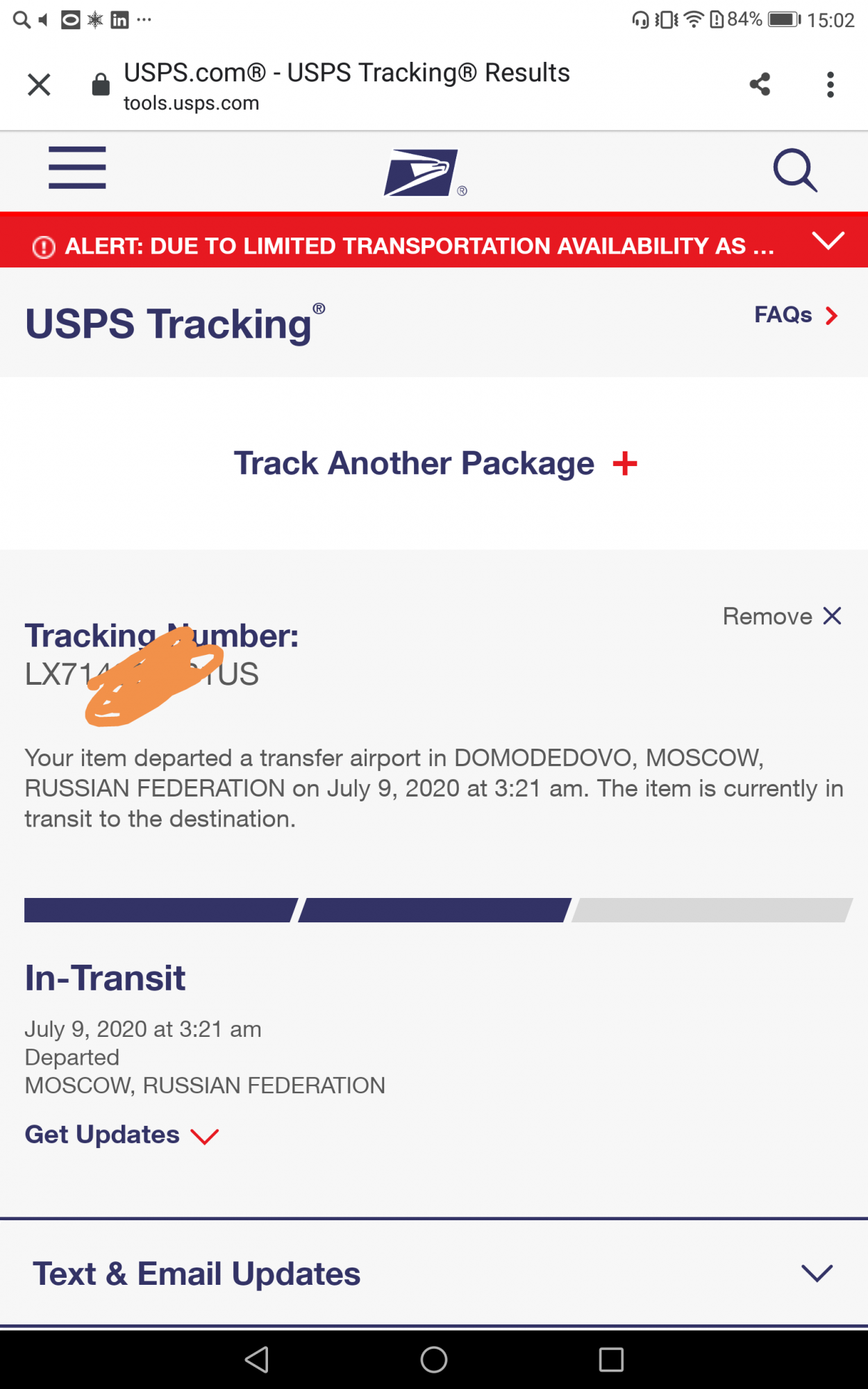 15 июля 2020 7 часов назад, loveferrary сказал(а): Надпись не меняется. Недавно там же заказывала, вот после Домодедово она недели 2 была на таможне. Вы на сайте нашей почты или в их приложении свою посылку видите? В почте россии статус ожидает отправки из сша. А usps смотрю по ссылке в инете EV-a сказал(а) спасибо Поделиться сообщением Ссылка на сообщение