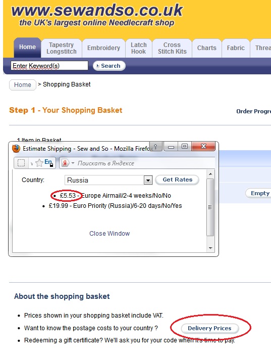 Да, вот еще какой момент: там цена указана с налоговыми процентами для стран содружества. Поскольку мы туда не относимся, на нас этот процент не начисляется и все, что покупается в этом магазинчике, получается дешевле, чем указано в цене (я покупала набор с указанной ценой в 39 фунтов, а заплатила 32), в конечном счете это отражается.