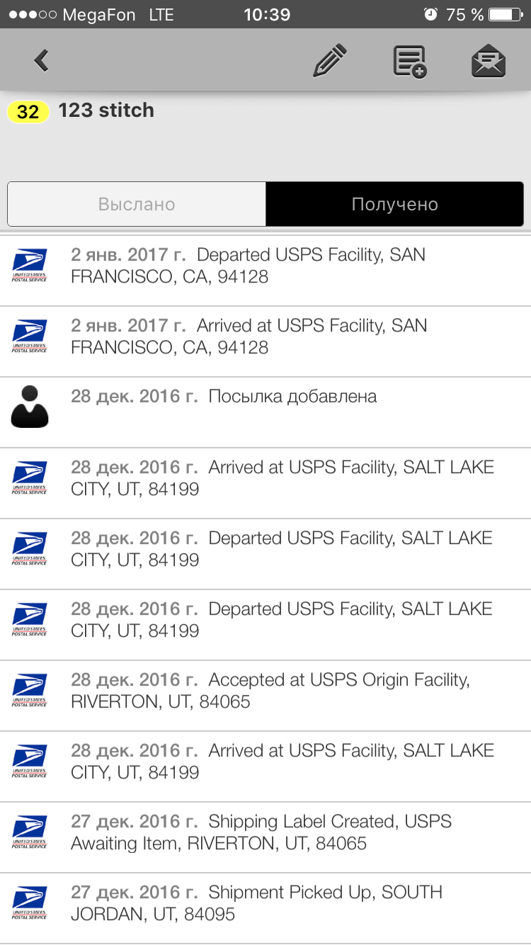 13 февраля 2017 Девочки, кто-нибудь последнее время заказывал что-нибудь на 123Stitch? За сколько доходило? Я сделала заказ 01.02.2017, 1 набора не было, а остальное мне отправили. Быстренько пройдя ряд отделений, посылка покинула отделение в Сан-Франциско 05.02.2017, с тех пор ни слуху, ни духу. Раньше в Россию отправляли из Лос-Анджелеса. Теперь я волнуюсь, посылка уже отправлена в Россию напрямую из Сан-Франциско, минуя Лос-Анджелес, или эта сестра по разуму нашей Почты России уже благополучно посеяла мой заказ и пора писать заяву. И еще там стоит странный статус в разделе Features, "Hold for pickup" (т.е. самовывоз). Кто-нибудь с таким сталкивался? Поделиться сообщением Ссылка на сообщение