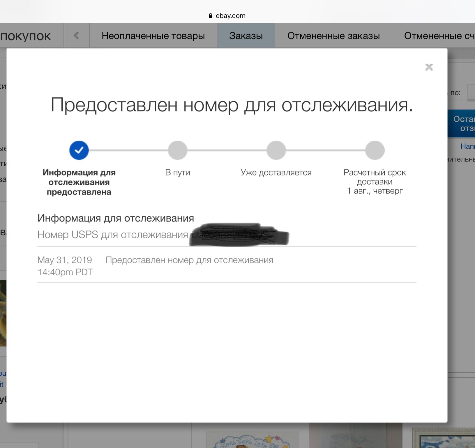 7 июня 2019 Для заказов с ибея нужно терпение как у слона и стальные нервы, ИМХО конечно. У Вас по крайней мере есть номер. Без отслеживания ждать еще "увлекательней". В Штатах посылка еще в аэропорту и на их таможне может полежать, но Вы это уже по номеру видеть будете. JanaTX сказал(а) спасибо Поделиться сообщением Ссылка на сообщение