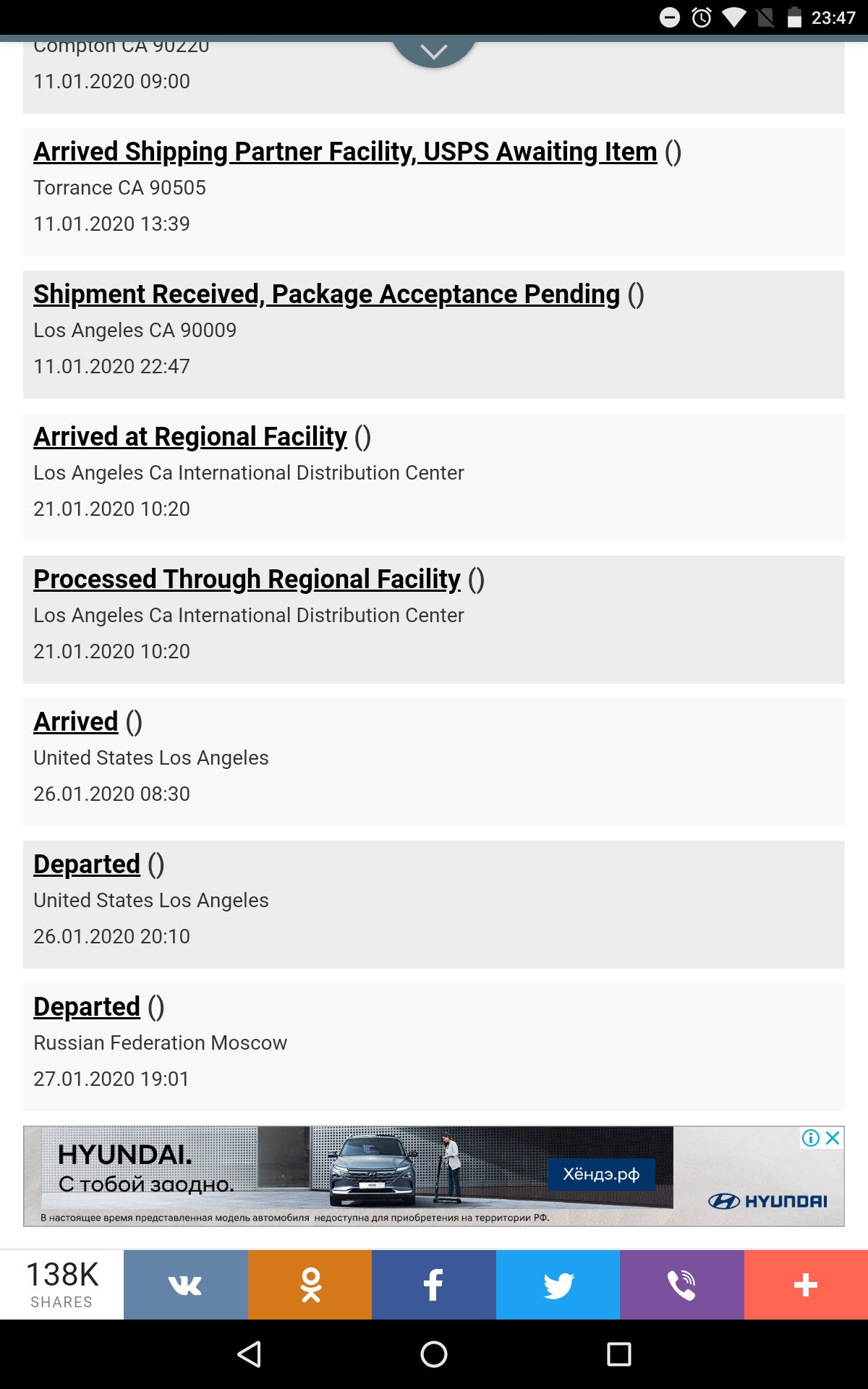 11 февраля 2020 10.02.2020 в 09:20, Shoryok сказал(а): Попробуйте посмотреть на Trackitonline.ru, например. И надо смотреть, какое именно движение было. Вот скрине последнего движения(( Поделиться сообщением Ссылка на сообщение