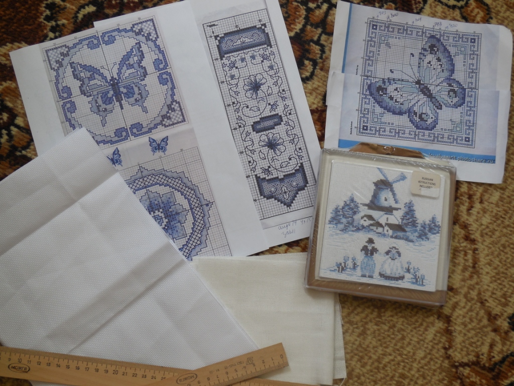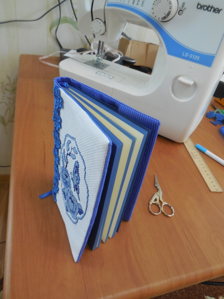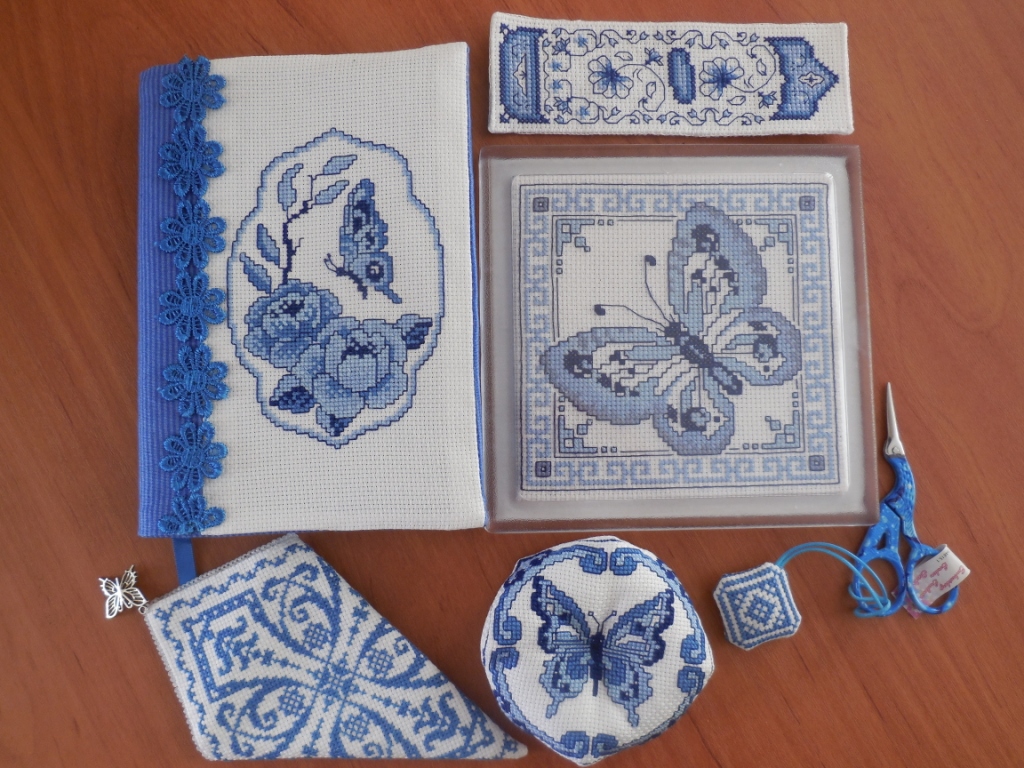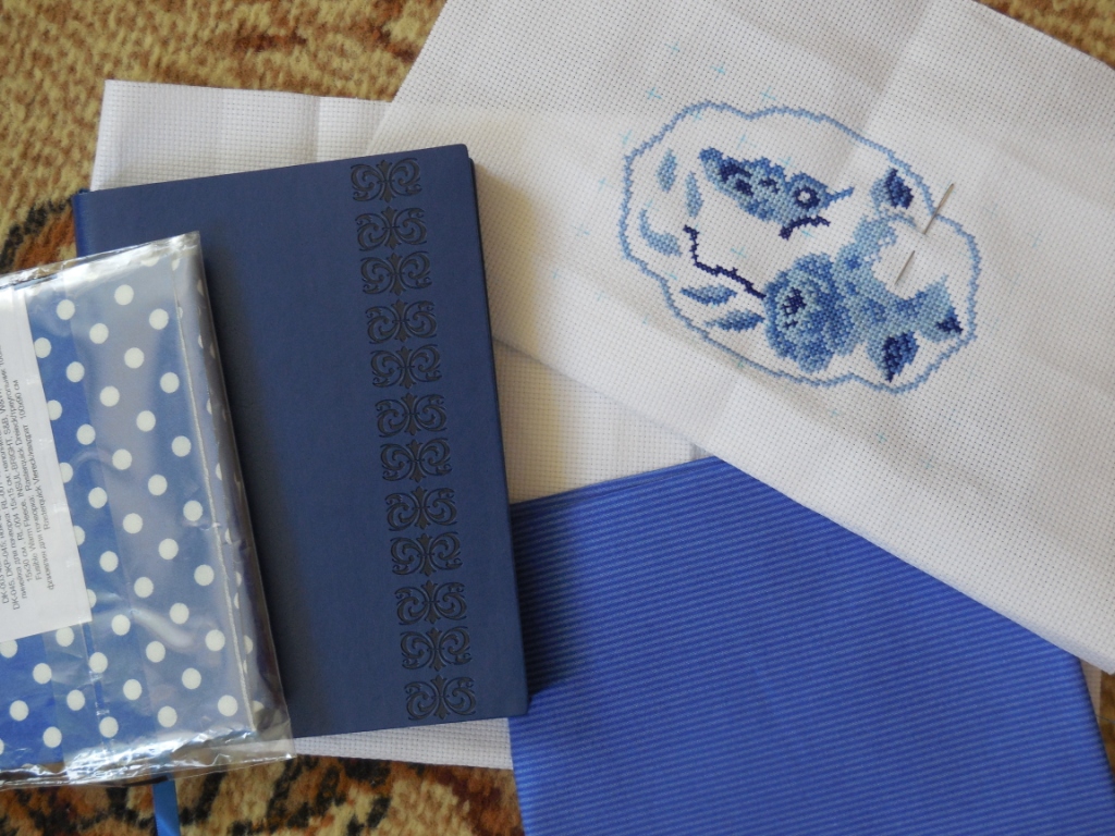 24 сентября 2015 После того,как определилась тема Сюрприза,я стала думать об участии и цвете. Изначально был зеленый цвет и даже что то небольшое вышито... Но потом в голове промелькнуло "Голубая рапсодия"... Что это? К чему это? И начался поиск всего,что можно вышить голубого цвета. Скажу что это мой любимый цвет и все оттенки голубого мне нравятся. После того,как скачала схемы,начались муки творчества... Сразу решила что будет обложка на блокнот и закладка! Я обошла все канцелярские магазины. Даже купила несколько записных книжек,включая книгу для записи кулинарных рецептов... И тут мне попалась записная книжка синего цвета! Это было то,что нужно! На одной из схем увидела подставку под горячее... Ага,у меня есть заготовка. Но схема маленькая...Нашла бабочку,по размерам подходит идеально! И тут я еду во Владивосток и по пути попадаю в рукодельный магазин. И там на дальней полочке нахожу еще одну подставку,да тоже с сине-голубых тонах! Правда рисунок не подходит,не важно,все заменим. И там же покупаю ткань для блокнота. И на кассе вижу ножнички-цапельки голубого цвета! С бискорню было все сложно... Изначально я шила это как кармашек для ножниц. Раз есть ножницы,значит их нужно куда то вложить. Вышивка побывала в Тайланде,шила в самолете. Там,когда решала что приложить к подарку,взгляд упал на палантины. Подобрала в тон вышивке. После завершения вышивки,нужно все собрать! Закладка,маячок и подставка,все достаточно просто и быстро. А вот с кармашком для ножниц я мучилась. Ну ни как не идет и все! И тут я решила-ну раз это бискорню-пусть и будет бискорню! Первый раз,ручки тряслись,но получилось. Правда на обратной стороне немного бекстич перекосился...эх... Но сложнее было с обложкой! Ведь тут нужно было все замерить-пришить,собрать и чтоб было все красиво! Мастер класс отличный нашла,все пошагово,все подробно. И у меня получилось! Показала все девочкам-одобрили и Галина спросила-а почему ты не вышьешь чехольчик для ножниц? Я то уже собиралась сделать из фетра,и все купила. Но нет,решила успею,вышью! И успела. Уже прям перед раздачей адресов,в последний день закончила. Опять же по мастер-классу собрала. Пока все шила,собирала то думала кому же я это все шью? Все стежки без ошибок,крестики без узелков. И сам сюрприз получался легкий и воздушный! В темке начали обсуждение,девочки начали писать о своей готовности. И одна девочка написала что не знает что и как отправлять,ведь первый раз все делает. Я первая ей написала совет. И тут я поняла:вот она,моя получательница! (в прошлом году в зимнем Сюрпризе я подсказывала Марине из Брянска как упаковать и отправить сюрприз и ее адресок получила от Танюши) И когда Танюша прислала адрес,я улыбалась:это она! Изучив ее профиль,почитав ее темку узнала чуть ближе Женю. Отправилась докупать дополнения. Баночку для чая я купила давно,я их просто скупила все разом и подбирала,какая подойдет. И конечно я решила что сюда идеально подойдет чашка "Гжель" и полотеночки-прихваточки в тон. Чашек чайных-кофейных выбор большой. Долго выбирала. Не знала что Женя больше любит чай или кофе. Но эта чашка понравилась больше всех. На кассе решила проверить чтоб стоял штампик "Гжель",переворачиваю,а там наклеечка,на ней надпись Чайная пара "Голубая рапсодия"!!!! Вот как тут не поверить в чудеса? Для сынишки книжку выбирала долго... Но снова руки потяну