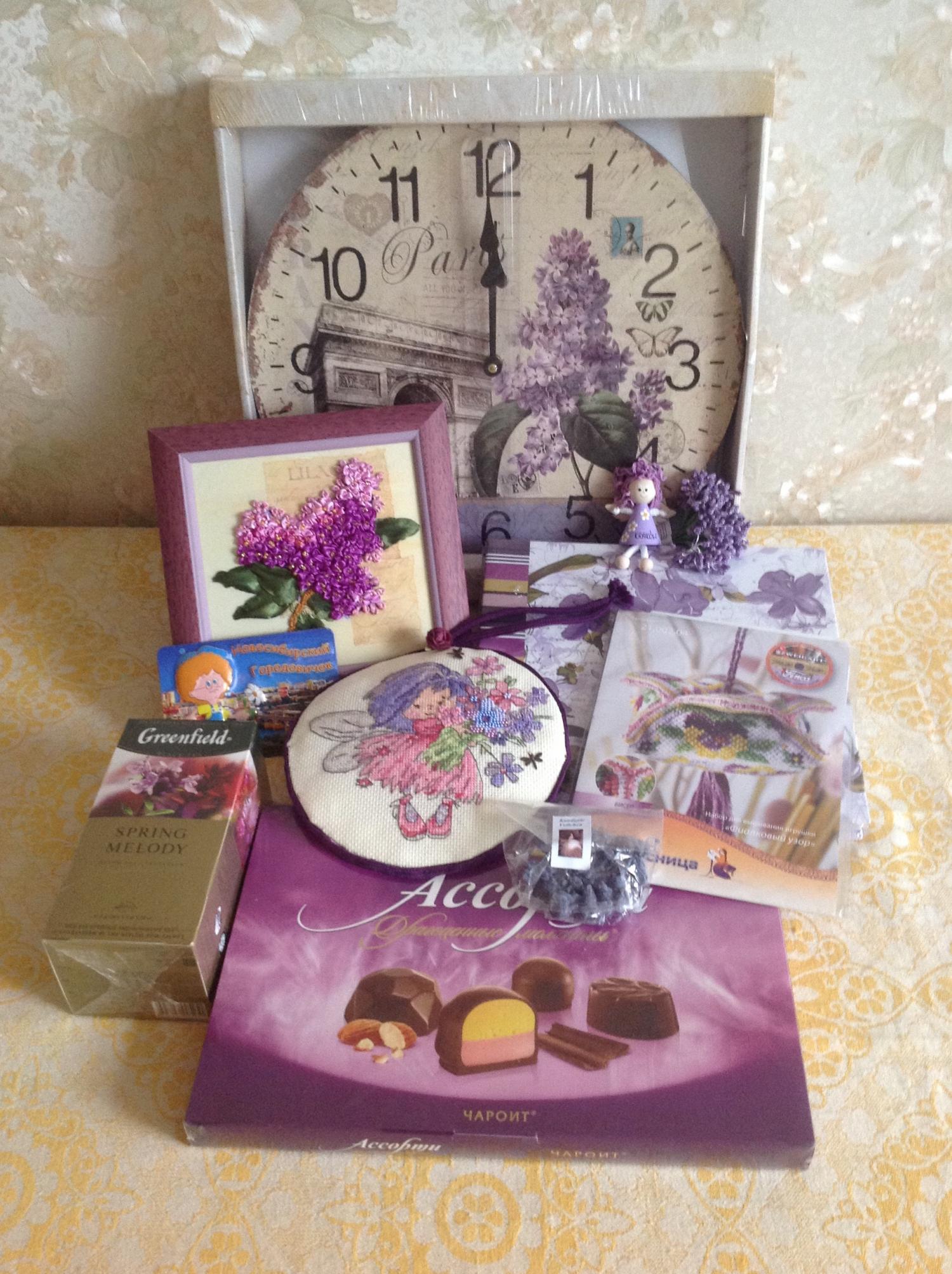 25 сентября 2015 Всем привет! Вот и я с отчетом о замечательном фиолетовом подарке от Марины (arunrie). Как уже писала, такой большой коробки я раньше еще не получала. Еле до дома дотащила. ))) Вот она, заветная коробочка. А там... мешочки! А в мешочках столько всего красивого. ))) И упаковочной газетки тоже много, хоть коробочка и помялась с одной стороны, все доехало в целости и сохранности. И начала я посылку распаковывать. Честно говоря, даже не знала, с какой стороны открывать коробку. Поэтому уж не скажу, что мне сначала попалось - верх или низ посылки. ))) Но когда все подарки вызволила из плена упаковочных мешочков, вот что я там нашла. Рукодельная часть. Замечательная феечка с огромным букетом цветов. ))) Там даже бисерный цветочек в букете есть, все блестит и переливается. Рассматривала и рассматривала, но только вот сейчас и заметила, что там еще и стрекозки-чармики вокруг букета летают. ))) И оформлена она в большой красивый пинкип. Пинкипа у меня еще не было, поэтому очень рада такому подарку! Уже нашел свое место в моем творческом уголке. А еще я в коробке нашла невероятно красивую шкатулку с веточкой сирени из лент. ))) Там тоже бисеринки и все такое блестящее и аккуратное. Очень люблю сирень - для меня она самый весенний цветок здесь. Особенно потому, что во дворе, где я росла, много кустов сирени. И это одна из стойких ассоциаций с родительским домом. ))) Но это еще не все. В шкатулочке тоже подарочки прятались. Вот такой вот ангелок-магнитик и веточка лаванды. Ангелочка я на холодильник не отдам, чтобы не разбили ненароком, будет у меня в комнате жить и радовать своим видом. А лаванду пристрою на кукольные дела. )) И вместе. Еще в посылке оказались вкусняшки. Чай Гринфилд - мы чаи этой марки пьем с удовольствием, так что полное попадание. ))) Конфетки ассорти - выглядят вкусно, но пока еще не открывала. Вечером все соберутся, вот и попробуем. ))) Но чего точно не ожидала в посылке увидеть, так это засахаренные фиалки. Марина, спасибо! Еще в коробочке нашелся очень красивый альбом для фотографий в тон всего подарка. Теперь есть повод сделать много новых фотографий, чтобы оформить их в этот альбом. ))) На дверцу холодильника отправился большой магнитик с новосибирским городовичком. А ко мне в закрома - наборчик "Фиалковый узор" от Марьи искуссницы. Ура-ура! Очень полюбила "кривульки", поэтому с огромным удовольствием вышью этот набочик. А теперь главная причина того, почему коробка была такая объемная. Марина мне прислала... настенные часы! Вот это оказался сюрприз так сюрприз! Удивлена и обрадована была безмерно. ))) Часы точно не ожидала увидеть в посылке. В пути лопнула упаковочная пленка, но сами часы целы. И вот весь подарок целиком. Мариночка, спасибо огромное, очень рада получить такую красоту!!! Все пригодится и найдет свое место в моем доме! letka, dolli7, чеба и 35 других сказали спасибо Поделиться сообщением Ссылка на сообщение