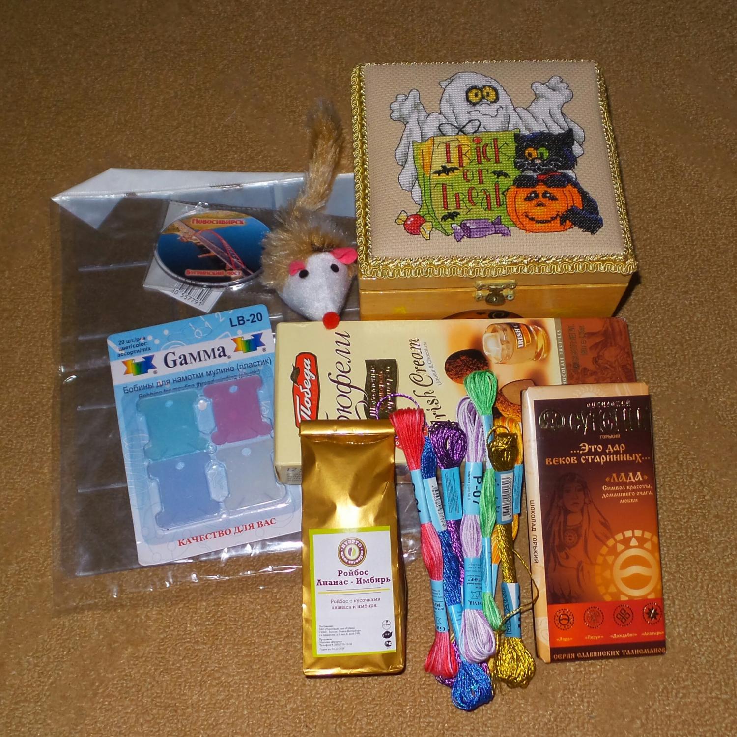 22 октября 2015 Простите за сбивчивый почерк, меня переполняют эмоции!!! Вчера вечером мне Юля прислала номер трека. Я честно не подглядывала, но посмотрев на номер индекса мне подумалось, что пришел подарочек издалека. Сегодня достаю извещение, а там большими буквами написано: НОВОСИБИРСК! Ко мне приехал сюр от Женечки Фро-J! Бегу быстрей на почту. "Дайте мне скорее мою посылочку!". Приносят... пухленькая, загадочная, так и шелестит: "открой меня скорее!". а мне еще в магазин надо. мысли разбегаются. какие продукты, если меня ожидает чудо! (конечно, половину забыла купить) Бегу домой. Как же долго едет лифт на 16 этаж!!! У порога встречает кот. Видно, что он тоже хочет открыть пакетик поскорее. Дрожащими ручками разрезаю пакет и... обалденский запах шоколада и трюфеля... мммм... достаю сластюшки и чай с имбирем и ананасом, прям как я люблю! Дальше появились бобинки и органайзер для ниточек! И вот, шелестя, я достаю самое заветное... Я не поверила своим глазам! это... это шкатулка!!! Вы только посмотрите какая она яркая!!! а сбоку еще и котик нарисован и звездочки! Открываю и оказывается, что на этом подарки не заканчиваются! В шкатулочке с расписной крышечкой паучок охраняет ниточки, магнитик (классный у вас мост!) и мышку для котанского! Ленику мышка очень понравилась! Сразу ускакал с ней в туман коридора! Вот так выглядит мое сокровище Женечка! Потрясающий подарок!!! Шкатулочка - произведение искусства! Столько эмоций, что я просто не могу выразить словами!!! Спасибо тебе огромное за такое счастье!!! P.s. заварила чай и обнимаюсь со шкатулкой. просто не могу ее выпустить из рук! Света,поздравляю с получением такого чудесного сюрприза!Шкатулочка классная!И привидение на ней доброе и совсем не страшное. B.unny и Krelina сказали спасибо Поделиться сообщением Ссылка на сообщение