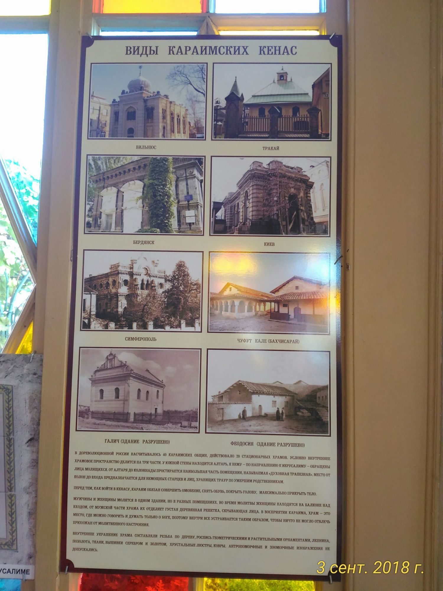 17 сентября 2018 И снова фото не для гаечки! Итак, Евпатория! Сразу скажу, город мне понравился, с многовековой историей, самобытный, зеленый... история Евпатории переплелась с историей разных народов...Керкенитида, Гезлев - это все Евпатория. В центре города, а точнее на территории Старого города чудное туристическое место...Малый Иерусалим...получил это название, поскольку мечеть соседствует с православным храмом, синагогой, караимскими кенасами и армянским храмом. А какие интересные фасады домов! мечеть Джума- Джами синагога Егие-Капай Мне хотелось посмотреть караимские кенасы и мы взяли там экскурсию. Я думала,что караимы - это национальность, оказалось , что караимы могут быть как по национальности, так и по вере. Один из самых малочисленный народов на нашей планете, не больше двух тысяч человек, но фамилии назывались экскурсоводом довольно известные. Думаю, кому интересно, найдете информацию в инете . Кенаса - это молитвенный дом караимов Ну и собственно то, зачем мы поехали в Евпаторию...море и пляж...чистейшее море и широкий песчаный пляж. Мы так и не доехали до пляжа Лазурный берег, потому как прямо под нашими окнами был ничуть не хуже А так как путешествие наше было недолгим, то мы съездили еще только в Бахчисарай, посмотрели Ханский дворец , Чуфут кале ( это пещерный город-крепость) и пещерный Свято-Успенский мужской монастырь. Ханский дворец ... зал Дивана аутентичные фрески гарем и тот самый " Бахчисарайский " фонтан Километрах в двух от дворца находится пещерный монастырь . Поднимаешься в гору и видишь такую красоту кельи монахов находятся в пещерах и какие-то постройки располагаются ярусами и крепятся прямо к скале монастырь возрождается и ,как сказала нам экскурсовод, тут хотят сделать Крымскую лавру. А пройдя еще примерно километр в гору можно увидеть пещерный город Чуфут кале. Три из четырех подходов к крепости - это отвесные скалы. Внутри города было много сооружений, склады, мечеть, казармы для гарнизона, около 300 жилых домов. А вот погода к концу путешествия нас подвела. На Крым обрушился шторм, что происходило в Ялте по TV показали, но досталось и Феодосии, куда я хотела заехать эти фото из ВК. Не хотела бы там оказаться тем вечером, в Евпатории дело кончилось сильнейшим ветром. Да и на непогоду мой организм стал реагировать самым безобразным образом, так что я сама себя теперь боюсь Знакомиться с городом, где накануне бушевала стихия я не захотела, да и в галерею Айвазовского, как оказалось, в дождь не пускают, и прогноз погоды не радовал совершенно. Подумали и решили возвращаться домой. А вот в гости мы заехали, к Лене @alena.corobova2012 Леночка, спасибо тебе еще раз! Вот таким мы увидели Крым. Конечно многое, и возможно самое интересное , осталось за кадром. Когда-нибудь...потом... makalicha1970, Desha, Камма80 и 26 других сказали спасибо Поделиться сообщением Ссылка на сообщение