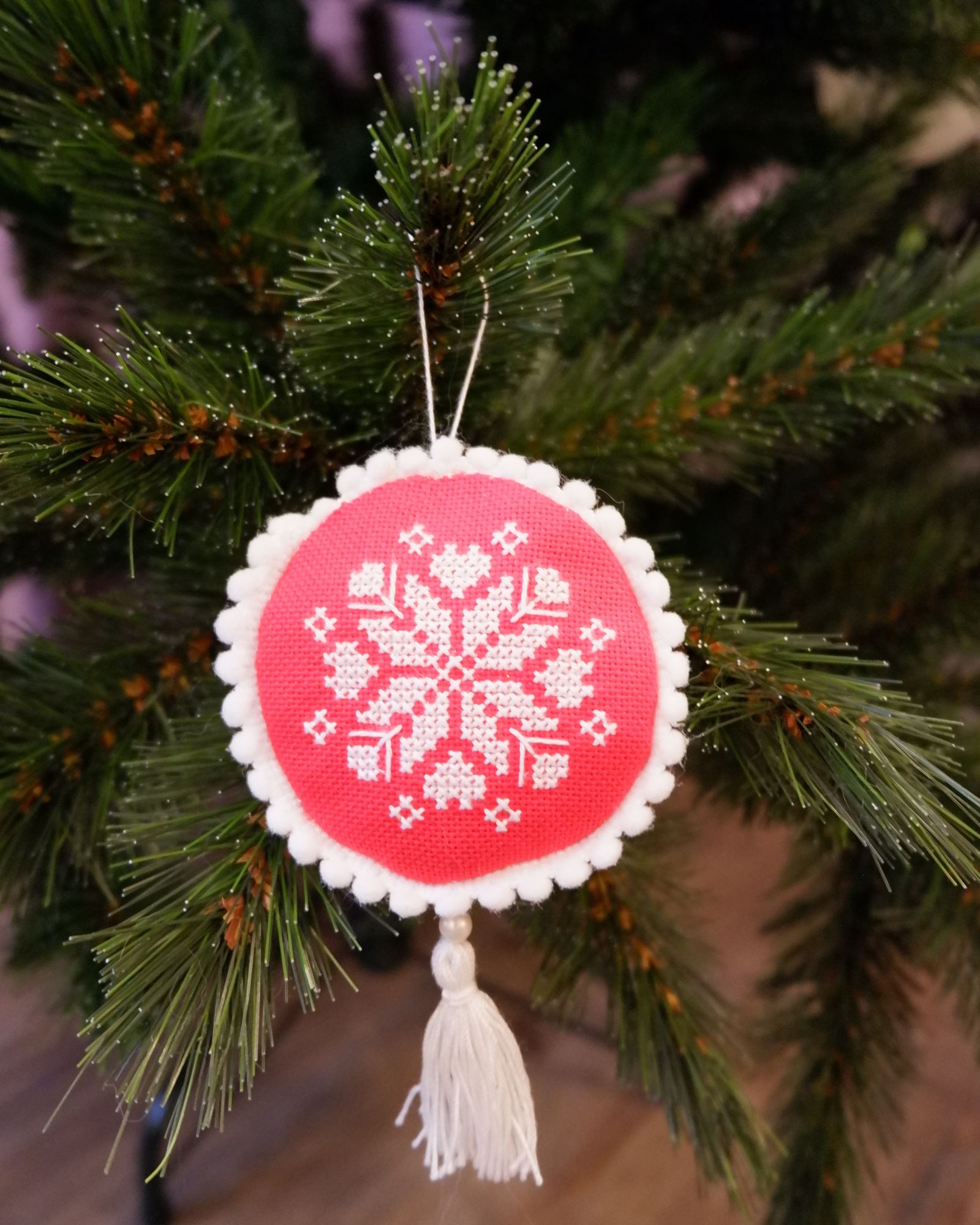 6 января 2019 Почитала сегодня ваши отчеты, вдохновилась и решила, что и мне хватит лениться и пора уже написать. Получился он новогодний по содержанию, что вполне соответствует моменту. Готова моя салфетка, Permin Hardanger snowflake Вышивала я ее дольше, чем планировала, потому как постоянно косячила, распарывала и делала заново. Должна сказать, что мои претензии по поводу ниток оказались не обоснованы, в набор вложены два вида ниток, тонкие для ажура тоже есть, я их просто не разглядела. Ниток достаточно, еще остались, запас канвы тоже есть, можно вышивать и на станке и на пяльцах. Хочу еще раз сказать спасибо Танюше @mamatata, которая познакомила меня с этой техникой вышивки и многому научила и помогала. Девочки, если кто-то тоже захочет попробовать, очень советую тему в совместниках Новогодние игрушки в стиле хард, все доступно и понятно. Я периодически туда ныряла, если что-то забыла. И мое личное достижение: я наконец научилась делать пико! Ну и фото в интерьере Очень давно мне хотелось вышить снежинки к Новому году и в этот раз я материализовала свое желание, тем более,что имею аж две новогодние книжки, где эти схемы есть. Вешала и отдельно каждую на елку, и в виде гирлянды небольшой, по настроению. А сегодня сделала еще небольшую игрушку На этом вышивальные новости закончены. Всех поздравляю с Рождеством! Catopuma, irisheckin, Хозяйка смешных зверей и 32 других сказали спасибо Поделиться сообщением Ссылка на сообщение
