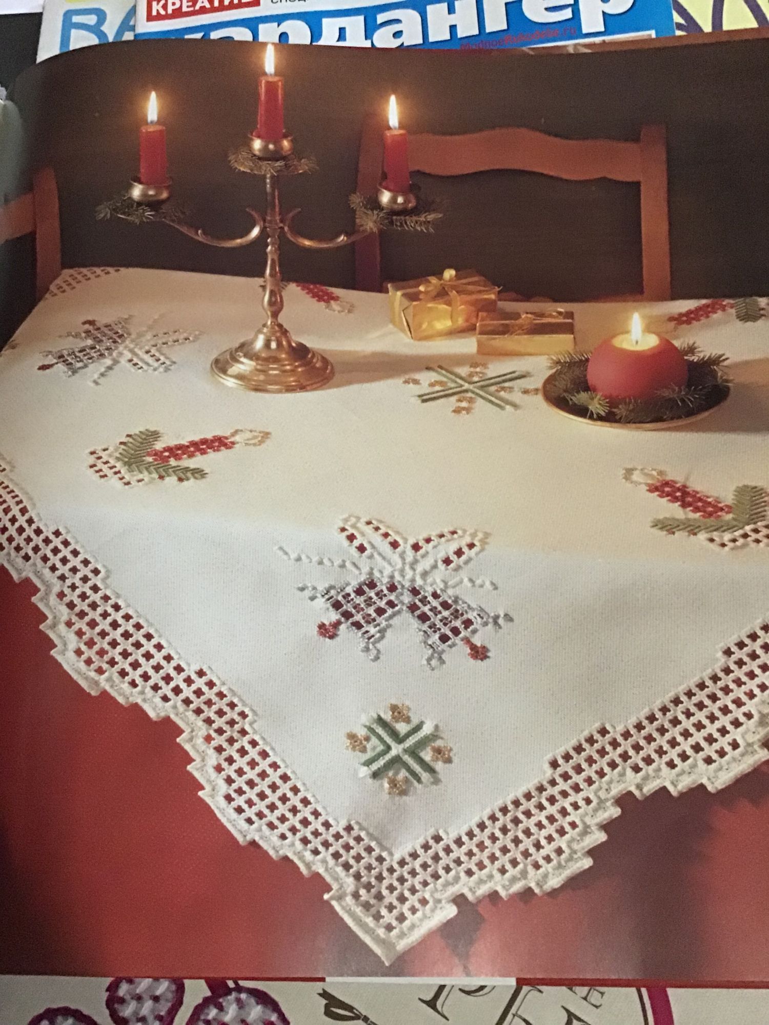 25 марта 2019 Да, нить крепить надо надежно, это точно. Лена, я полезла смотреть на свою скатерть- у меня она выглядит иначе, чем твоя, смотри: И мою надо вышивать в две нити. Любопытненько... Поделиться сообщением Ссылка на сообщение