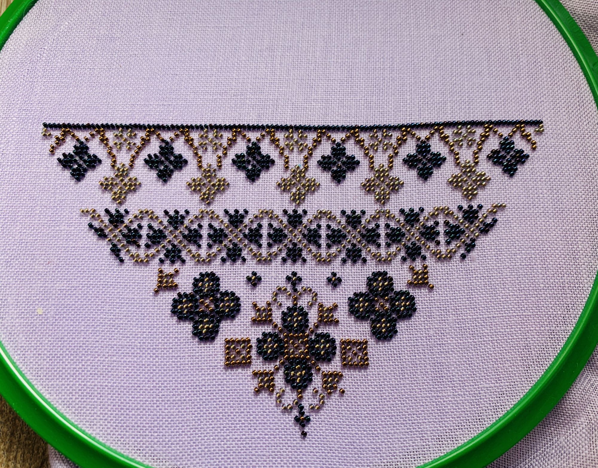 27 апреля 2020 Не прошло и двух недель ( не прошло!) , как я выполняю своё обещание Всем привет!!! Отчеты у меня пишутся плохо, зато вышивается, хотя мне опять кажется, что медленно и мало. Начну со Стоянки..Царевна-Лебедь... в совместнике показывала, но и тут продублирую, чтобы фото попало в гаечку Очень красиво и очень тяжело даётся. Работа встала, так как один цвет ниток уже полностью закончился и в моих запасах его не оказалось, такая ситуация с невозможностью зайти в магазин и купить даже в голову закрасться не могла. А отшив Лены lenning раззадоривает, я уже решила взять просто похожий немного цвет и продолжить. Полезла искать по наборам сегодня и нашла нужный цвет ДМС в Херитаже, там же ключ с номерами и в первом же наборе с панелькой я его увидела. Продолжению царевны быть в ближайшее время! Дальше Design Works Молодожёны хорошо продвинулась, но и от неё стала уставать, шью-шью, а трава все не заканчивается...И так захотелось мне чего-то небольшого и изящного! Мысленно я давно подбиралась к этому дизайну, но начинать было страшно...и страшно интересно тоже. Этот дизайн из серии «Русские сердца» , у меня есть два варианта, схема для вышивки нитками «Москва» и набор для вышивки бисером «Екатерина Великая», вот его то я и начала... Reflets de soie, Collection Coeurs Russes “Grande Catherine” Это картинка для обложки процесса. и мой отшив в наборе схема, бисер Toho три цвета , игла и открытка. Игла очень понравилась, она короткая, мне было удобно. В схеме нашла небольшую ошибку, был пропущен значок, и на скрине отшива тоже была ошибка в этом месте, невышитый этот значок и несколько ещё с ним рядом. Поэтому свой вариант буду считать идеальным Вышивала на льне Эдинбург 36 каунта, цвета фиалки (5120) Несколько раз порывалась сесть за шитьё, но стресс творчеству мало способствует, может сейчас в отпуске до чего-либо созрею. А пока это все! ЕленаМ, Egelia, alena.corobova2012 и 39 других сказали спасибо Поделиться сообщением Ссылка на сообщение