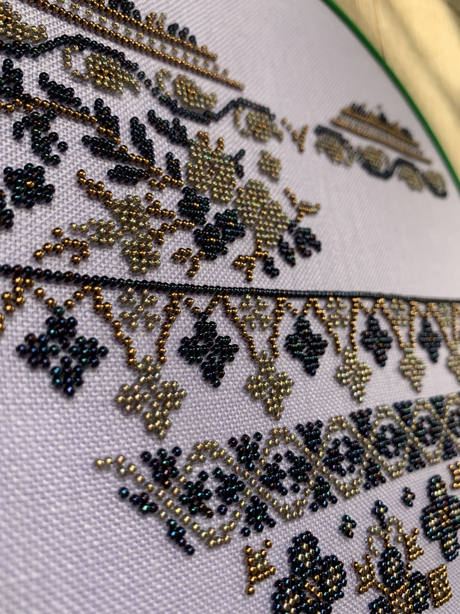 27 апреля 2020 Не прошло и двух недель ( не прошло!) , как я выполняю своё обещание Всем привет!!! Отчеты у меня пишутся плохо, зато вышивается, хотя мне опять кажется, что медленно и мало. Начну со Стоянки..Царевна-Лебедь... в совместнике показывала, но и тут продублирую, чтобы фото попало в гаечку Очень красиво и очень тяжело даётся. Работа встала, так как один цвет ниток уже полностью закончился и в моих запасах его не оказалось, такая ситуация с невозможностью зайти в магазин и купить даже в голову закрасться не могла. А отшив Лены lenning раззадоривает, я уже решила взять просто похожий немного цвет и продолжить. Полезла искать по наборам сегодня и нашла нужный цвет ДМС в Херитаже, там же ключ с номерами и в первом же наборе с панелькой я его увидела. Продолжению царевны быть в ближайшее время! Дальше Design Works Молодожёны хорошо продвинулась, но и от неё стала уставать, шью-шью, а трава все не заканчивается...И так захотелось мне чего-то небольшого и изящного! Мысленно я давно подбиралась к этому дизайну, но начинать было страшно...и страшно интересно тоже. Этот дизайн из серии «Русские сердца» , у меня есть два варианта, схема для вышивки нитками «Москва» и набор для вышивки бисером «Екатерина Великая», вот его то я и начала... Reflets de soie, Collection Coeurs Russes “Grande Catherine” Это картинка для обложки процесса. и мой отшив в наборе схема, бисер Toho три цвета , игла и открытка. Игла очень понравилась, она короткая, мне было удобно. В схеме нашла небольшую ошибку, был пропущен значок, и на скрине отшива тоже была ошибка в этом месте, невышитый этот значок и несколько ещё с ним рядом. Поэтому свой вариант буду считать идеальным Вышивала на льне Эдинбург 36 каунта, цвета фиалки (5120) Несколько раз порывалась сесть за шитьё, но стресс творчеству мало способствует, может сейчас в отпуске до чего-либо созрею. А пока это все! Butterfly, Molly21, Путешественница и 39 других сказали спасибо Поделиться сообщением Ссылка на сообщение