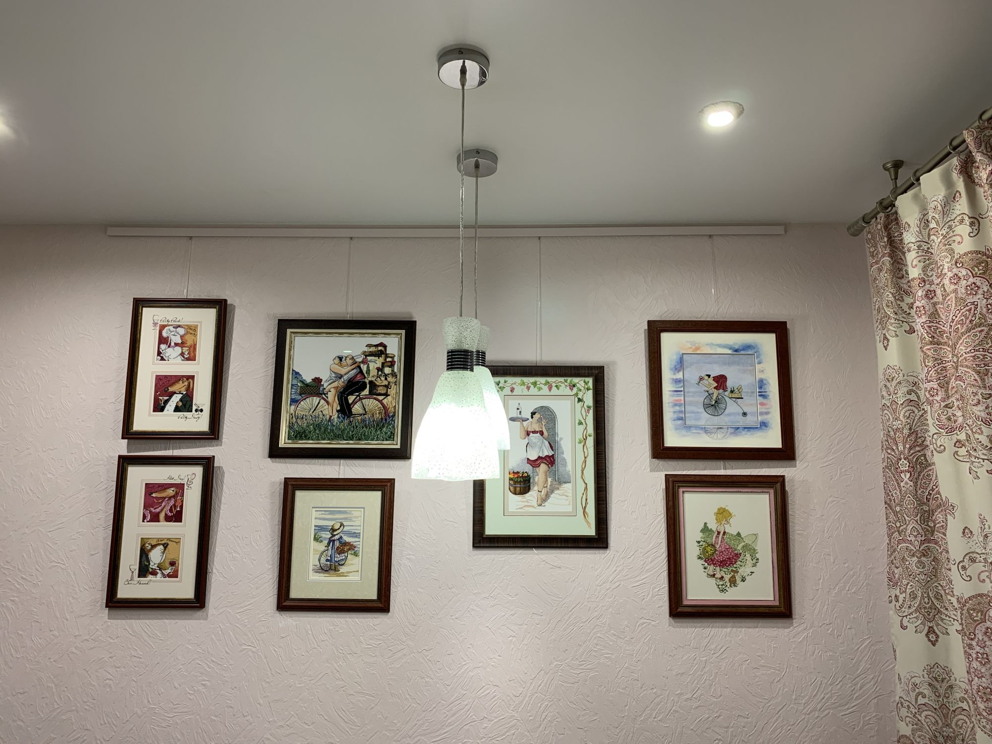 14 ноября 2020 3 минуты назад, makalicha1970 сказал(а): О, какая стеночка! Здорово!!! Лена, а эта подвесная система сколько еще работ выдержит? Ведь Веста у тебя еще прилично!))) В принципе, можно и менять работы, почему бы и нет?! Выдержит много, там крючки, которые вешают на леску, рассчитаны на разный вес картин. АлёNка, СветланаМ и makalicha1970 сказали спасибо Поделиться сообщением Ссылка на сообщение