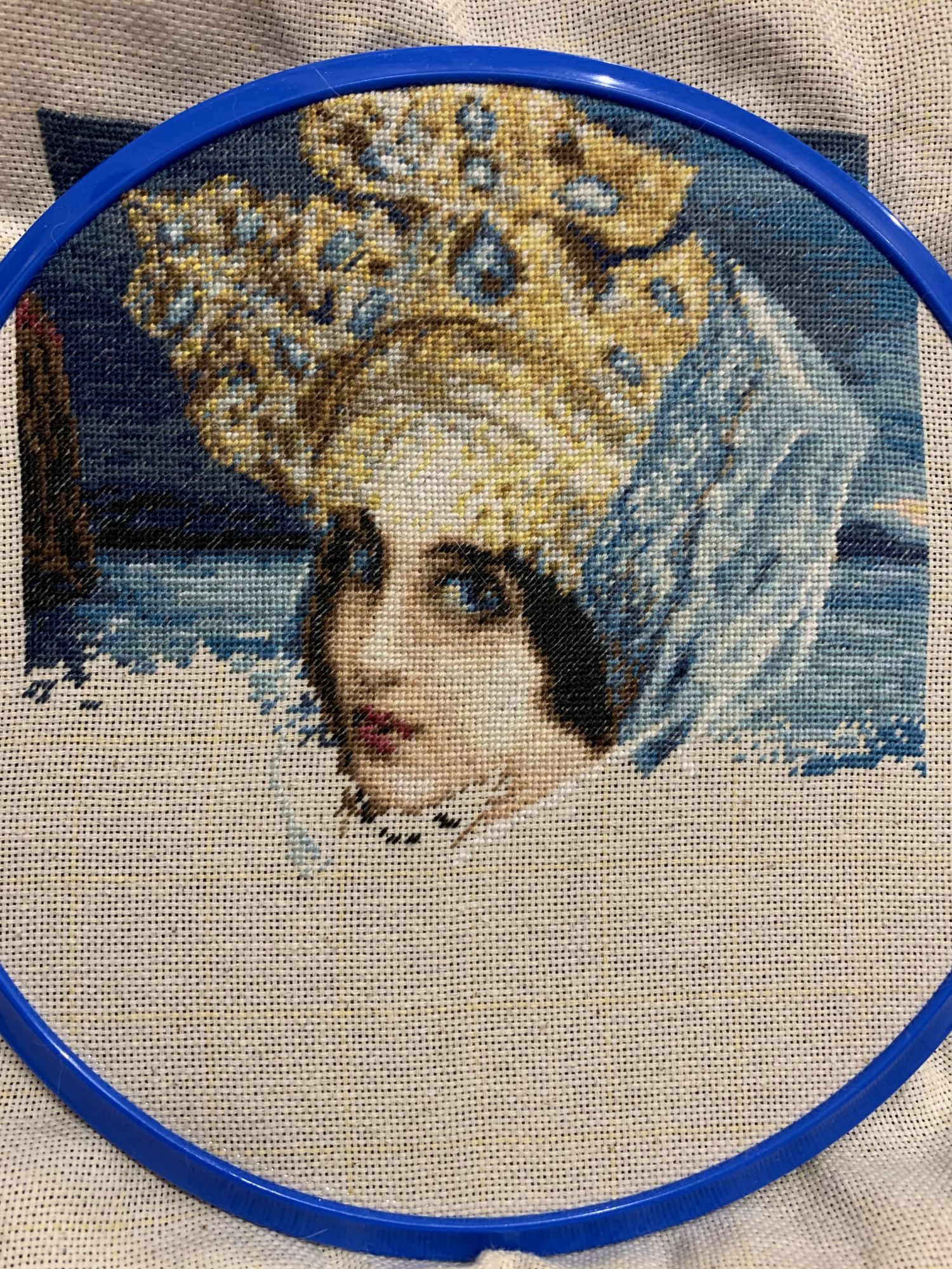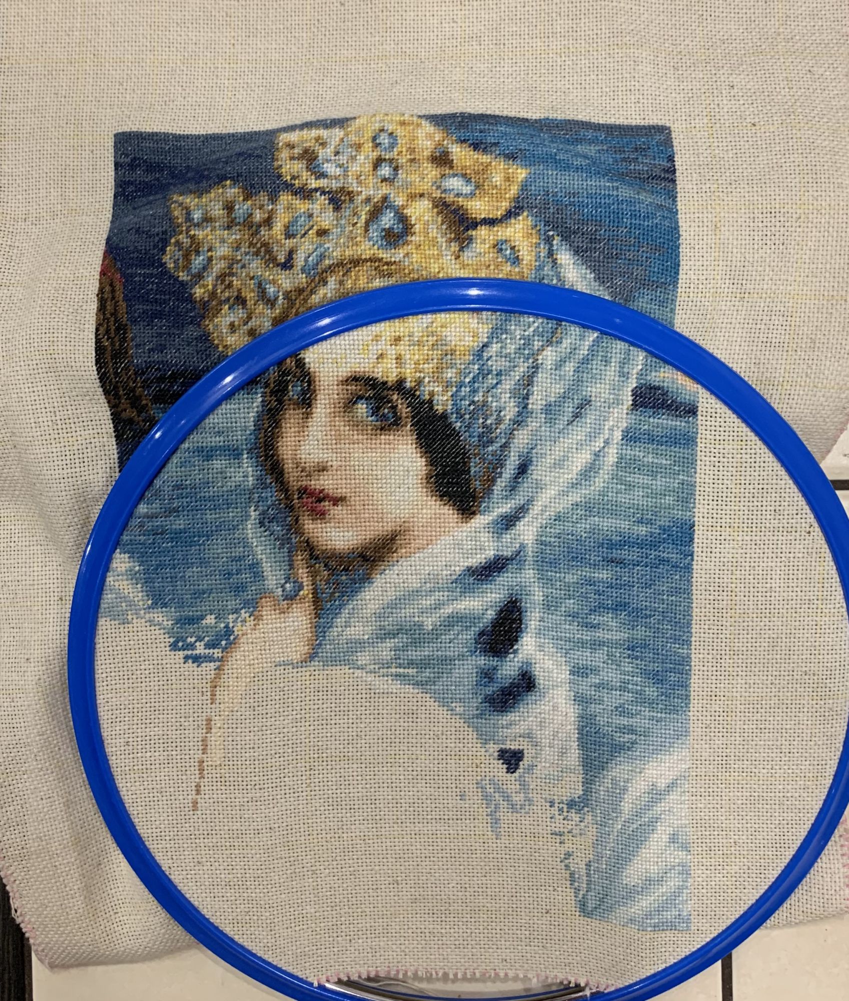 16 февраля 2021 Девочки, привет! Я опять пропала больше , чем на месяц, но времени хватало только читать форум урывками. Тяжелый январь был чисто физически, но надеюсь, что все самое сложное мы с мамой прошли. Пока были праздничные дни, вышивался хард и даже есть небольшая прибавка к тому, что показывала ранее С выходом на работу времени стало так мало, а вышивать так хотелось, спасением стала Волшебная страна с их игрушками Кажется, я стала их поклонницей, накупила себе игрушек всяких разных. А хардангер пока отложила, не надолго... к концу января я поняла, что соскучилась по своей царевне, стала думать, как мне по другому организовать этот процесс, ведь одной из причин его простоя было то, что царевна висела на станке. Вышивать могу только в одном месте, нужно хорошее освещение и самое главное- особенности моего «возрастного» зрения, когда не вижу ни в даль, ни в близи, работать на станке стало очень напряжно для глаз. Выход для меня один- пяльца. А значит и способ вышивки гобелена пришлось менять, ибо парковка по рядам на пяльцах, согласитесь, не вариант. Но знаете, не зря она ждала меня целых девять месяцев! Шью сейчас гобелен по цветам и с помощью Саги, поверьте, это не дань моде, для меня это реальная помощь и спасение. Девочки, но какую же свою ошибку я обнаружила, когда сняла царевну со станка до сих пор не могу понять как так получилось, что я слишком сильно опустила вышивку вниз, у меня до края остаётся буквально 1,5-2 см, не больше. Остаётся надеятся только на мастерство Иры Михно, я с ней потом спишусь, может надо будет ткань надставить.. ну и моя красавица с бездонными глазами ... было и стало такой объём смогла вышить за три недели, осталось совсем немного. А тут виден мой косяк во всей своей «красе»! И все равно, получаю удовольствие от этой работы, отставлю пяльца в сторону и смотрю в ее глаза...поразительная проработка дизайна! Обязательно потом возьмусь за Стоянкину фею! Еще я отдала на оформление свои бисерные розы, долго думала, но решила, что хочу их видеть в шкатулке, наверно уже скоро она и готова будет. Да, и я тоже сделала прививку, пока только первый компонент, полтора дня я «была больна», полилось из носа, стала чихать, температура поднималась волнами, но небольшая совсем. Конечно, я волновалась, как это будет, но настроена была решительно, ибо не имею права принести заразу в дом, у нас больше половины врачей и м/с уже переболели. Вот на этом и все мои новости наверно заканчиваются. Но писать теперь постараюсь чаще! Путешественница, alena.corobova2012, lenning и 35 других сказали спасибо Поделиться сообщением Ссылка на сообщение