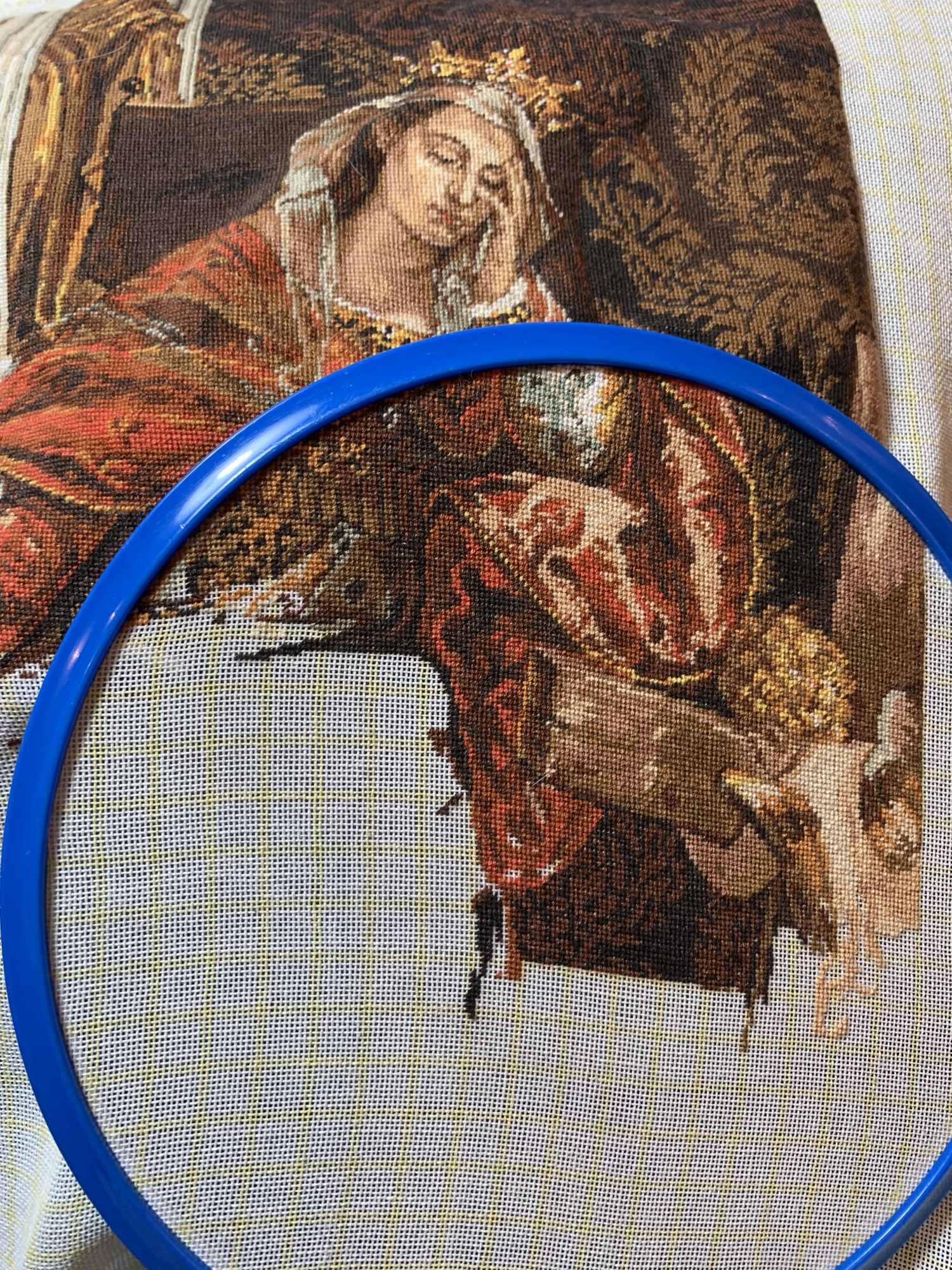 12 декабря 2021 А я снова с маленьким отчётом! Вышила два новогодних сюжета и вернулась к гобелену, прям не оторваться от него, хотя я ещё один зимний Овен собиралась начать , но гобелен так легко идёт… Гобленсет «Святая Елена» было и стало осталось чуть меньше 30 % процентов вышить. А дальше придётся поворчать. Про Волшебную страну , как ни странно. Которую я очень люблю и наборов ее набрала хорошее такое количество. Вот и новинки, в смешанной технике: счетный крест и бисер, не обошла вниманием, сюжеты очень понравились! Начала с Щелкунчика (FLW-004) вот комплектация супер, даже органайзер для ниток пластиковый, мне понравилось!(это фото не для гаечки) А вот большой и жирный минус: перфорация для бисерного набора и ниточного абсолютно одинаковая, и там , где спокойно проходит бисерная игла с тонкой нитью, просунуть обычную, с нитью мулине ( а в каждой дырке их четыре нити то получается) очень сложно. В итоге сломано шесть игл, четыре обычные и две бисерные ( в них я уже тоже мулине заправлять стала). Ломались иглы на стадии протаскивания иглы через перфорацию, сначала ушко сминалось, а через некоторое время ломалось. Я даже сравнила перфорацию этого набора с Ангелом Колесниковой, в последнем дырочки больше. Результат мне очень нравится! Ну и тут же пошла лечить нервы бисерным набором от неё же, тоже новинка, под кодовым названием « Вы поедете на бал?» Волшебная страна FLK-384 из отсебятины: добавила блестящую ленту в окошке, изначально там оранжевый фетр задника виден, мне блеска не хватило! Дальше фото не в гаечку, просто для настроения! и мои новые куклы, рождественская лимитированная версия от Руби ред смуглянке я поменяла паричок, мне так больше нравится! Gala83, Lucia-del-Umago, Pearl20 и 30 других сказали спасибо Поделиться сообщением Ссылка на сообщение