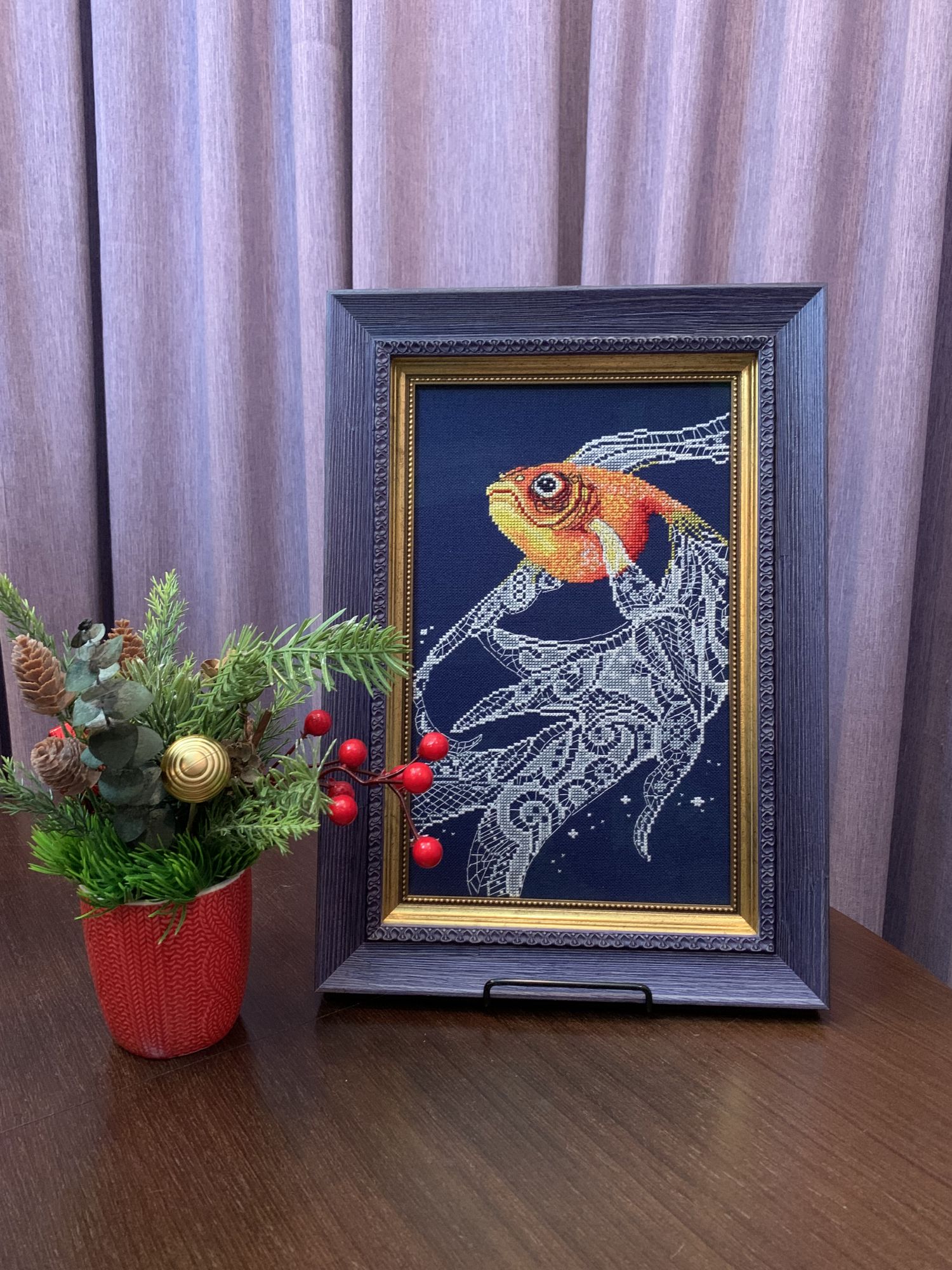 6 января 2024 Привет всем заглянувшим! И поздравляю с уже наступившим Новым годом и наступающим Рождеством! Пусть ваши близкие будут рядом, а желания и мечты исполняются! Конец года я отметила процессом, захватившим меня целиком! Давно я не вышивала по дизайнерским схемам, хотя имя приметила давно, а тут срослось все: и сюжет и возможность проявить себя и ожидание праздника! И это Голубая ель от vetlanka . Пересмотрев большое количество работ я решила свою елочку вышить на темной канве, мой выбор пал на лён цвета «морской» ( хотя держу в голове мысль вышить еще одну на светлой) елочка далась мне не сразу, дойдя до вышивки бисером, я поняла, что неправильно рассчитала и если оставить все как есть, то на натяжку канвы не останется. При том , что кусок льна большой Распорола и вышила по новой! А настоящим подарком к празднику стало готовое оформление! Прям очень нравится! ( дальше все фото не для гаечки!) Новый год начала очередным процессом от Совиного леса, но решила гаечку не оформлять, только фото готовых Зимних птичек так с обратной стороны и все вместе Вместе с елочкой, я получила оформленные розы от РТО и золотую рыбку И , поймав настроение, не только вышивала Дети порадовали подарком , а такими я радовала себя сама Вот такие мои конец и начало года! Как обычно хочется много чего начать, но пока продолжу единорога. nata2017, linden, ОлюшКа и 25 других сказали спасибо Поделиться сообщением Ссылка на сообщение