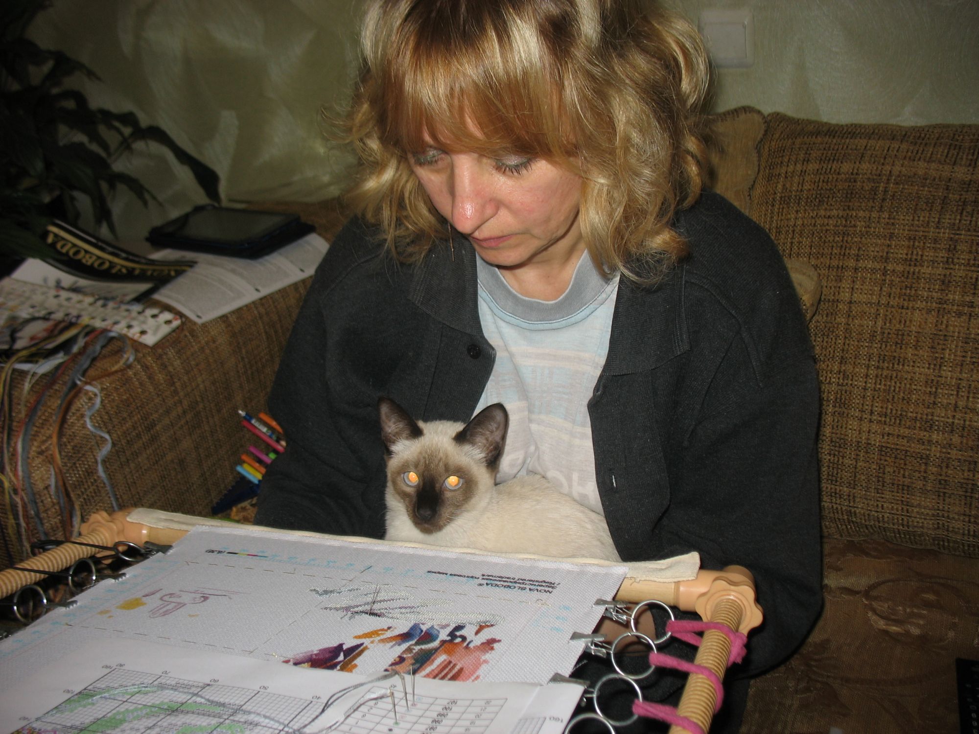27 сентября 2016 Только что, tashu02 сказал: Танюша, уже показывай, что там у тебя сложилось. Хоть чуть-чуть. Хочется твою кокетку увидеть наконец!!!! Да ничего еще не сложилось. У меня выходные вечно потеряны для вышивки. Столько дел сваливается. А начнешь вспоминать, что делала - и вспомнить нечего Бытовуха. Уроки, уборка, готовка, бесконечная мойка посуды. В эти выходные ездили на День открытых дверей на БелАЗ. Строили с мужем когтеточку для Катерины. Есздила к подруге, смотреть ремонт. Станочек сиротливо стоял в уголке. Только вчера вытащила. Шел КВН. Встреча выпускников в Сочи. Томск "Максимум", "Утомленные солнцем", РУДН, абхазы. Но я больше смотрела и ржала, чем вышивала. Кисуля, tashu02, Mizeri и 8 других сказали спасибо Поделиться сообщением Ссылка на сообщение